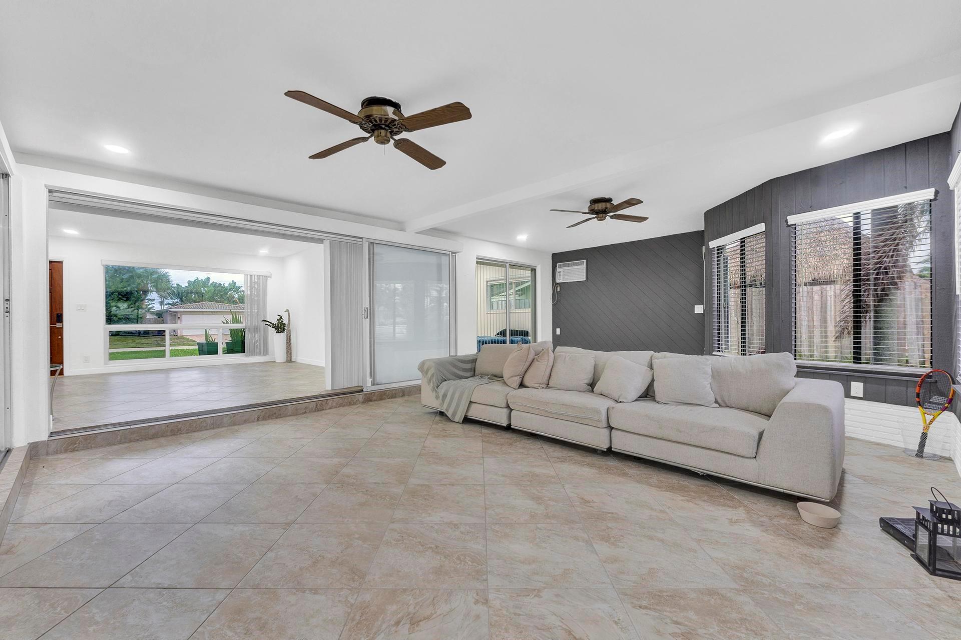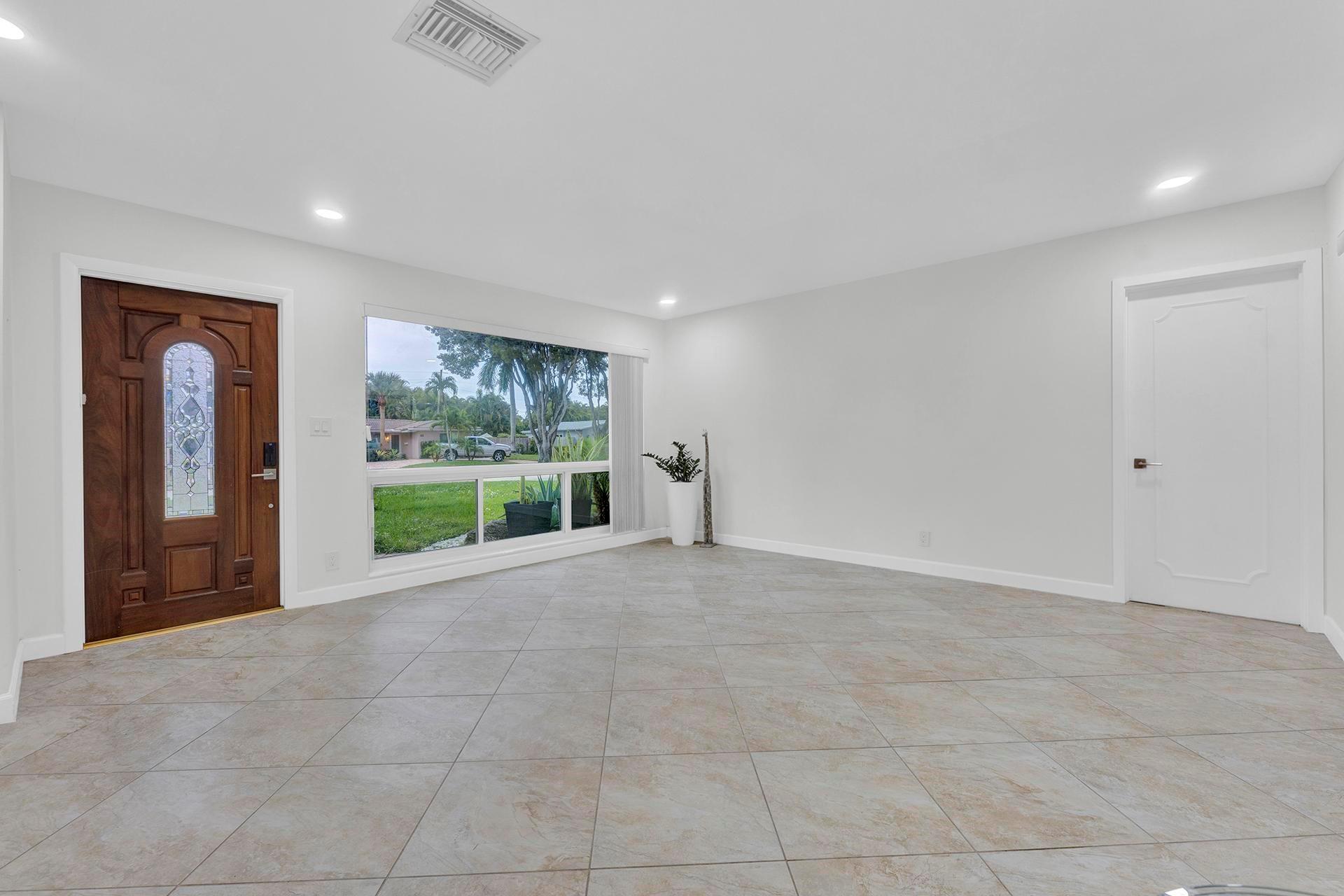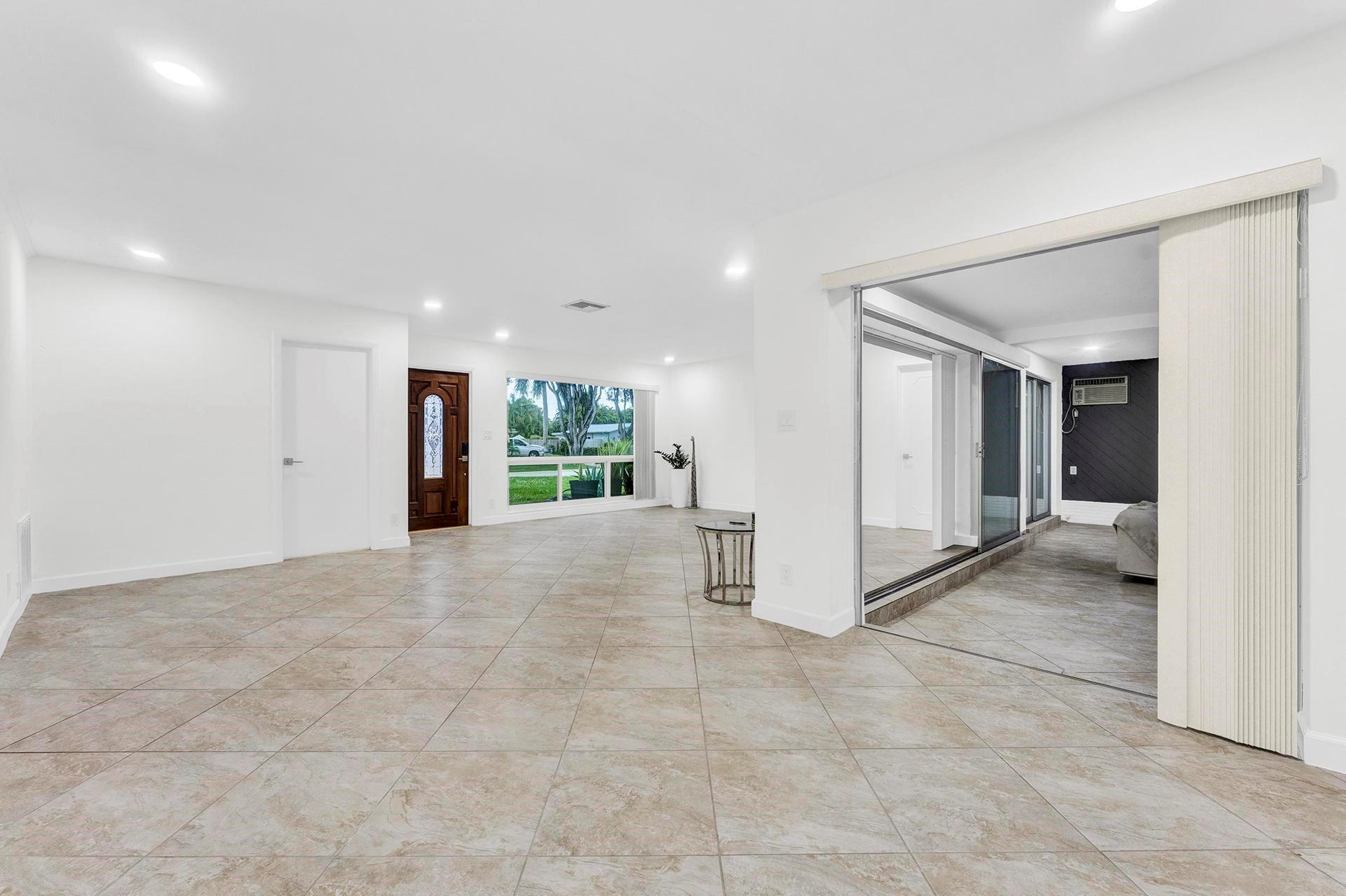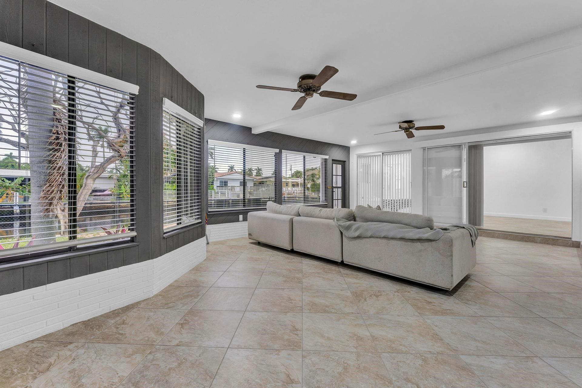 Come see this large 3-bed 3-bath home in Coral Ridge Isles. Each bedroom has its own attached bathroom for split 3 Master Bedrooms. Featuring New Impact Windows in the front half of the home and Accordion Shutters for remaining windows for your hurricane protection. All 3 bathrooms have been nicely updated. Two bathrooms feature new white cabinet vanities with new quartz countertops, new marble look tile, new lighted mirrors. A converted 2 car garage is your 3rd master bedroom/bathroom. Large Florida room for extra living space. Separate laundry room. Natural Gas. Two of the bedrooms have terrazzo floors in great condition and tile in rest of the house. This home is just waiting for you to add your finishing touches and updates.
