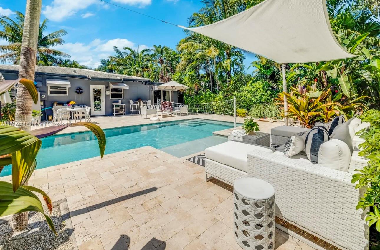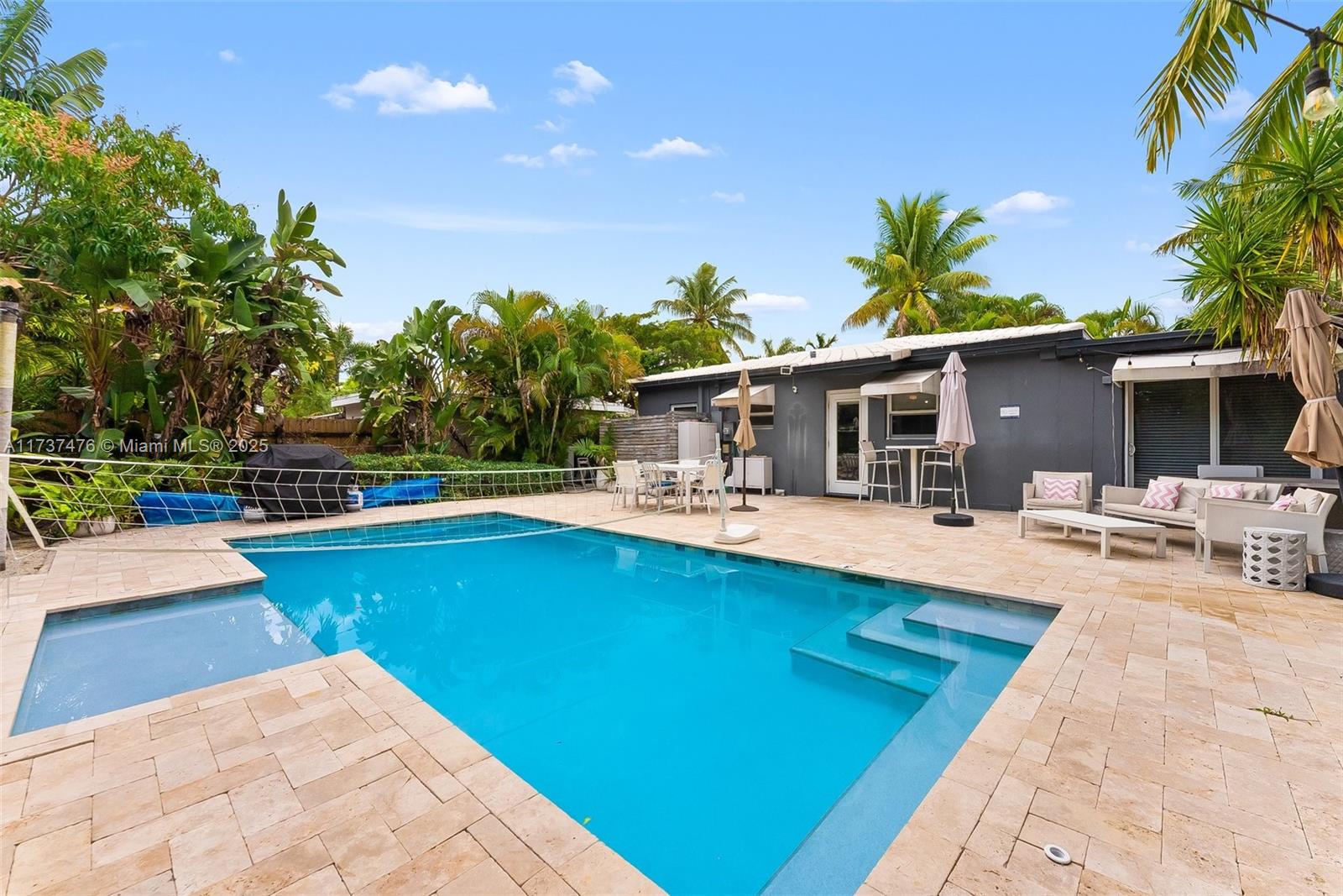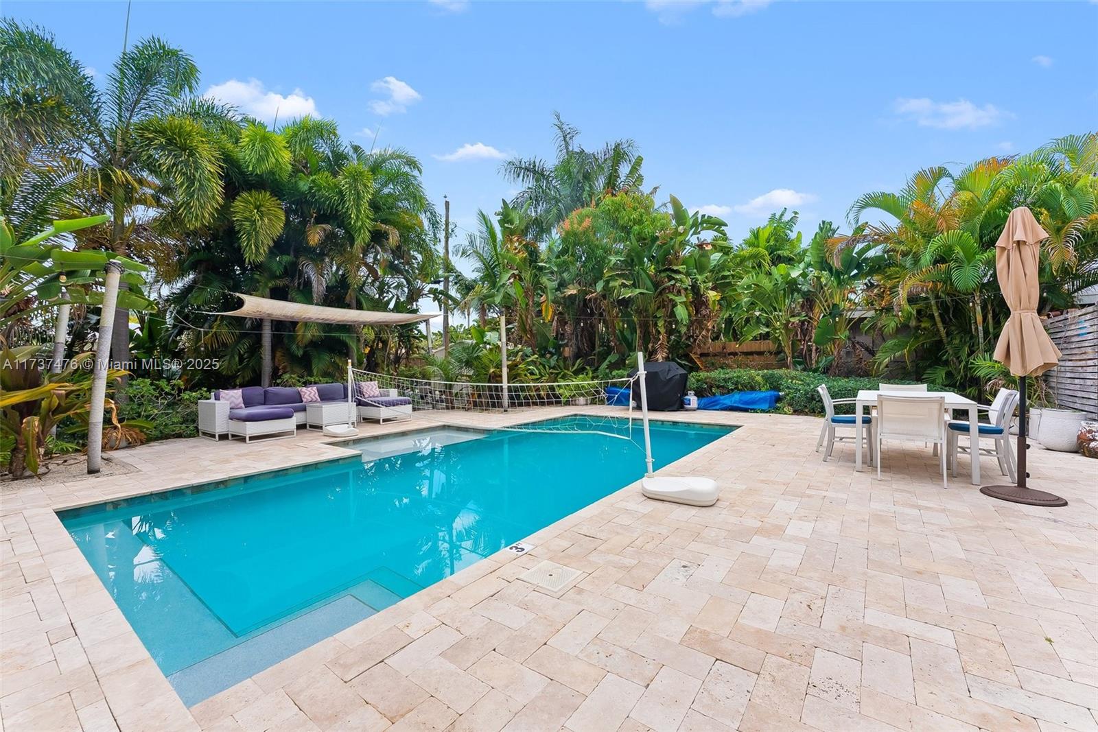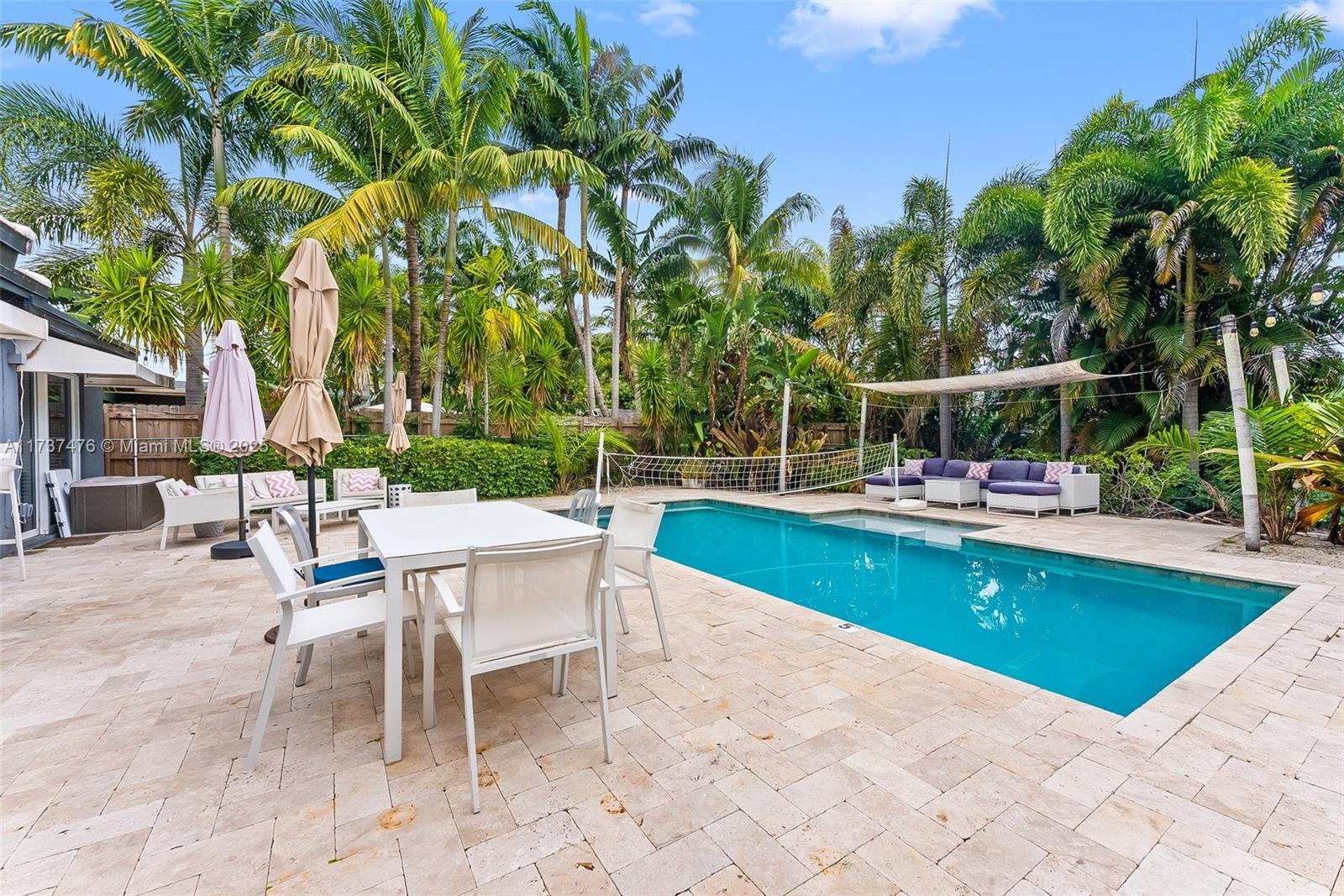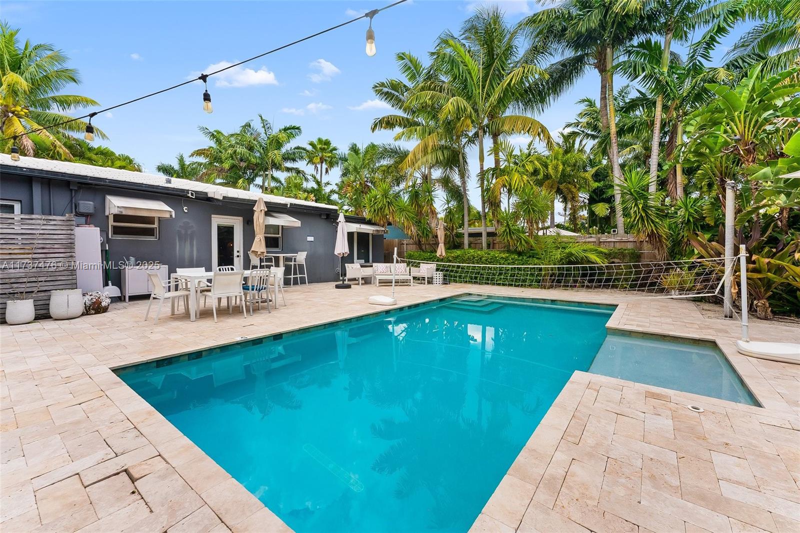 Stunning and meticulously maintained 4-bedroom, 2-bathroom pool home in the highly sought-after Poinsettia Heights. Perfectly situated near the beach, downtown, Las Olas, and adjacent to Wilton Manors. This home truly has it all! Featuring an updated open kitchen, modernized bathrooms, a mix of tile and wood flooring, hurricane impact windows, and a tankless water heater. Enjoy the convenience of a covered carport and the crown jewel—a breathtaking resort-style backyard with a heated saltwater pool, ideal for entertaining or simply relaxing in the beautiful Florida weather. Nestled on a charming tree-lined street, this home offers the perfect blend of comfort and style. Additional highlights include a 2017 roof. This is a must-see!