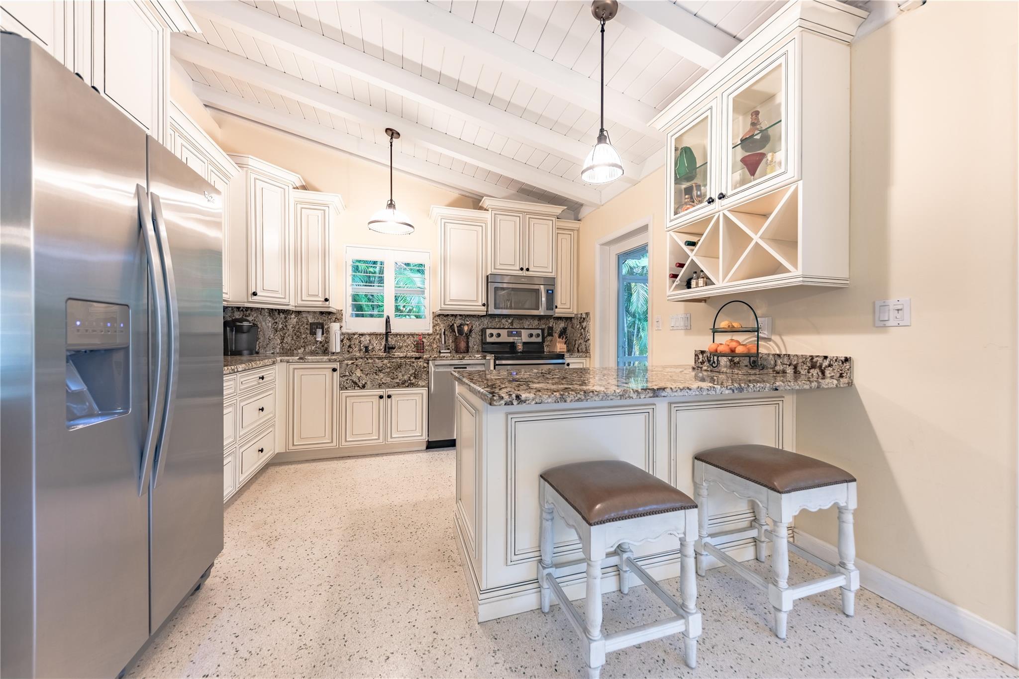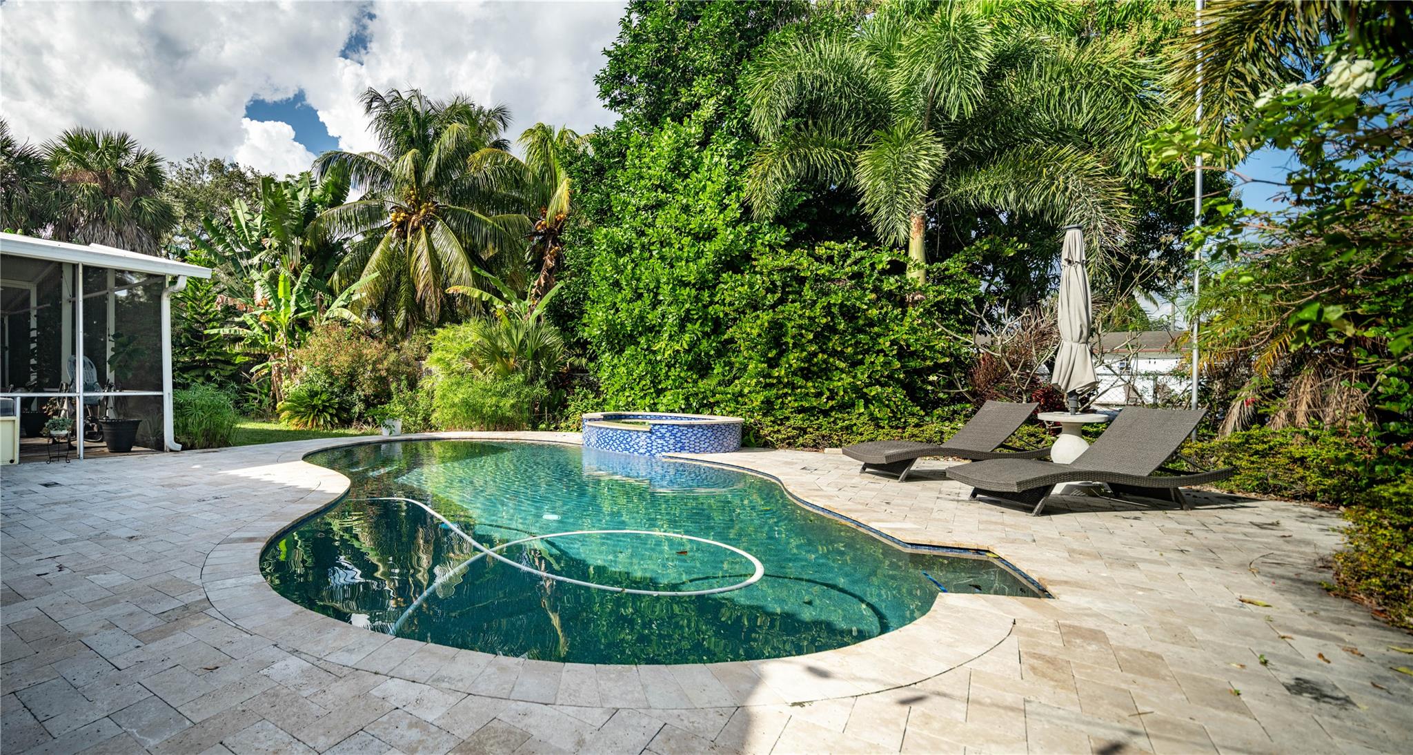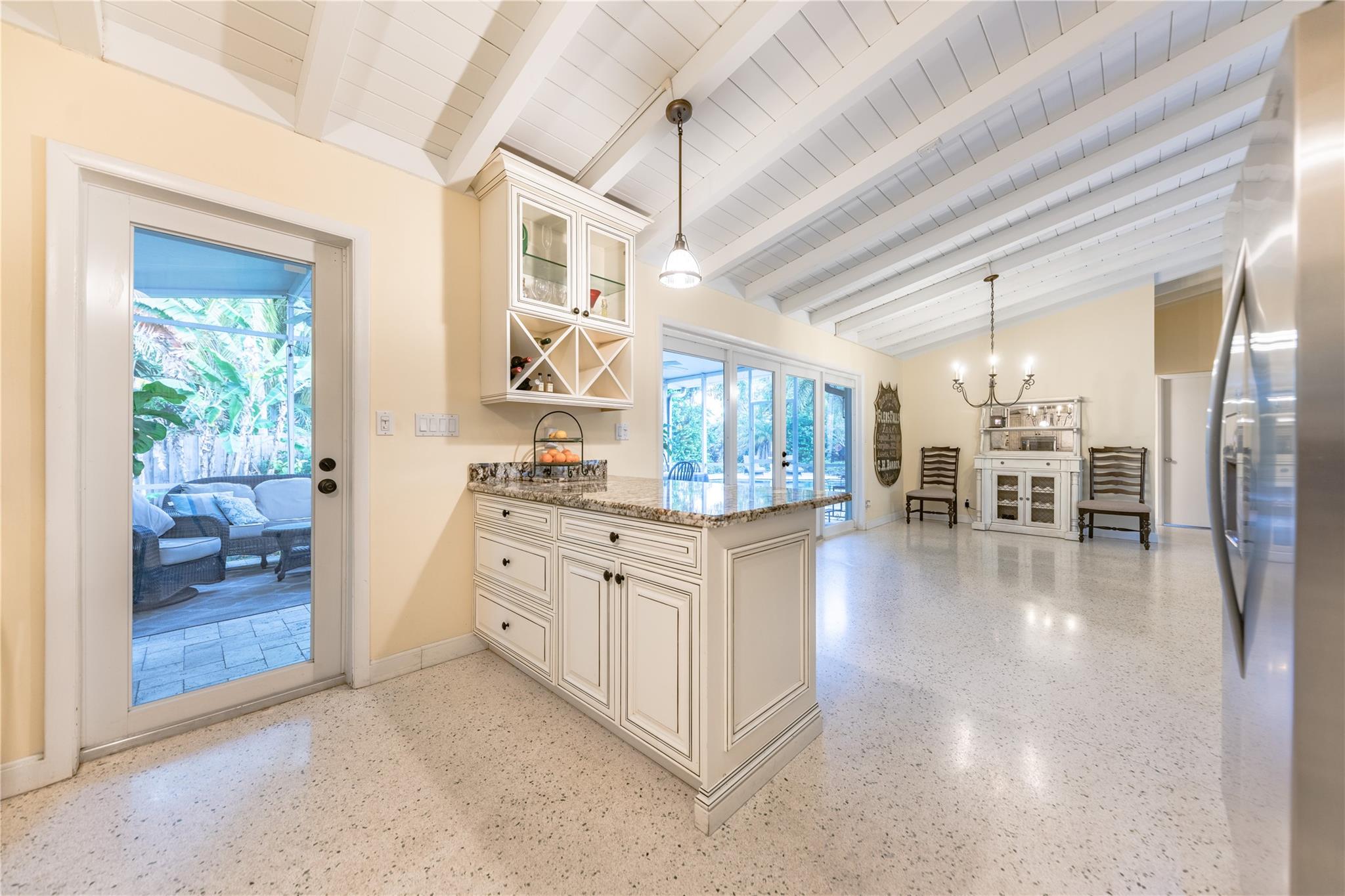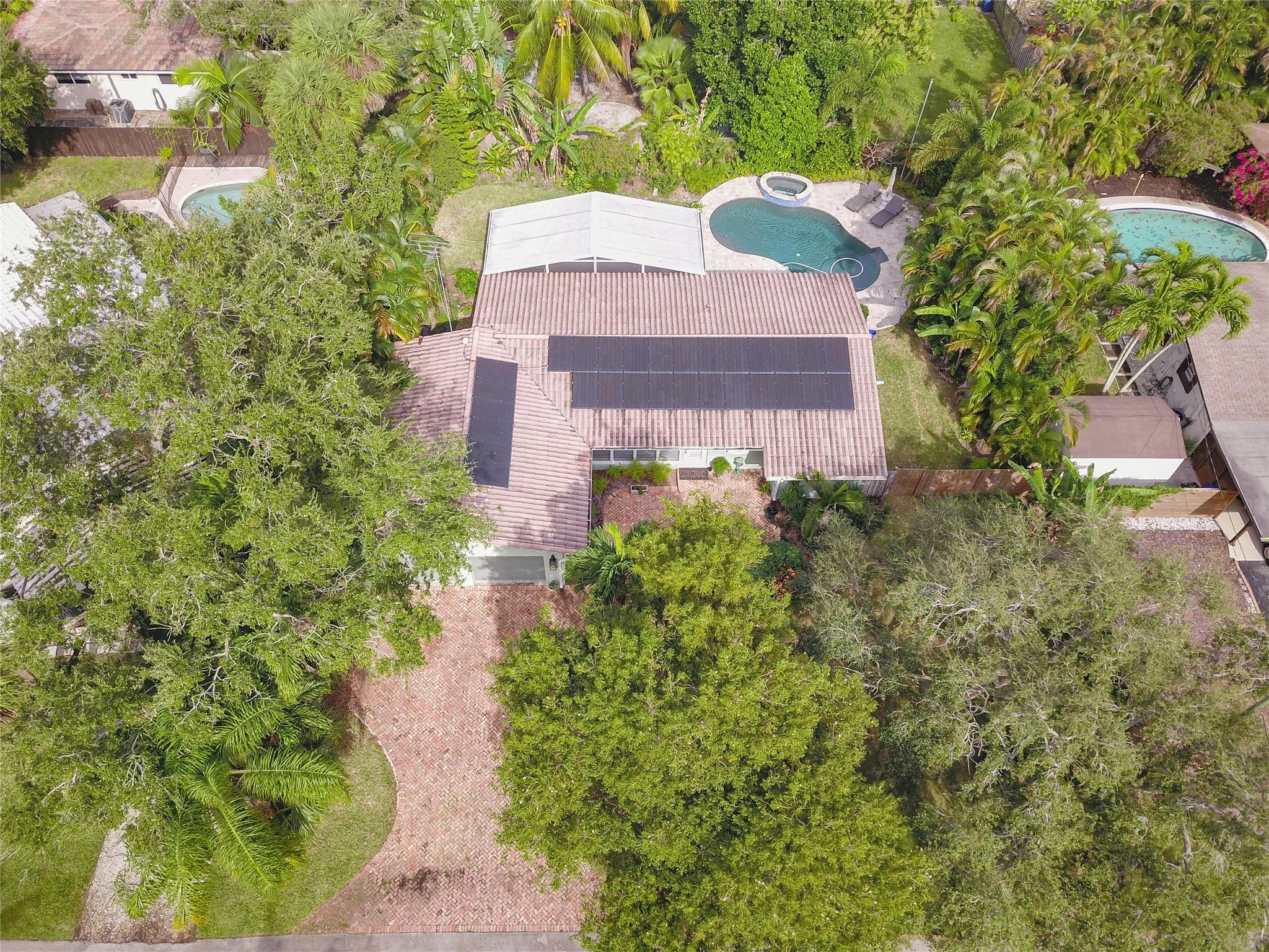 Looking for a 3 bed/2 bath single-family home, conveniently located on a cul-de-sac in a quiet neighborhood? This is the home for you. Open floor plan with an updated kitchen, granite countertops & stainless-steel appliances. Terrazzo floors. Low electric costs with fully paid solar system, impact windows/doors, and a new tankless hot water heater. Expansive newly screened back patio creating a perfect extension of your living space. Heated saltwater pool with hot tub in a beautifully secluded backyard. Two large bedrooms, to include the ensuite primary. Third bedroom can easily be utilized as an office, tv room, or for your guests. The two-car attached garage has a separate large laundry room. No HOA. Conveniently located near Las Olas, transportation, entertainment and the FLL beach.