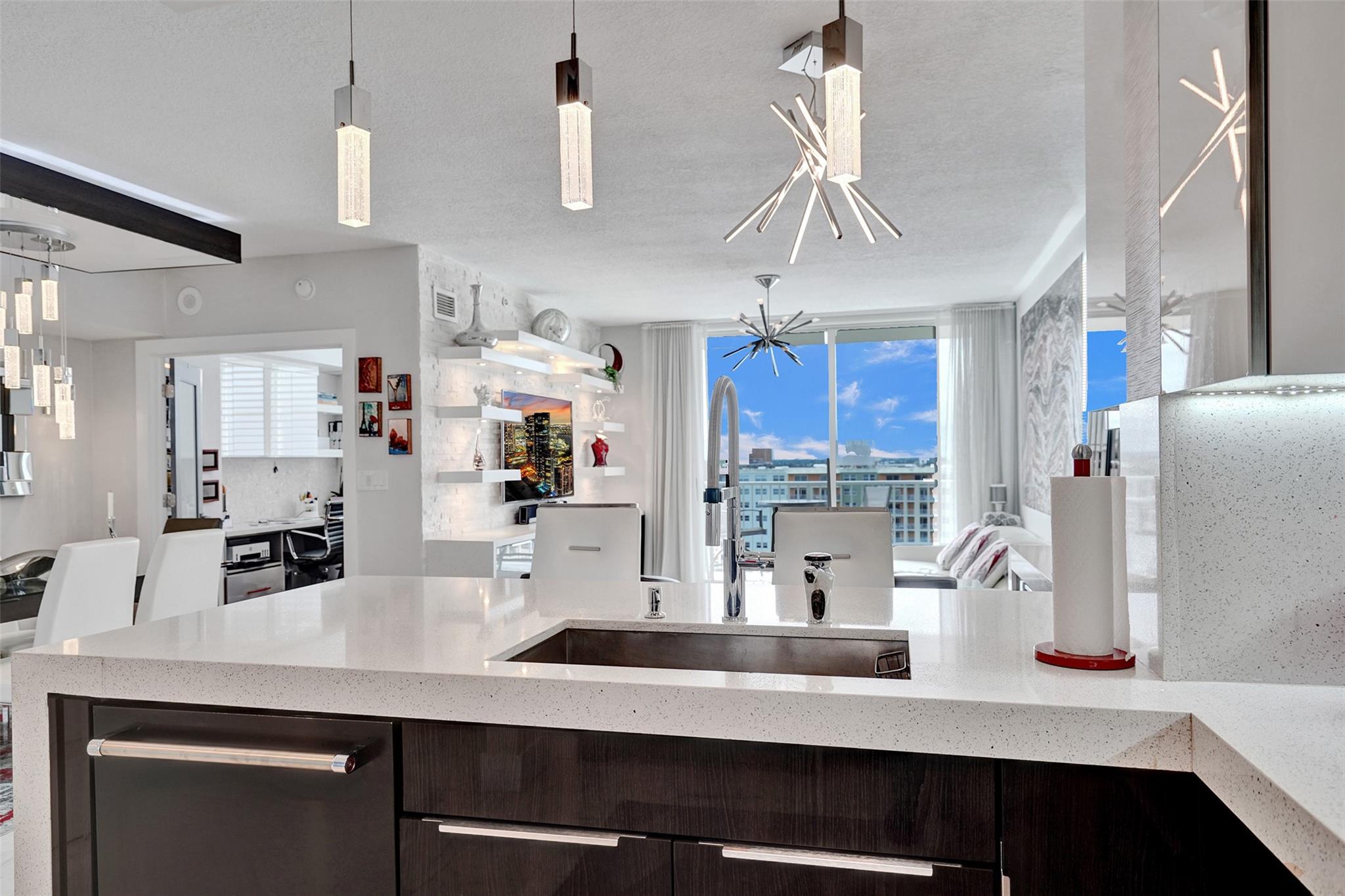 A Glamorous and Pristine Masterpiece describes this renovation at the Tides at Bridgeside Square - 1,600 Sq. Ft. of Perfection + two balconies with incredible views. A blend of luxury and sophistication with this stunning two-bedroom plus den residence. Totally reimagined with a renovation that leaves no detail overlooked. Extensive use of lighting, and the finest finishes have created something rarely available. An Open-concept design with expansive living, dining, and kitchen spaces ideal for entertaining. Gourmet kitchen featuring custom cabinetry, quartz countertops, & high-end black steel appliances. Spa-like master suite, three walk-in closets, and a luxurious bath. State-of-the-art gym, pool with hot tub, and a pet friendly building. Separate air-conditioned storage included