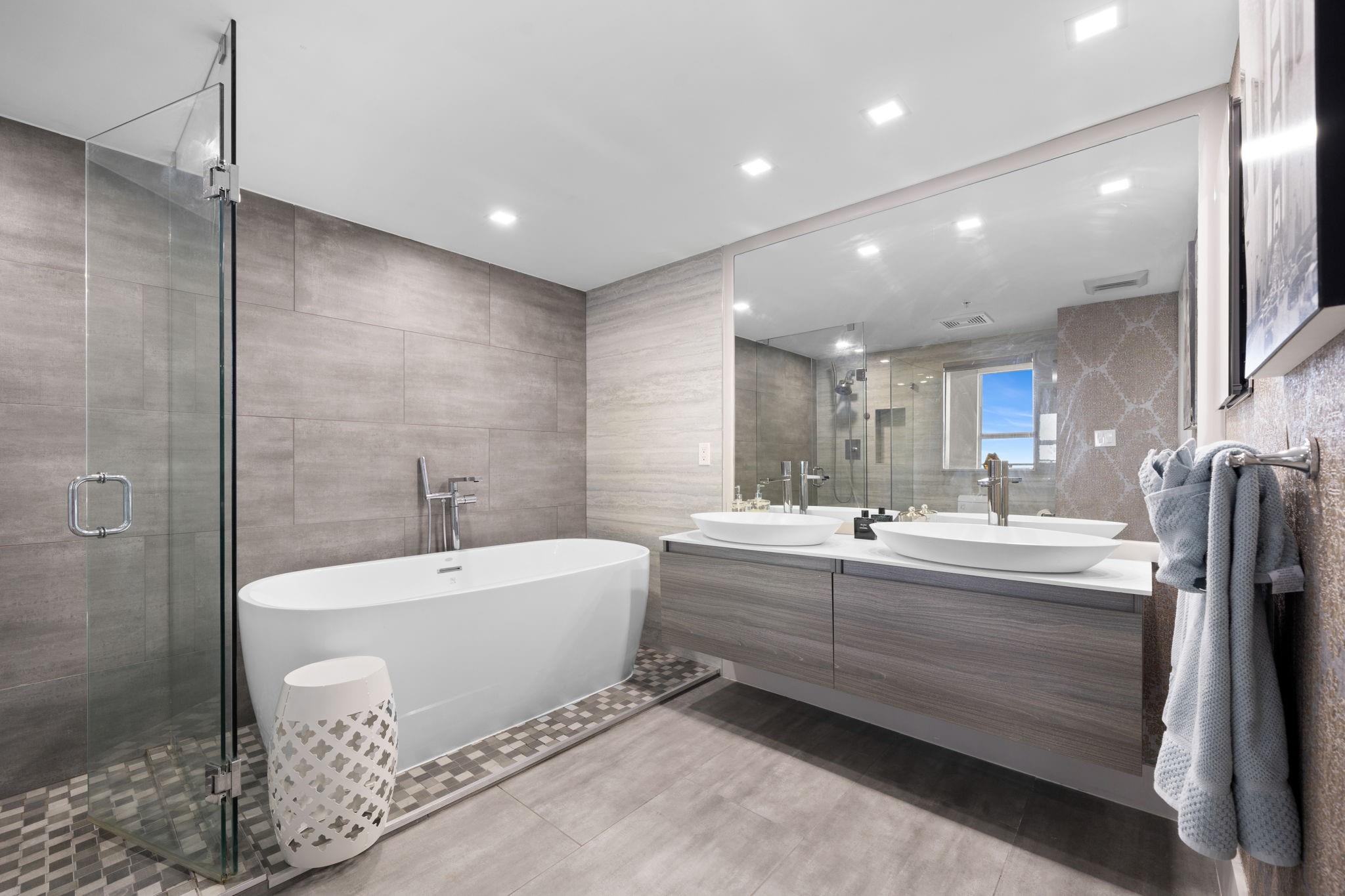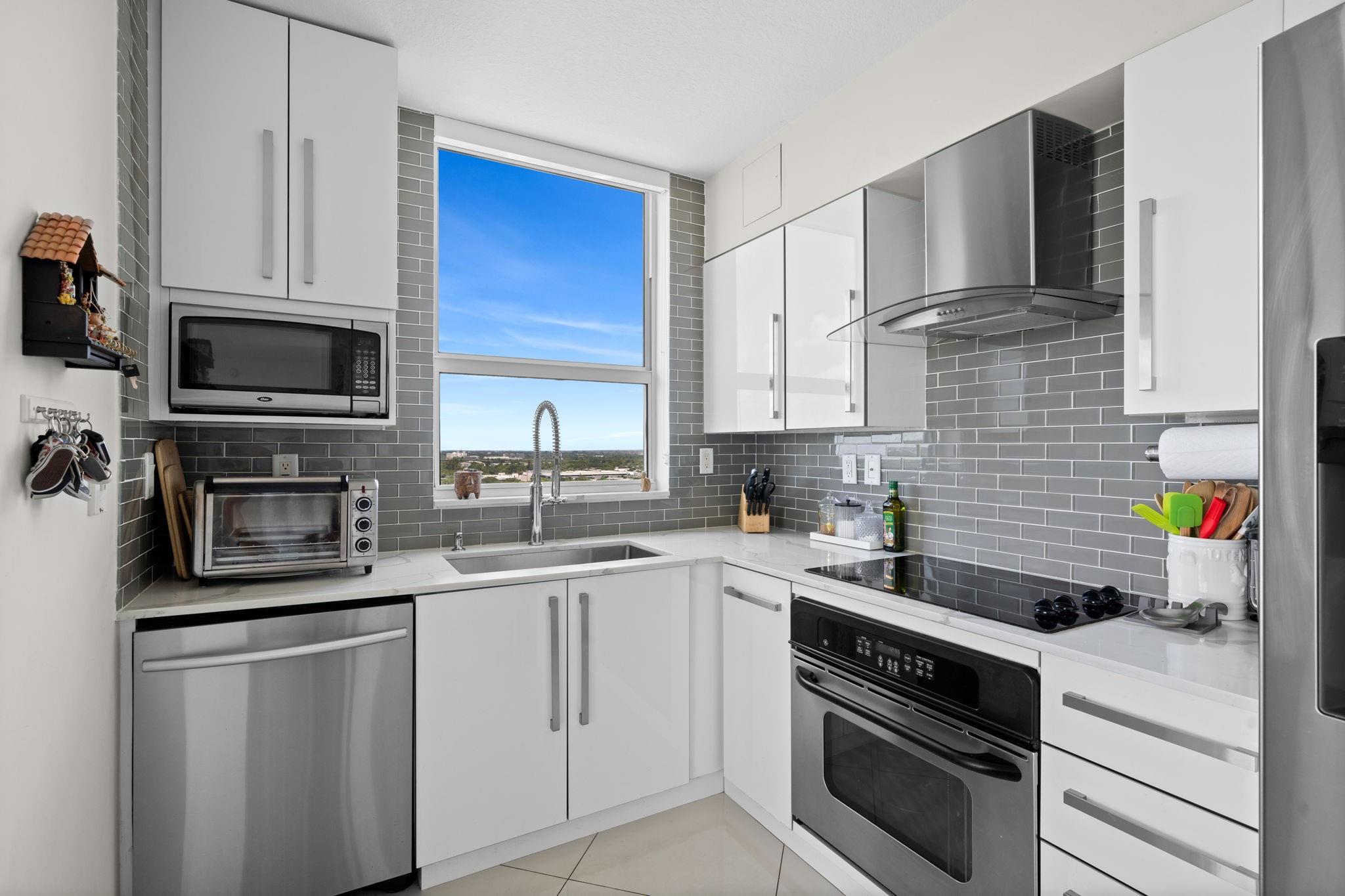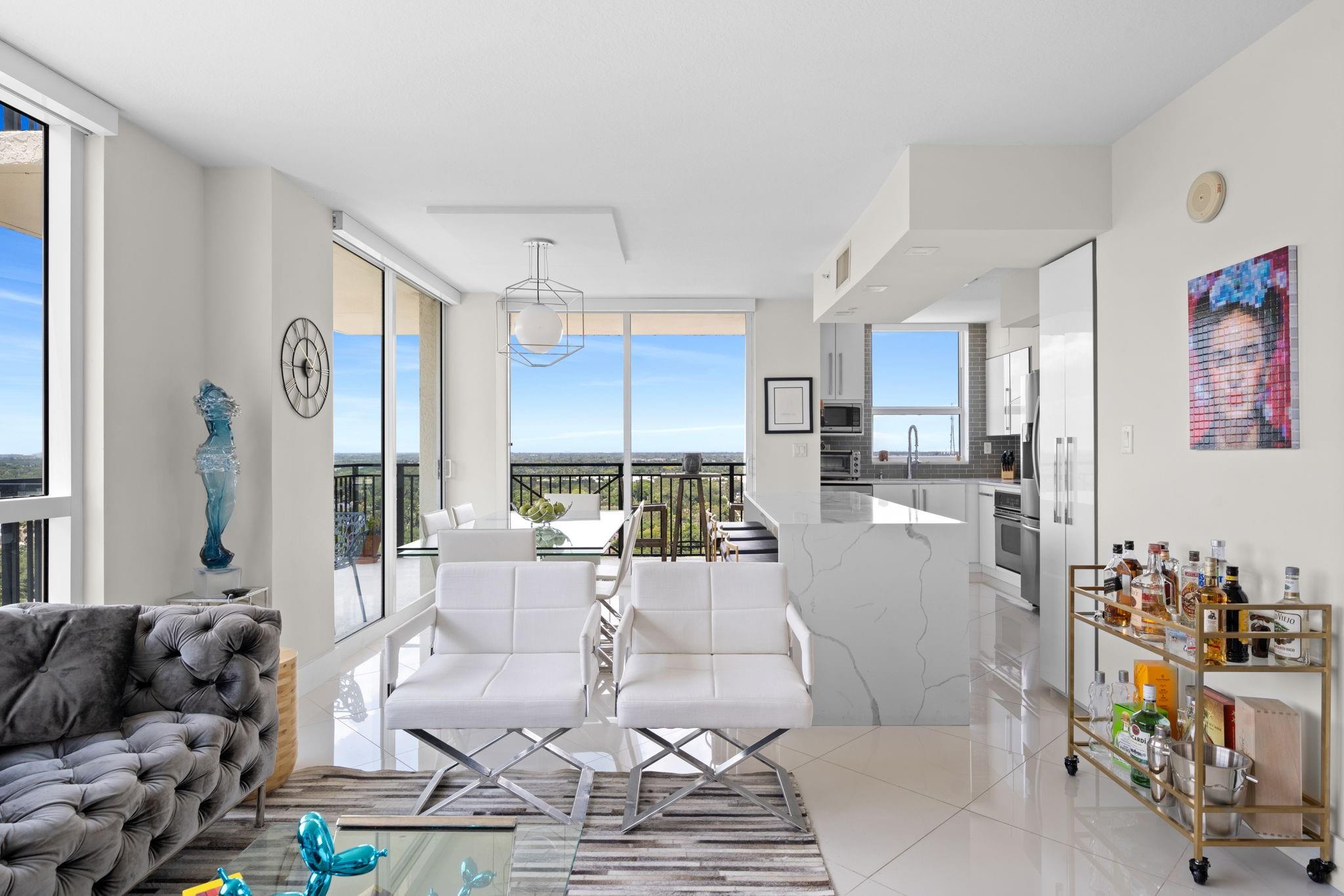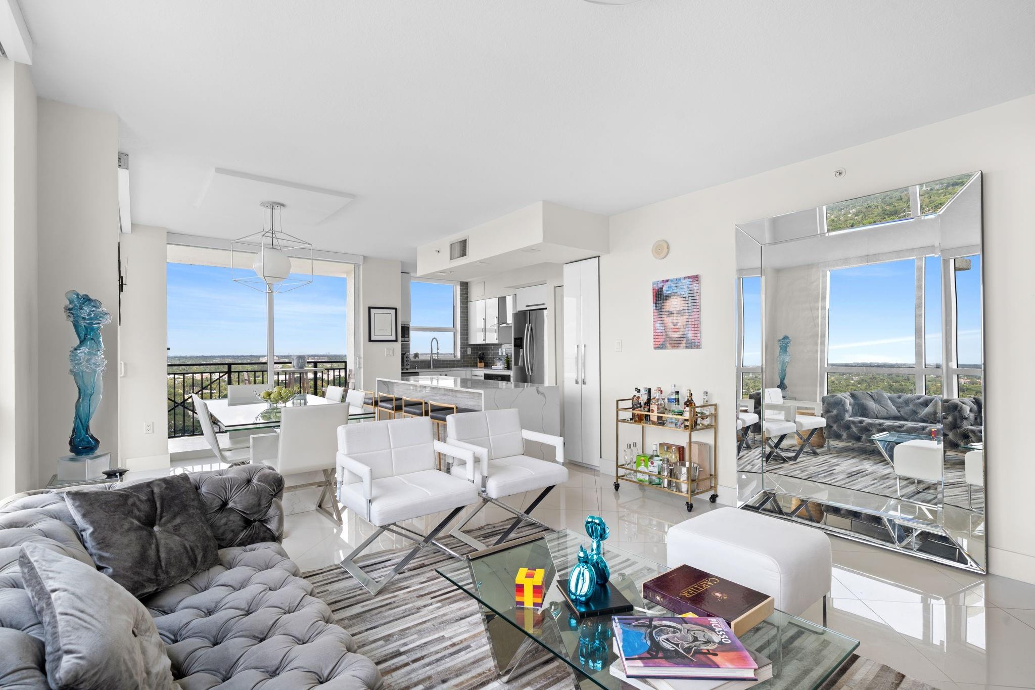 MODERN REDESIGN! CORNER UNIT W/ WRAP AROUND TERRACE OVERLOOKING THE RIVER, POOL & CITY! AMAZING VIEWS & CUSTOM INTERIORS! BEAUTIFUL PORCELAIN TILES THROUGHOUT, MOTORIZED WINDOW TREATMENTS, CUSTOM KITCHEN W/ GLOSSY WHITE CABINTRY, FULL BACKSPLASH, QUARTZ COUNTERTOPS, CENTER ISLAND W/ WATERFALL EDGE, DRAWERS FOR STORAGE & PULL OUTS, CUSTOM PANTRY & BREAKFAST BAR! THIS OPEN FLOOR PLAN IS PERFECT FOR ENTERTAINING, W/ IT'S LARGE LIVING SPACE LEADING TO THE WRAP AROUND TERRACE OVERLOOKING THE RIVER, POOL & CITY! THE PRIMARY SUITE FEATURES A CUSTOM ENTRY DOOR, COMPLETELY REDESIGNED BATH WITH FREE STANDING TUB, GLASS ENCLOSED SHOWER, DUAL VANITIES AND CUSTOM WINDOW. THE GUEST SUITE IS COMPLETELY PRIVATE AND CUSTOMIZED WITH A BUILT IN MURPHY BED & UPGRADED BATH. THE POWDER ROOM WAS ALSO RENOVATED!