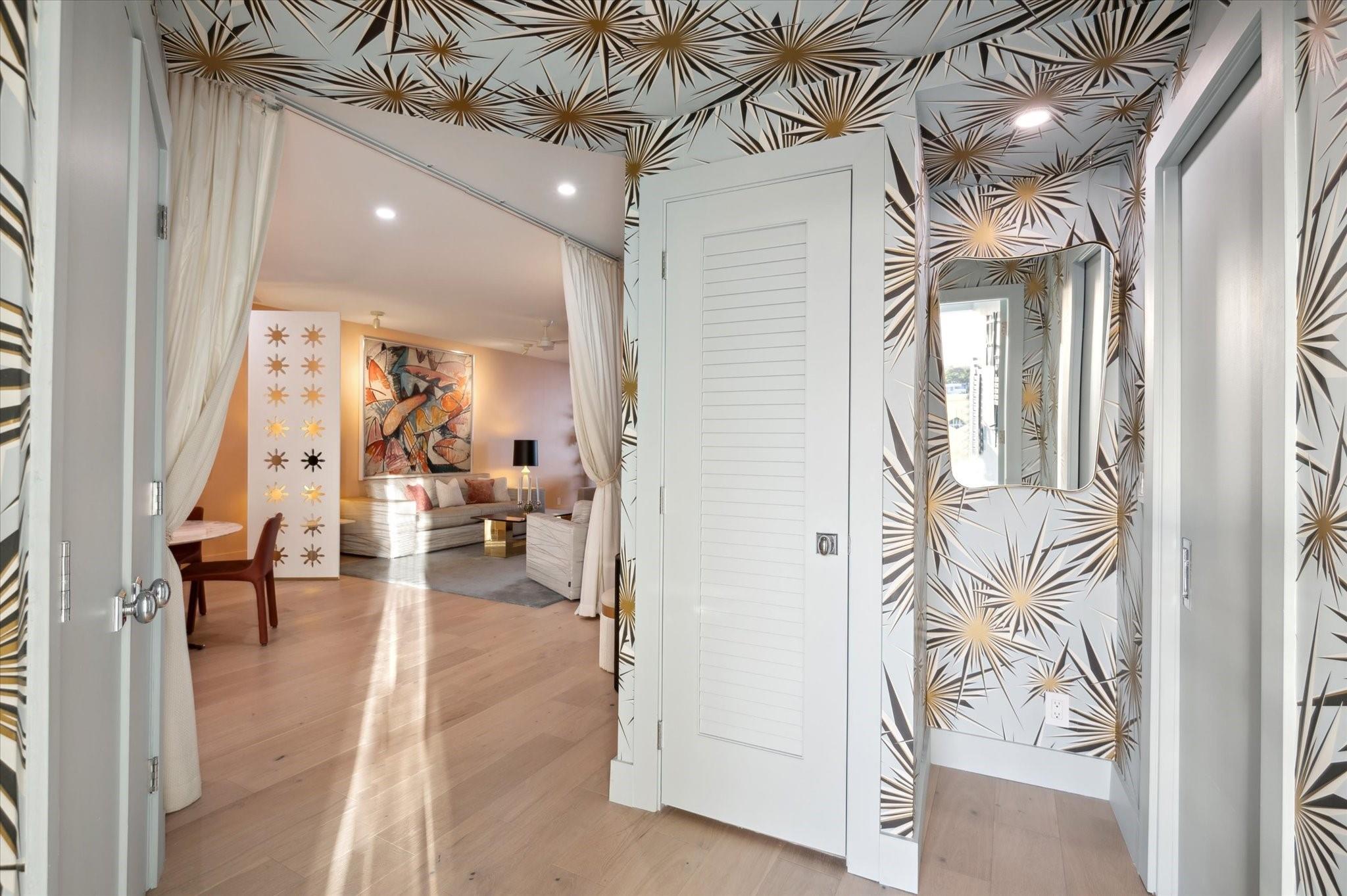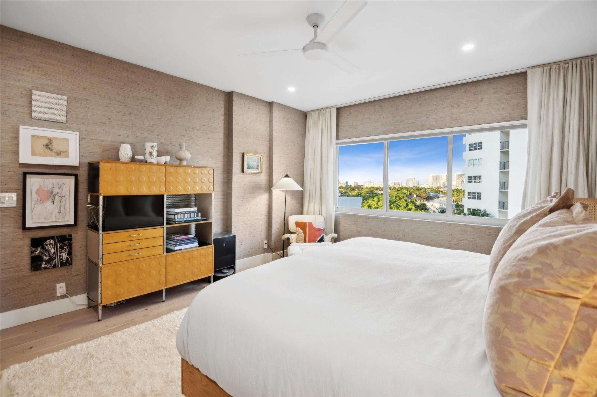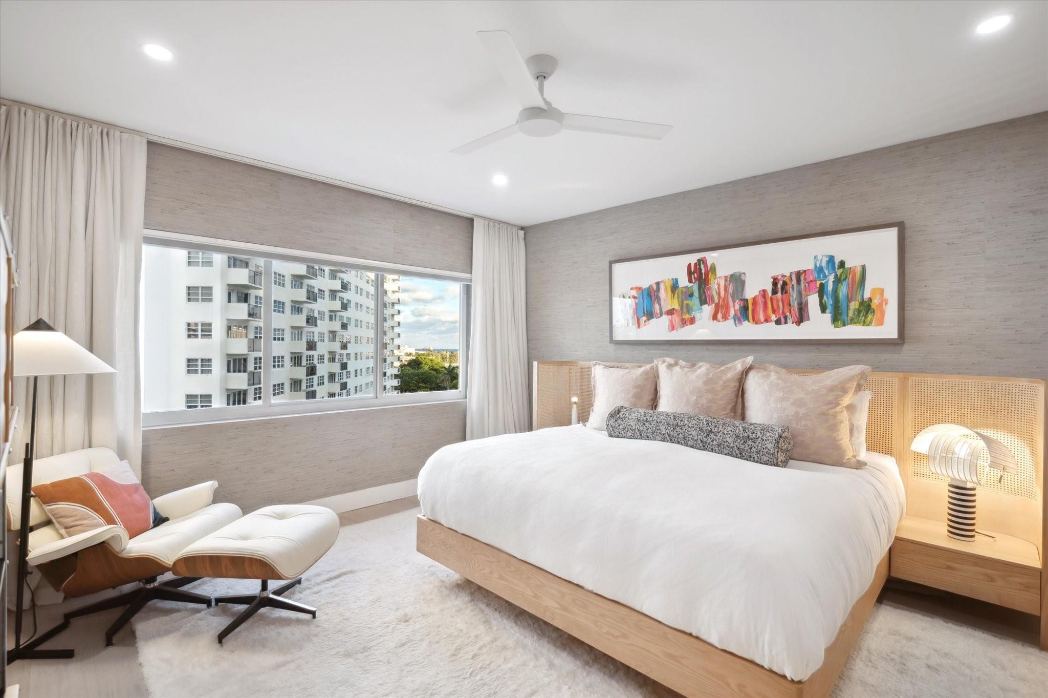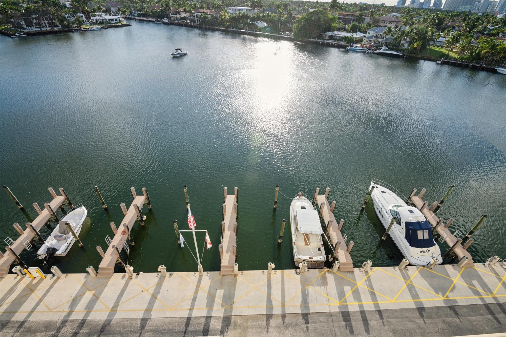 Fabulous! Over $250K spent in renovations with Dockage available and No Fixed Bridges. Reconfigured to include 2 office areas, a private primary with a large walk-in closet, a stunning, spacious bath with custom cabinets, oversized shower & water closet. Views galore from a raised lounge area that includes workspace & allowing for a private 2nd bedroom area. Beautiful light oak floors throughout, custom high-end wallpaper, LED lighting & Grohe Faucets. Both baths have new terrazzo flooring, automatic bidet toilets & handmade finishes including a subtle Japanese tile in the 2nd to go with a show stopper pink marble. The kitchen has custom oak cabinets, French Marble and views of Sunset Lake. An XL-patio offers ocean & Intracoastal views. Large dog-friendly, 24-hr concierge, best location!