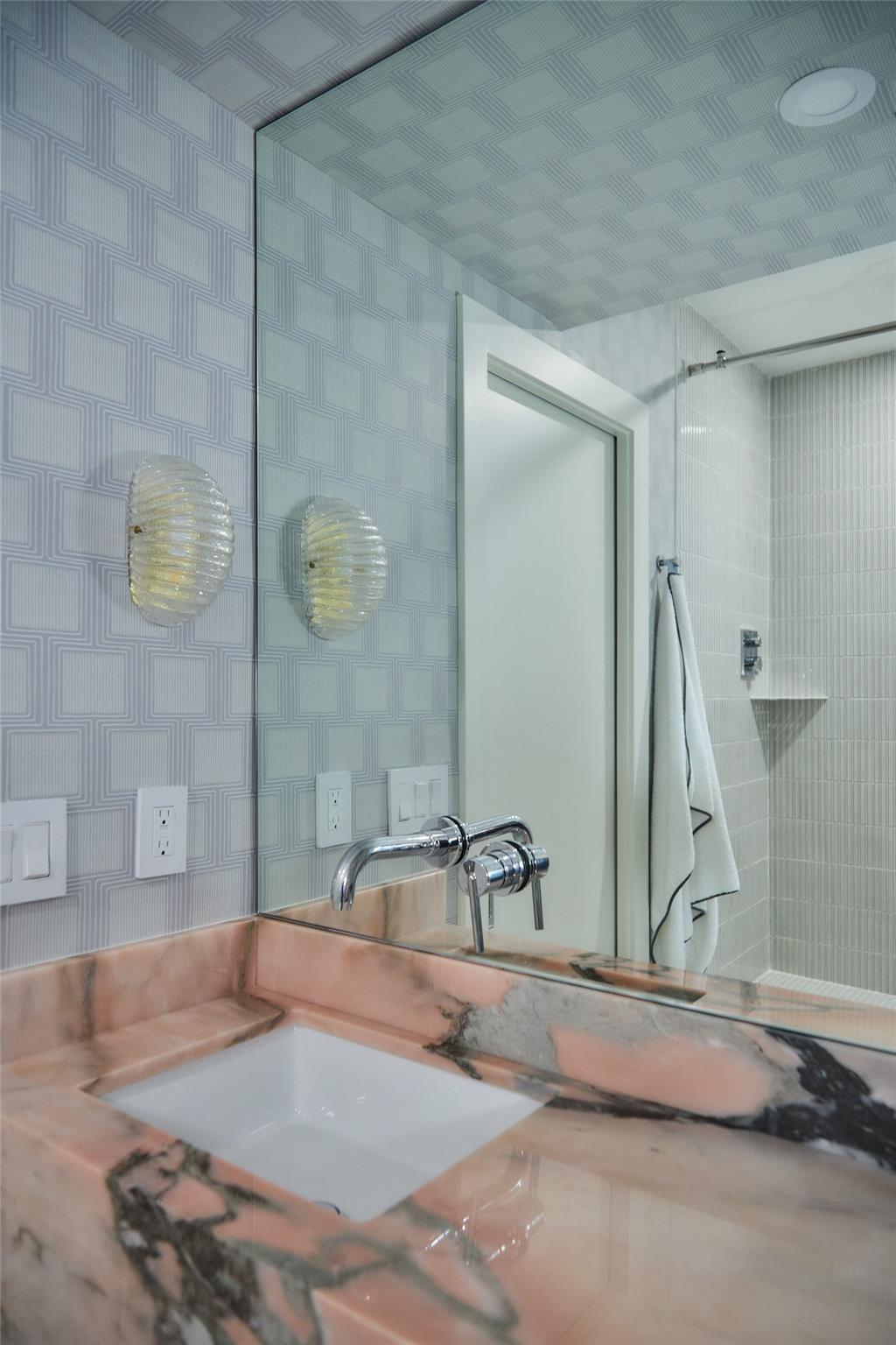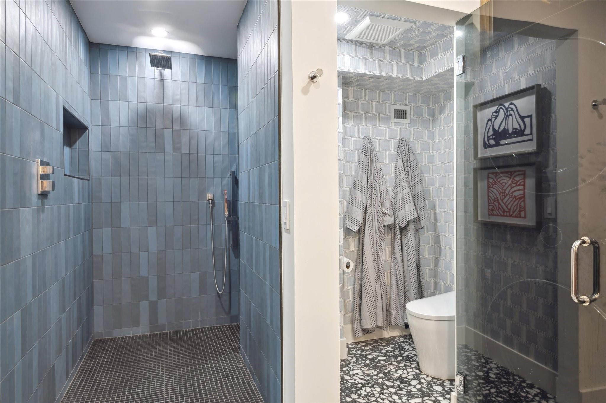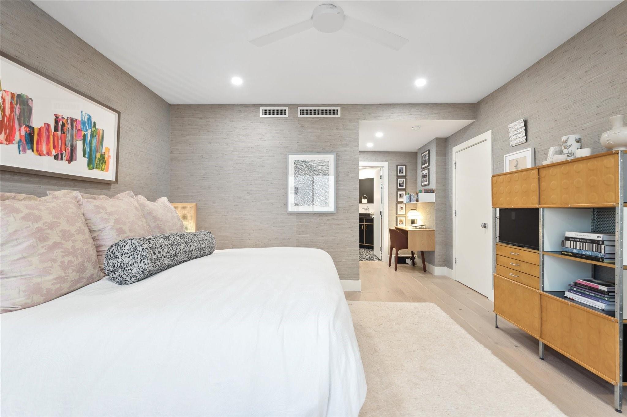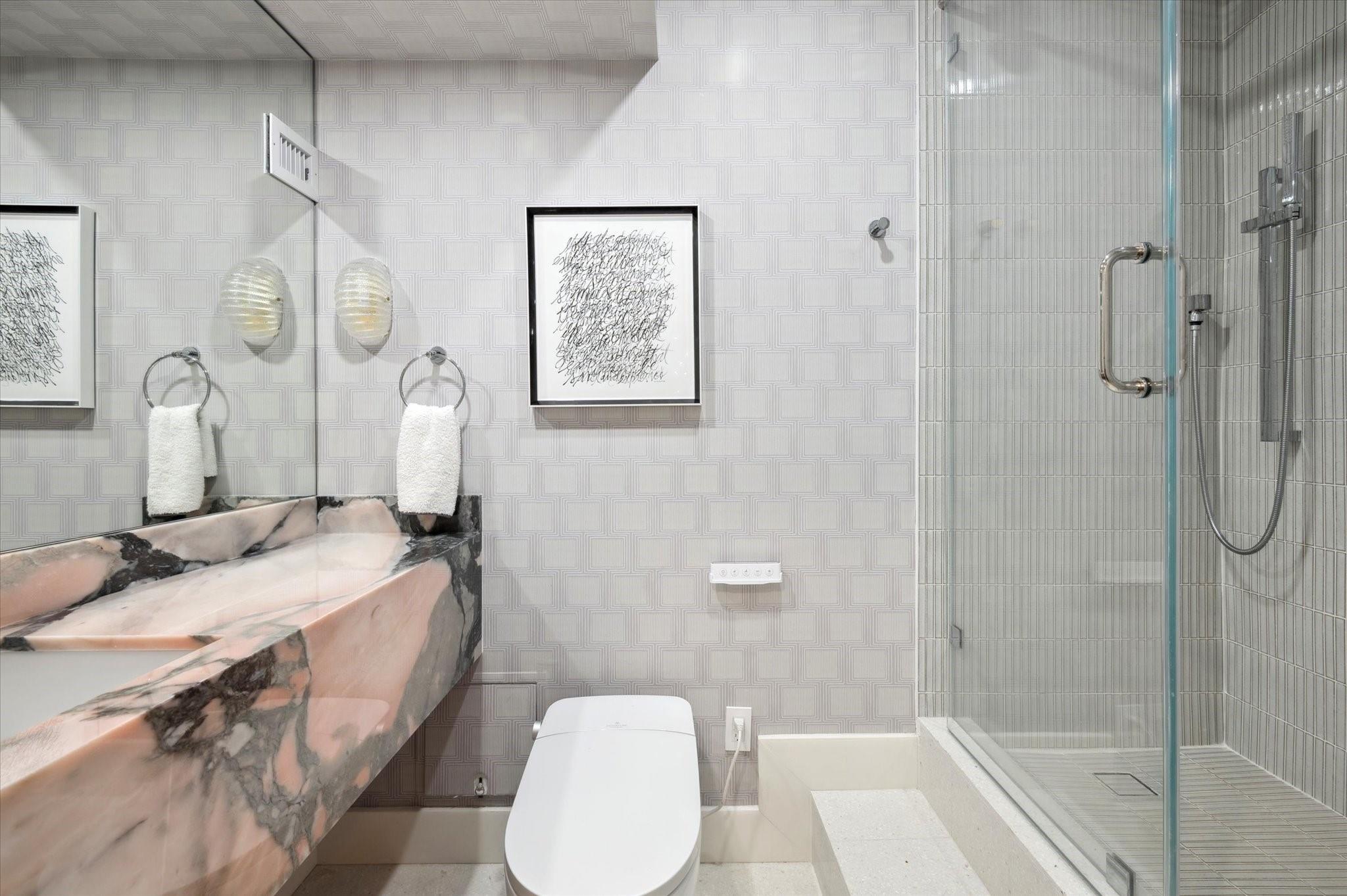 Fabulous! Over $250K spent in renovations with Dockage available and No Fixed Bridges. Reconfigured to include 2 office areas, a private primary with a large walk-in closet, a stunning, spacious bath with custom cabinets, oversized shower & water closet. Views galore from a raised lounge area that includes workspace & allowing for a private 2nd bedroom area. Beautiful light oak floors throughout, custom high-end wallpaper, LED lighting & Grohe Faucets. Both baths have new terrazzo flooring, automatic bidet toilets & handmade finishes including a subtle Japanese tile in the 2nd to go with a show stopper pink marble. The kitchen has custom oak cabinets, French Marble and views of Sunset Lake. An XL-patio offers ocean & Intracoastal views. Large dog-friendly, 24-hr concierge, best location!
