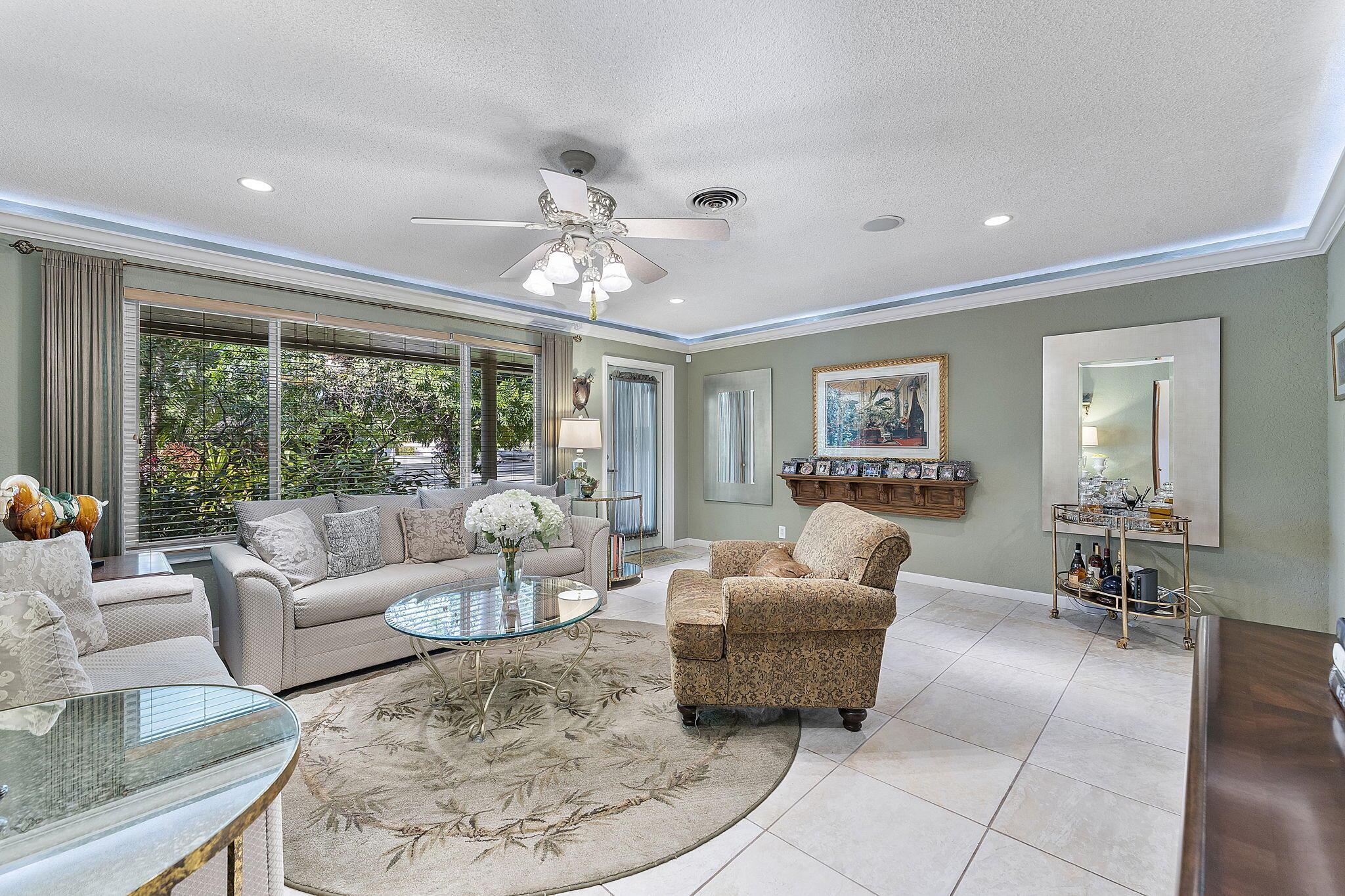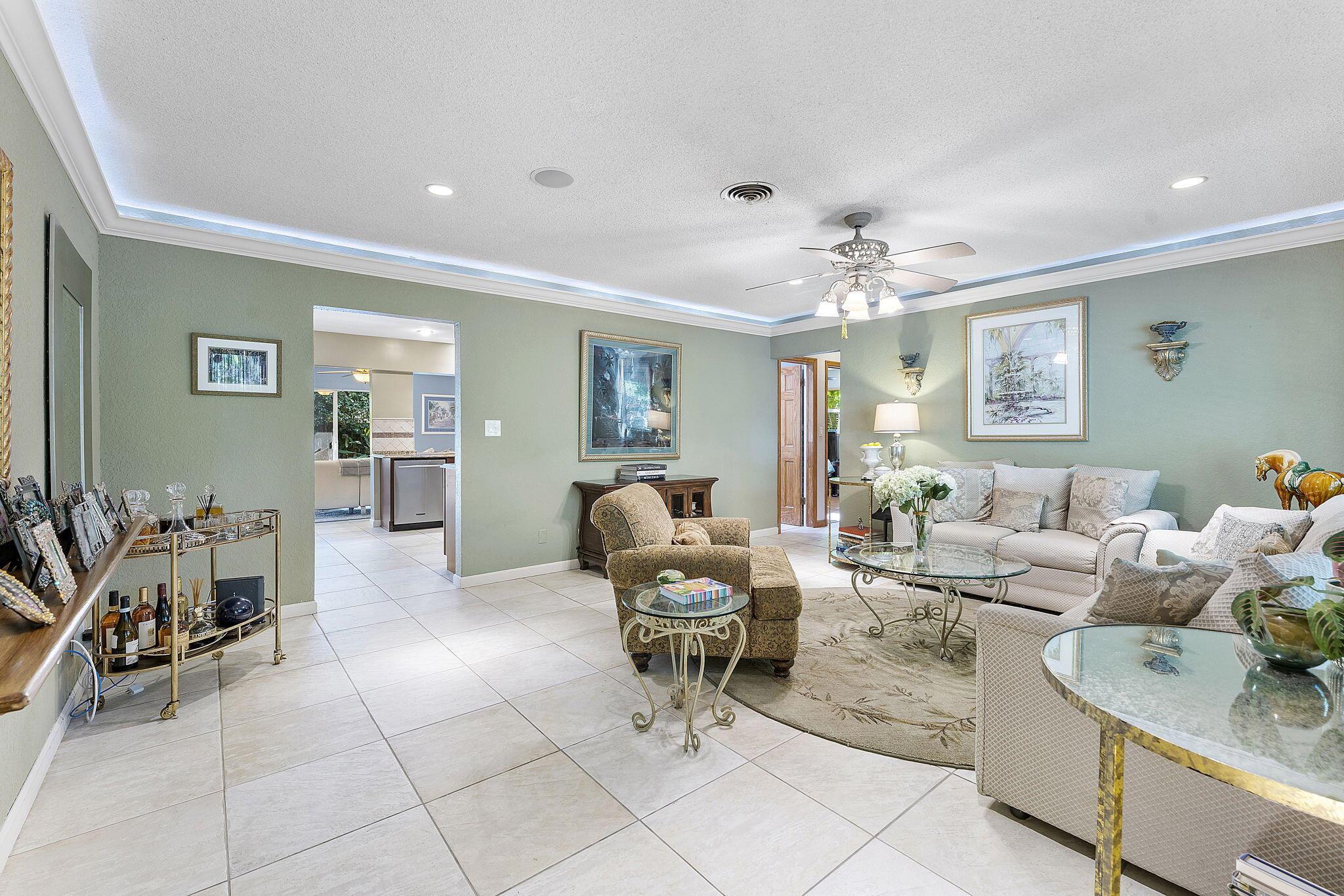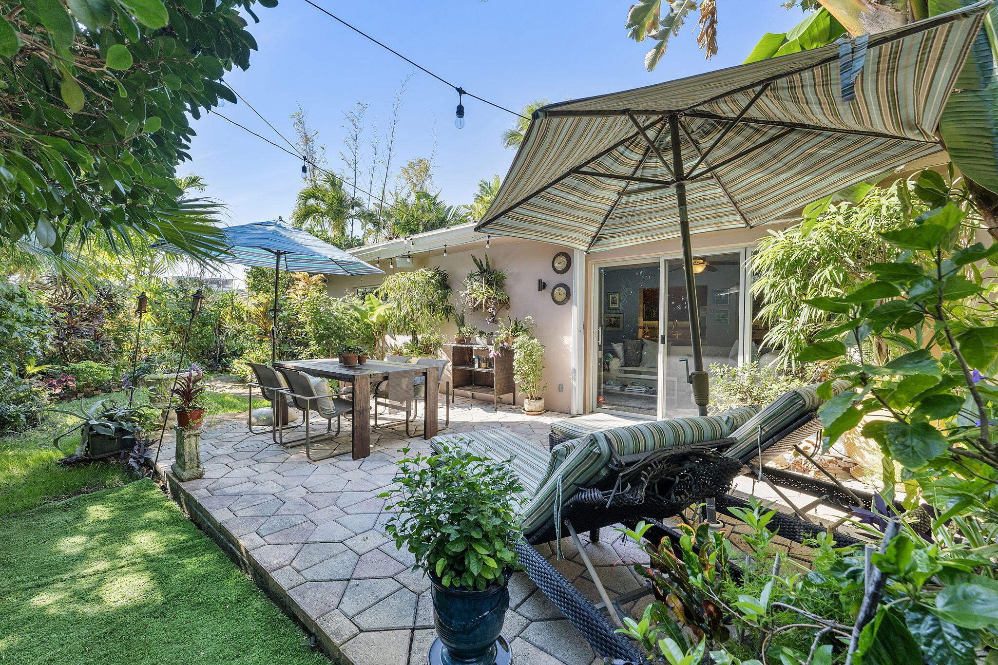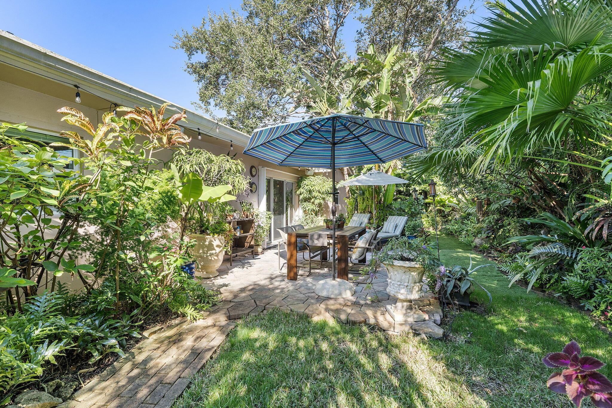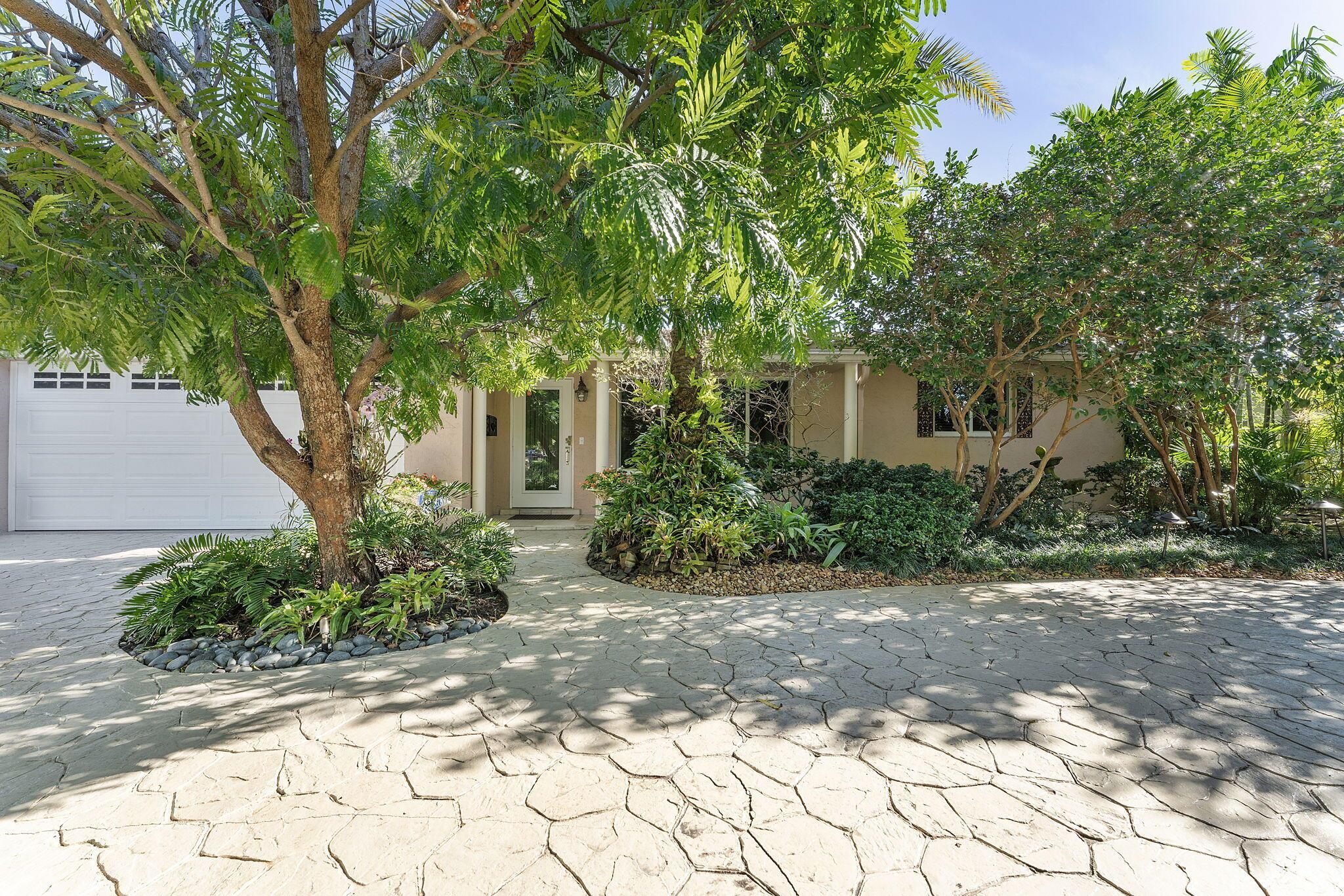 Nestled in the heart of lush greenery, this captivating ranch-style gem blends modern elegance with serene privacy. Boasting 4 spacious bedrooms, 2 beautifully updated bathrooms & 2-car garage, this home offers the ultimate sanctuary. With no HOA restrictions, freedom meets sophistication. Step inside to discover a bright, open floor plan featuring a designer kitchen with custom cabinetry, granite countertops, and stainless steel appliances. The inviting living spaces are adorned with crown molding, recessed lighting, and tile flooring, perfect for both relaxation and entertaining. Outside, an enchanting garden surrounds the home, offering tranquility and shade from mature trees and tropical plants. The expansive patio is ideal for al fresco dining or morning coffee while