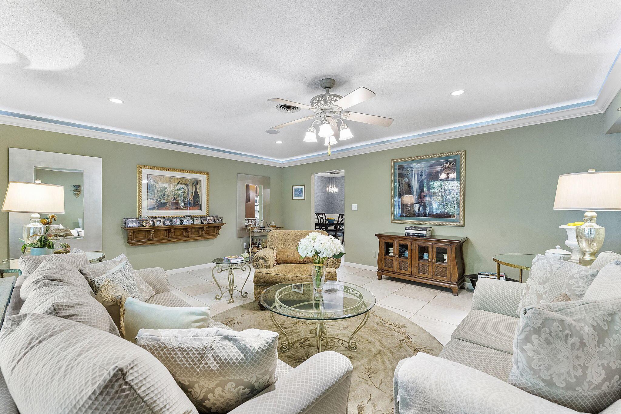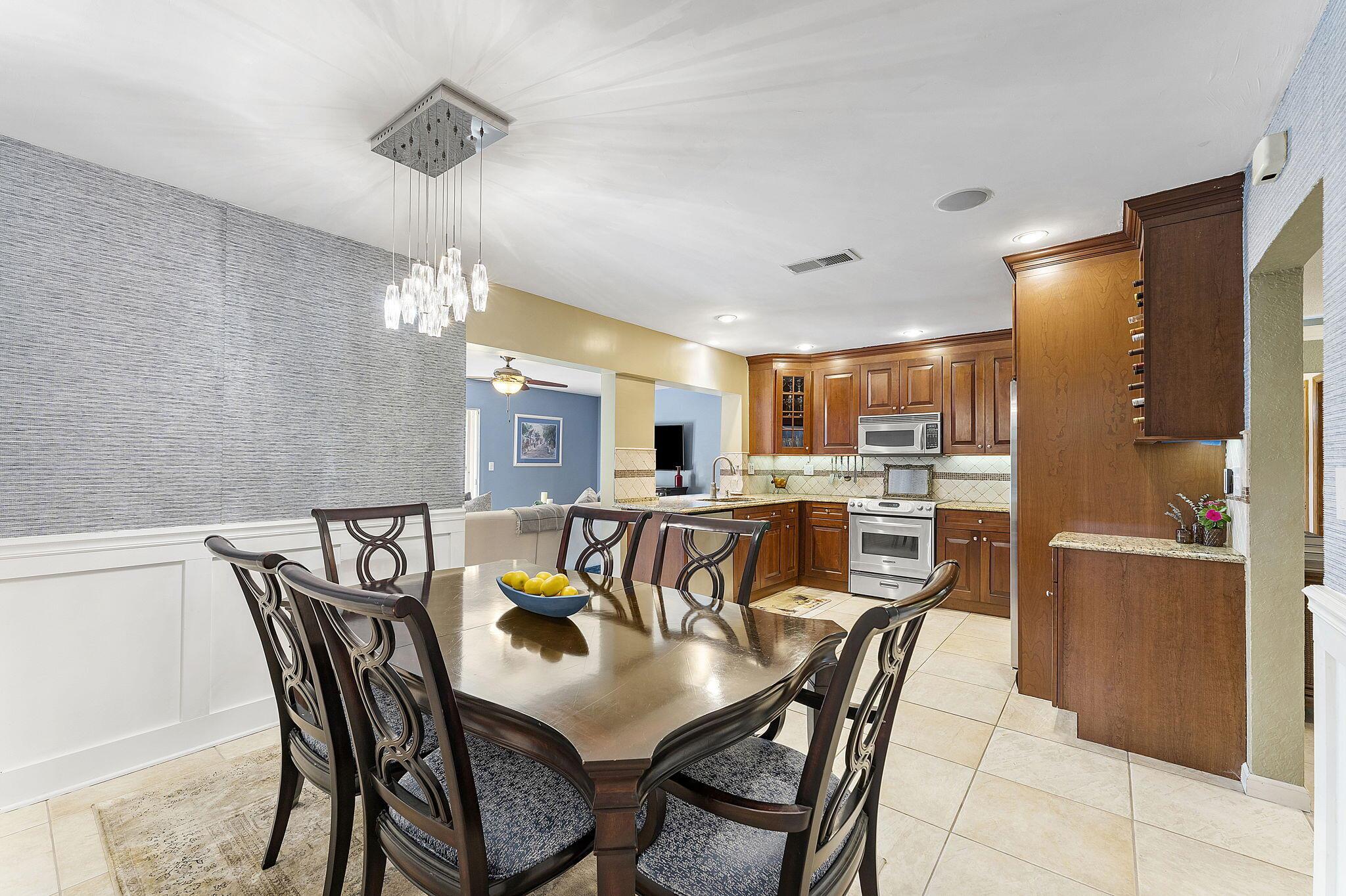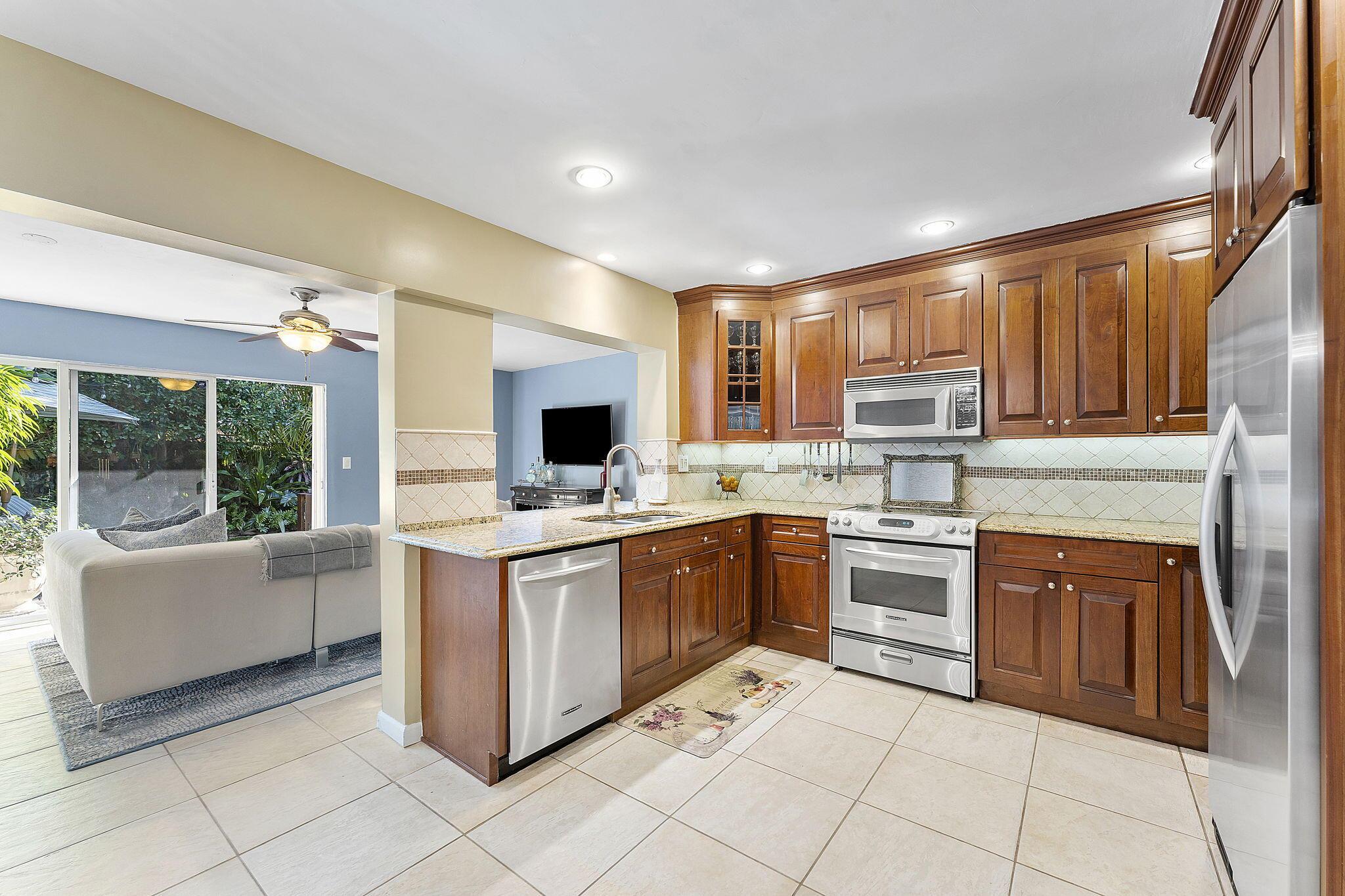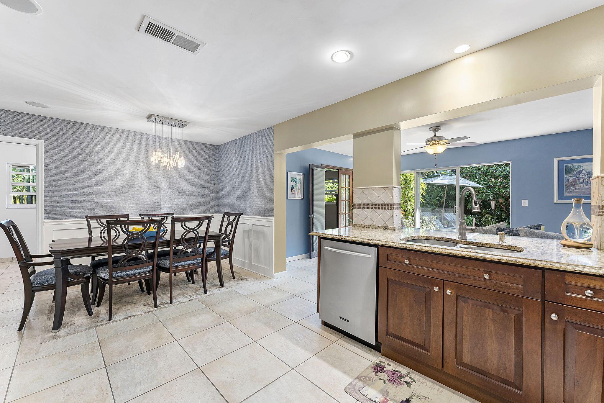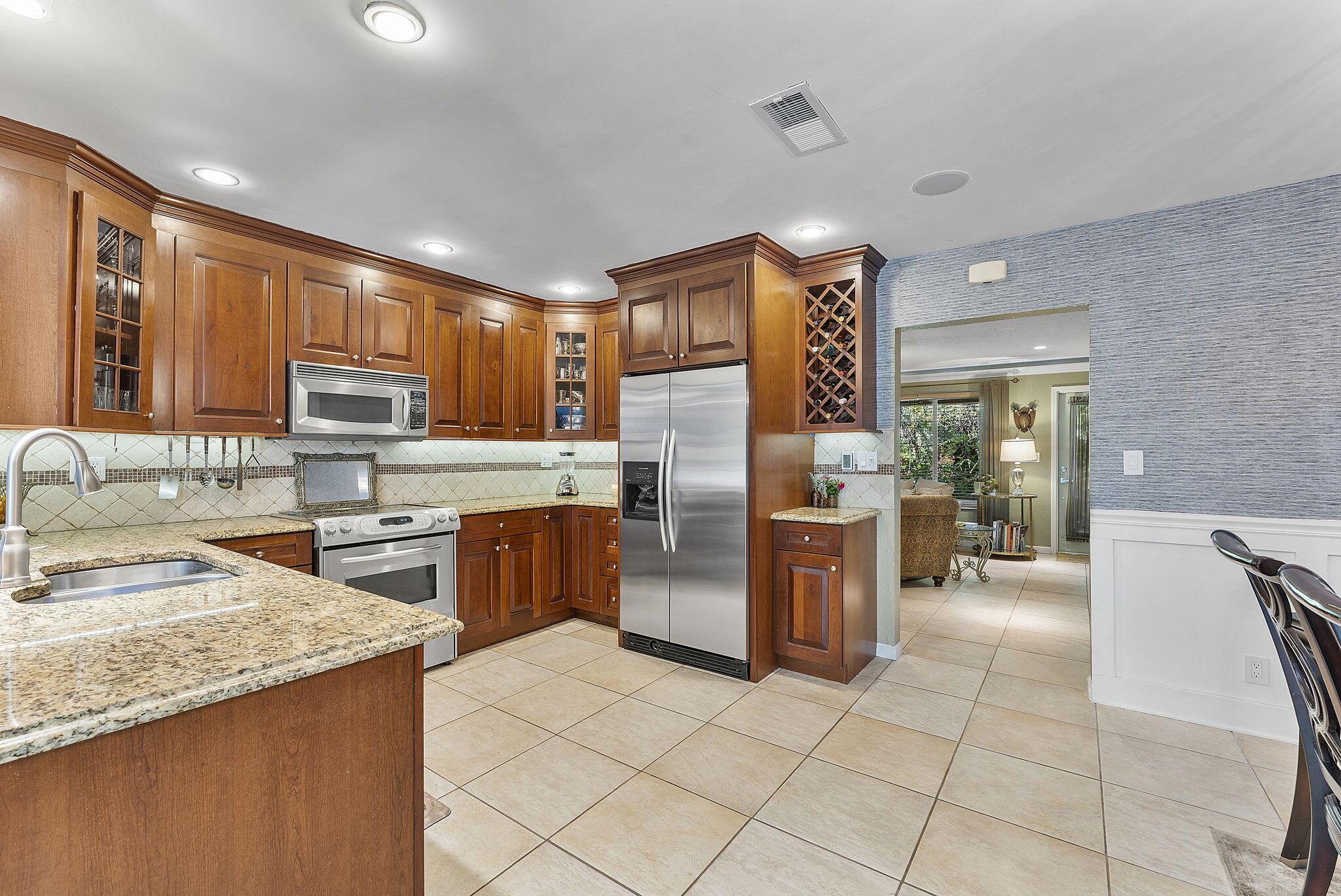 Nestled in the heart of lush greenery, this captivating ranch-style gem blends modern elegance with serene privacy. Boasting 4 spacious bedrooms, 2 beautifully updated bathrooms & 2-car garage, this home offers the ultimate sanctuary. With no HOA restrictions, freedom meets sophistication. Step inside to discover a bright, open floor plan featuring a designer kitchen with custom cabinetry, granite countertops, and stainless steel appliances. The inviting living spaces are adorned with crown molding, recessed lighting, and tile flooring, perfect for both relaxation and entertaining. Outside, an enchanting garden surrounds the home, offering tranquility and shade from mature trees and tropical plants. The expansive patio is ideal for al fresco dining or morning coffee while