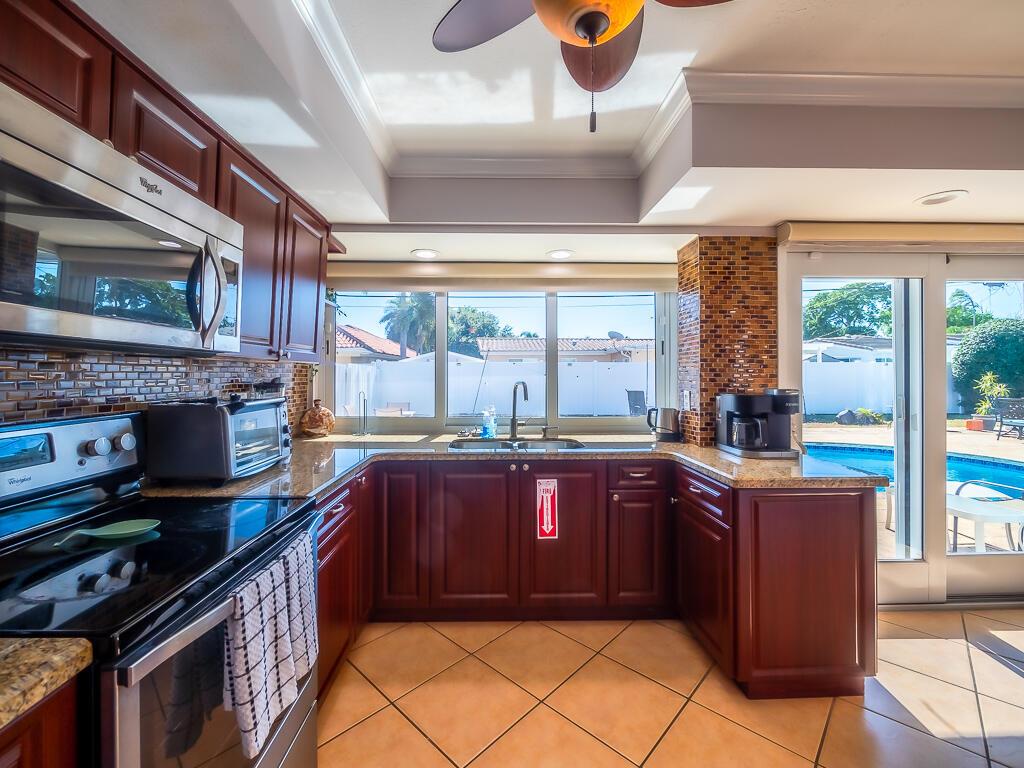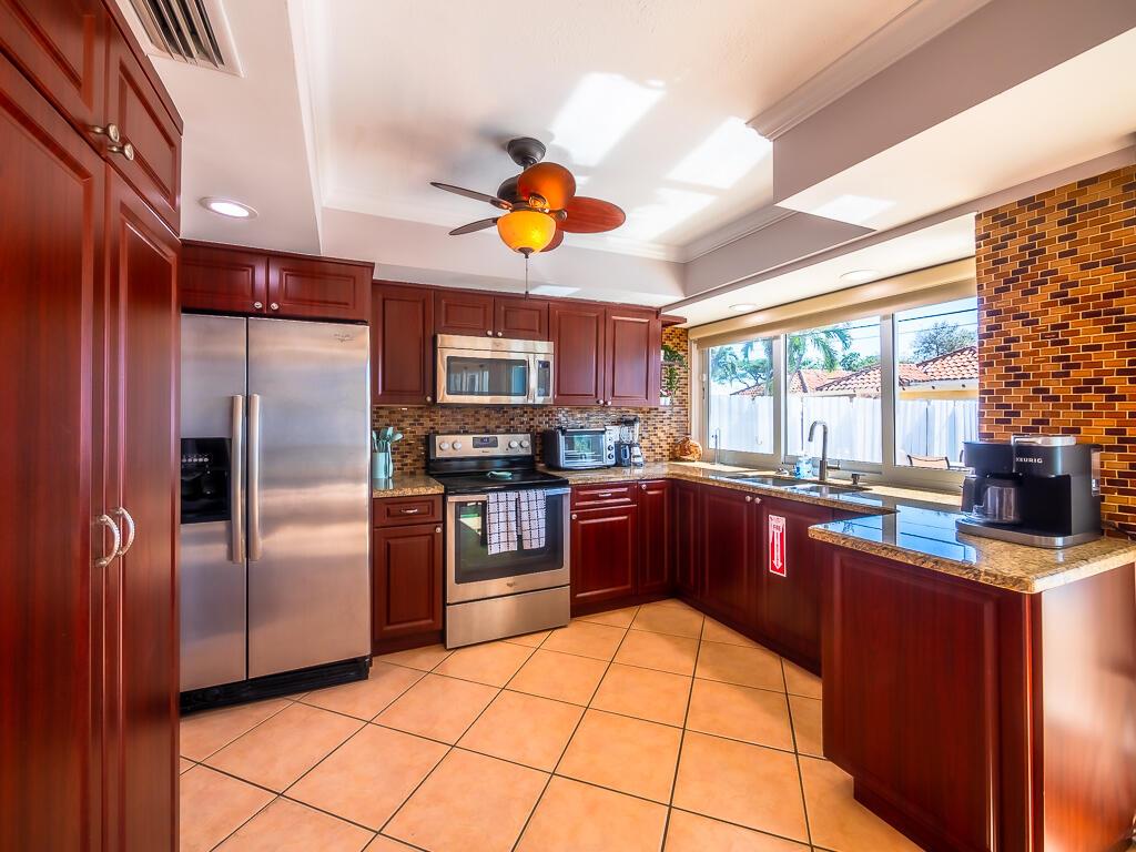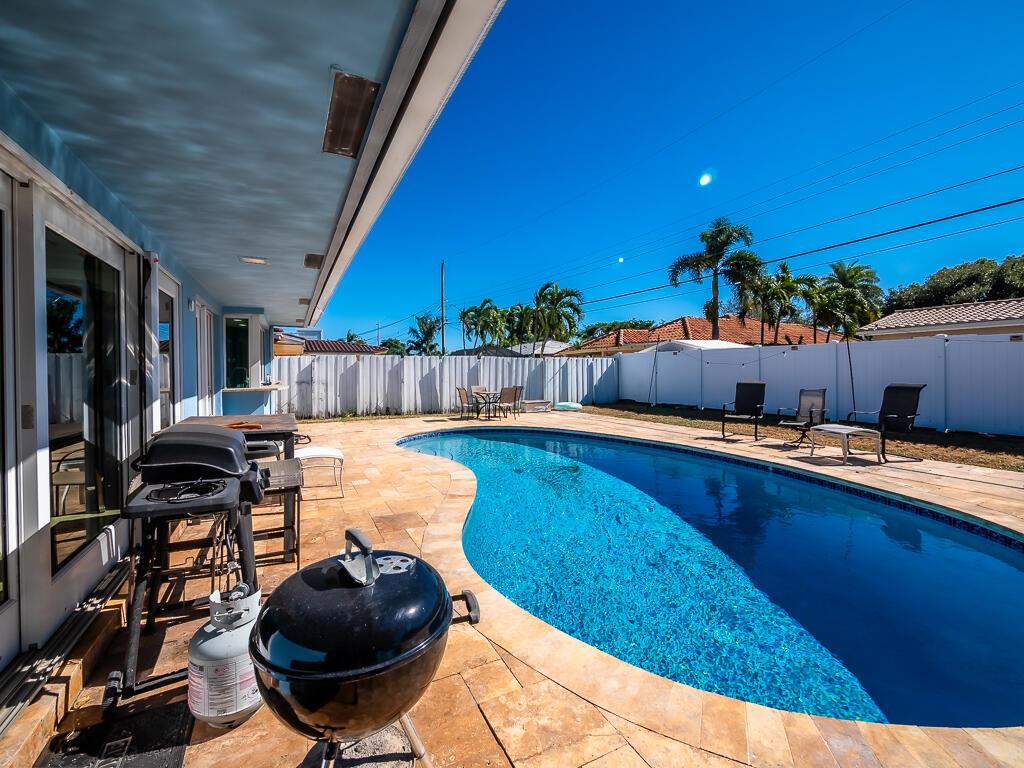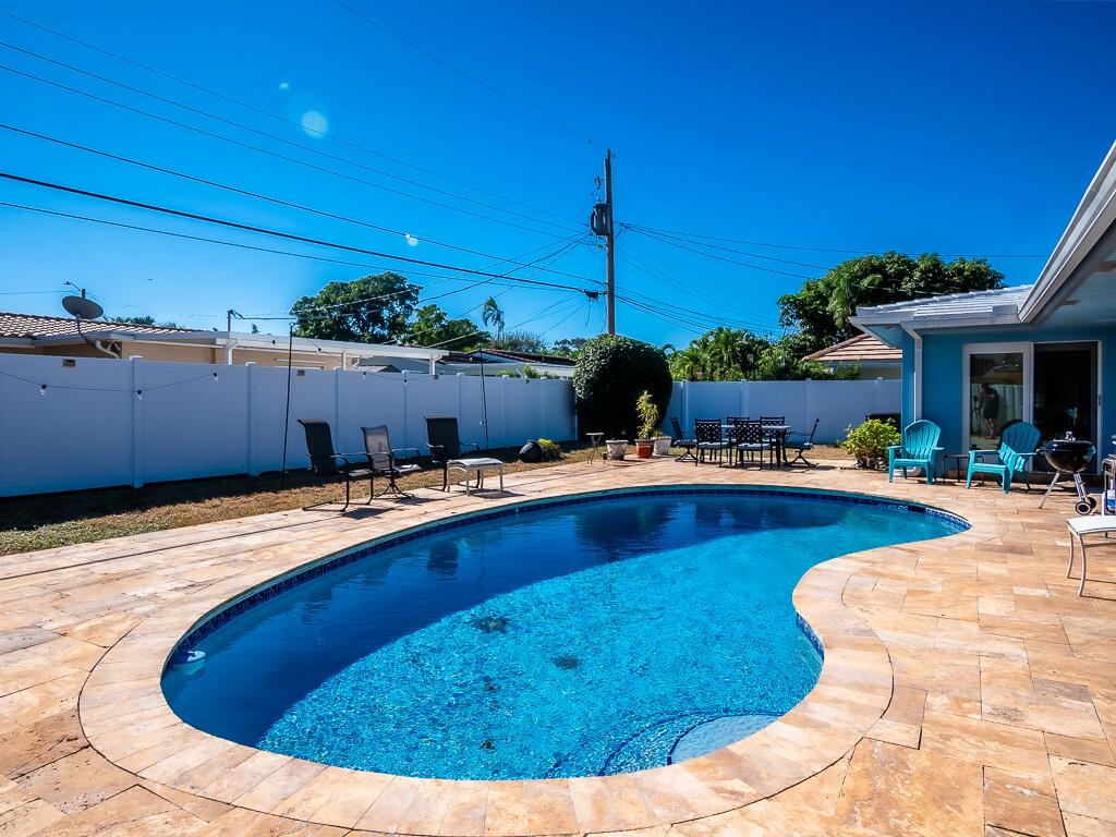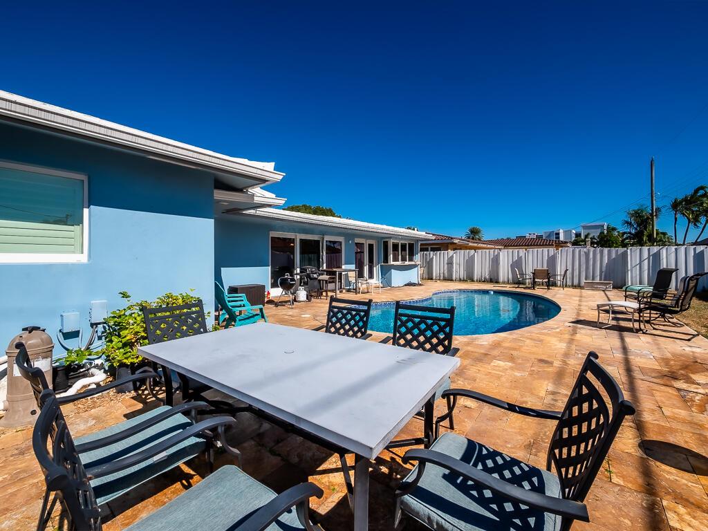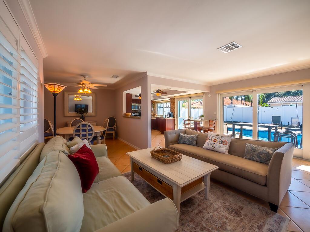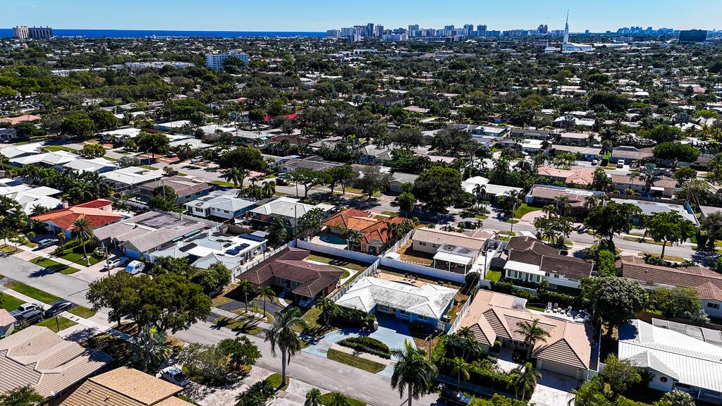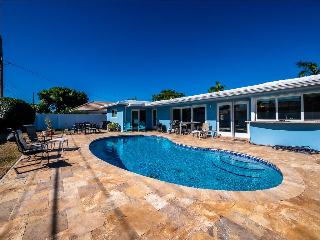 Welcome to your new oasis in the highly desirable Imperial Point subdivision! Just minutes from the beach, this remarkable 3-bedroom, 2-bathroom home offers 1,373 sq ft of living space and a one-car garage. Enjoy the benefits of a currently income-producing property that features a large circular driveway and an inviting open floor plan that radiates warmth and sophistication. You'll be captivated as you enter, greeted by neutral colors and recessed lighting. The combination of tile, stone wall feature and wood floors creates a harmonious flow throughout the home.