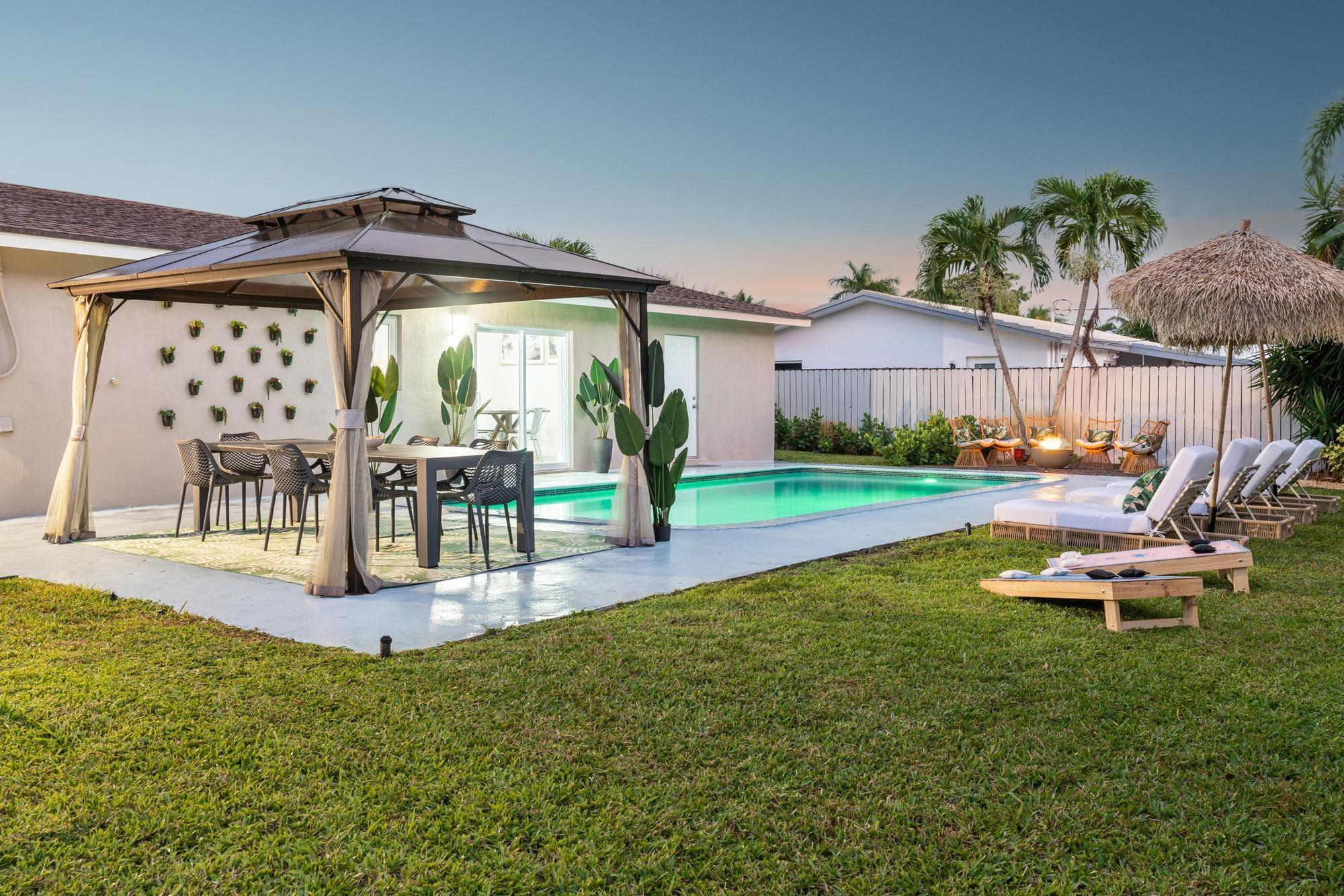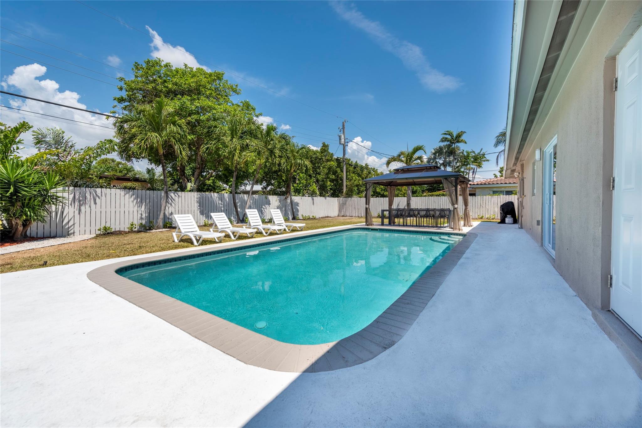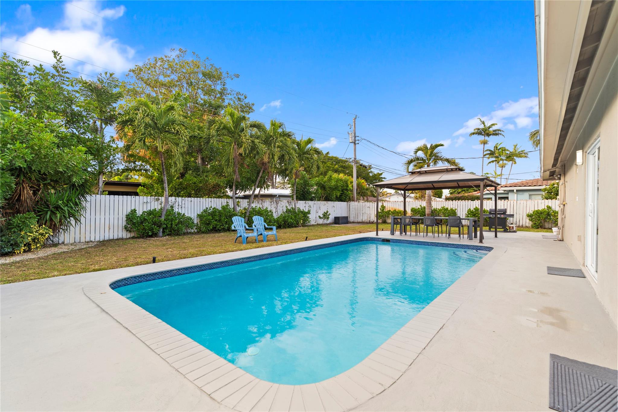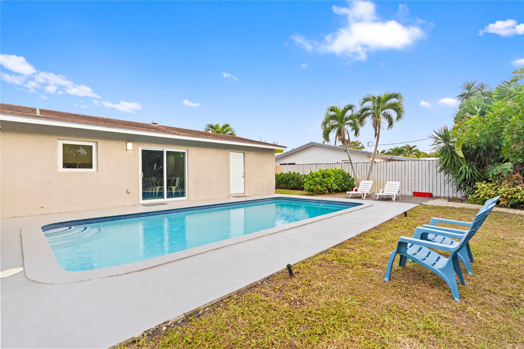 FURNITURE INCLUDED. This bright turnkey private pool home is located in the prestigious Coral Ridge neighborhood. Close to Lauderdale by The Sea Beach, golf, restaurants, and shopping. The one-story home features a split open-concept design creating a seamless flow between the living room, dining room, and kitchen overlooking the oversized pool surrounded by tropical landscaping. Recently remodeled. 4 spacious bedrooms, 2 bathrooms plus an additional den/office area. Many features include impact windows & doors, newer appliances, 2016 water heater, irrigation system, recessed lighting & a huge circular driveway. No HOA fees. Don't miss out on the best-priced home in Coral Ridge! Contact us today to schedule your private showing and experience the lifestyle you've been dreaming of.