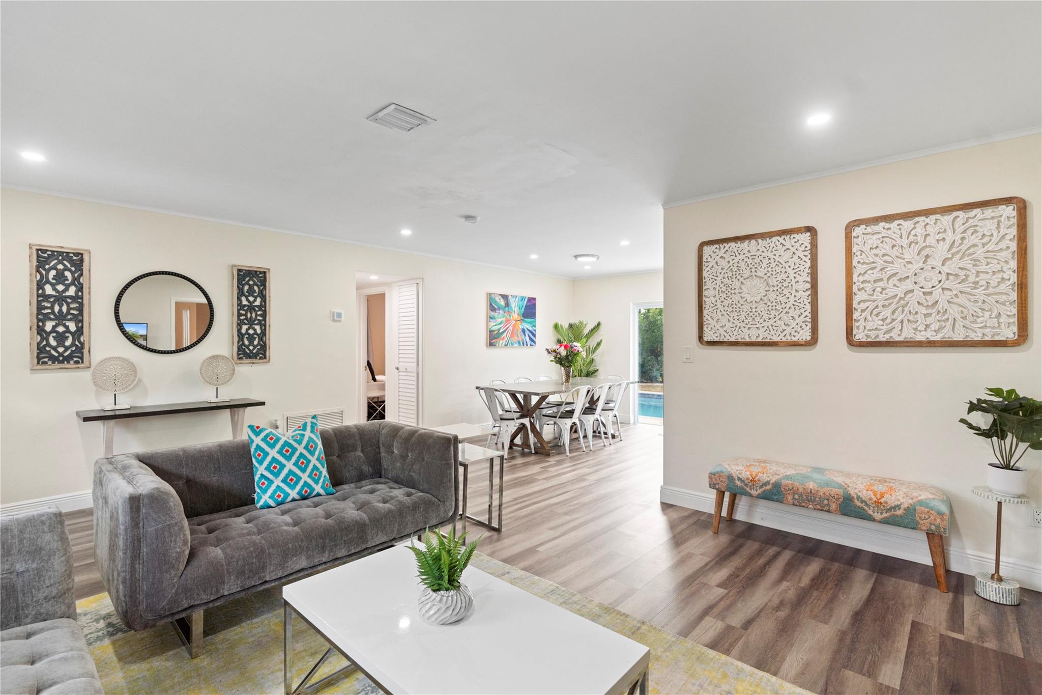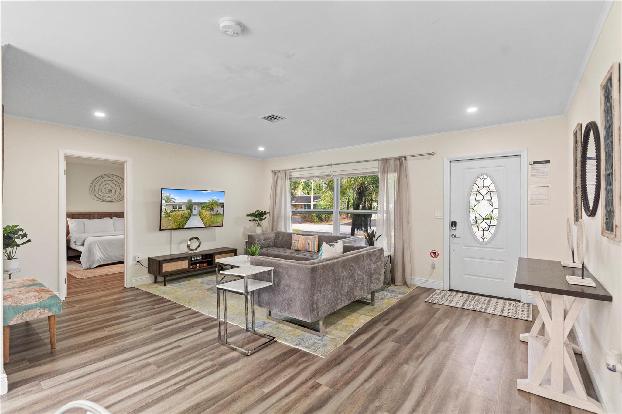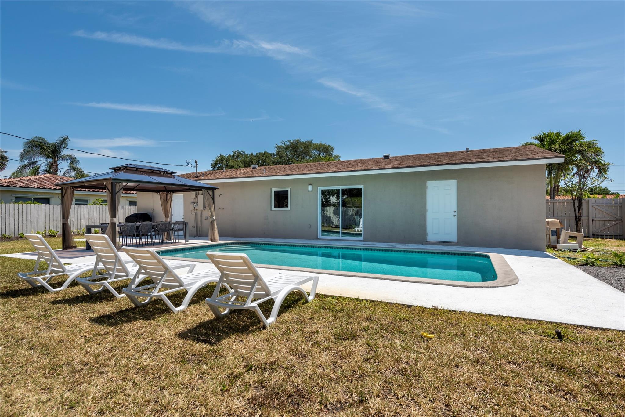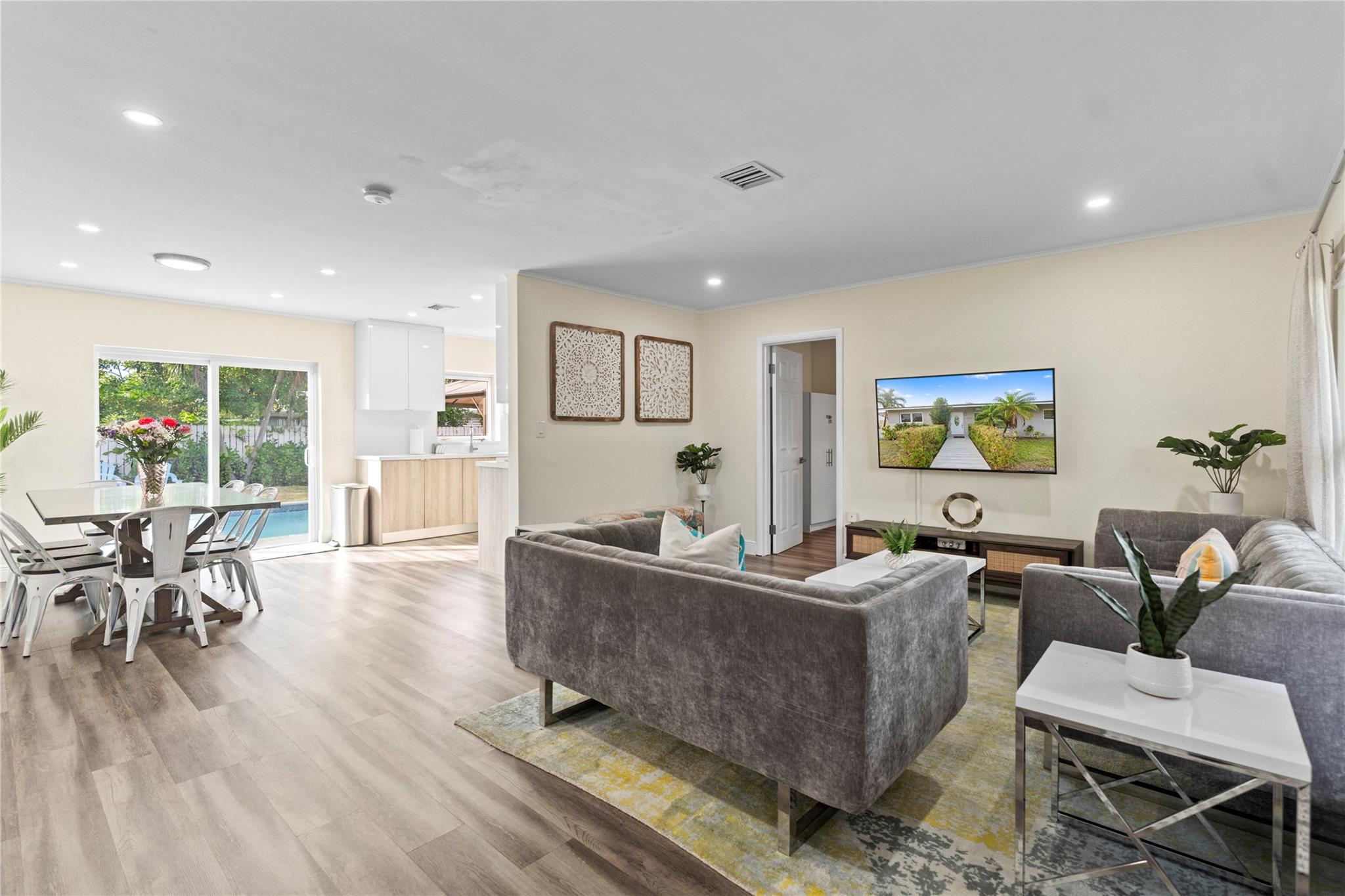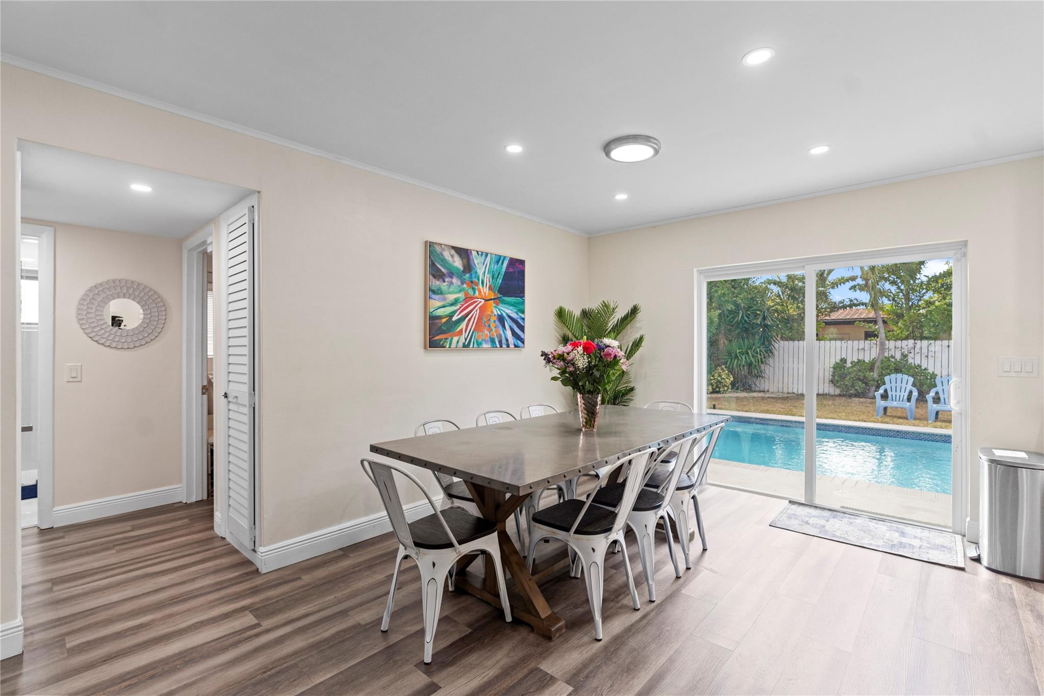 FURNITURE INCLUDED. This bright turnkey private pool home is located in the prestigious Coral Ridge neighborhood. Close to Lauderdale by The Sea Beach, golf, restaurants, and shopping. The one-story home features a split open-concept design creating a seamless flow between the living room, dining room, and kitchen overlooking the oversized pool surrounded by tropical landscaping. Recently remodeled. 4 spacious bedrooms, 2 bathrooms plus an additional den/office area. Many features include impact windows & doors, newer appliances, 2016 water heater, irrigation system, recessed lighting & a huge circular driveway. No HOA fees. Don't miss out on the best-priced home in Coral Ridge! Contact us today to schedule your private showing and experience the lifestyle you've been dreaming of.