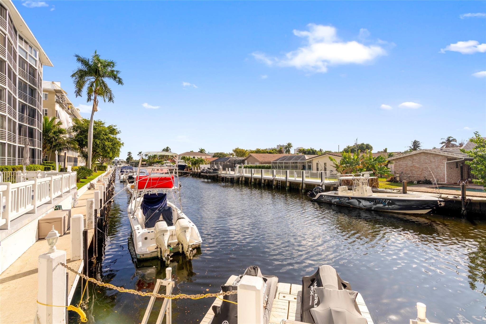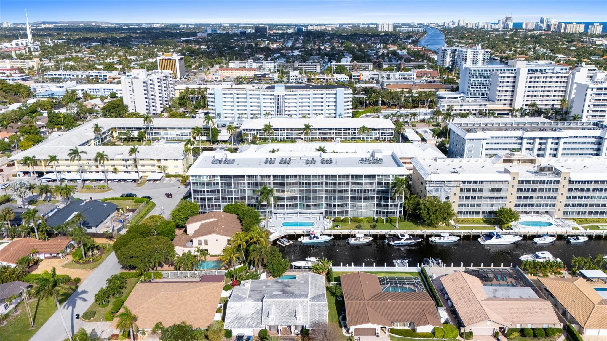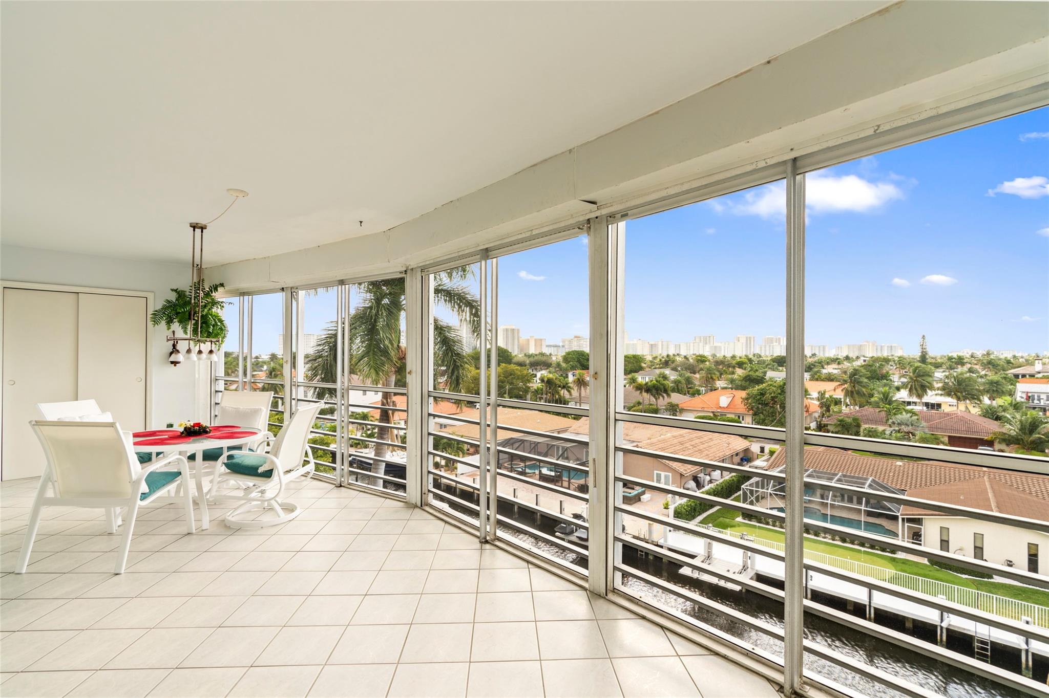 Experience unmatched living space in this Winston House waterfront condo, the largest unit in the building. Boasting 4 bedrooms and 4 bathrooms, this rare double-unit residence offers the perfect blend of spaciousness, comfort and elegance. The expansive living area is designed for entertaining and relaxation while the screened-in patio provides tranquil water views, ideal for enjoying Fort Lauderdale's year-round sunshine. The unit offers impact windows and sliding glass doors, walk-in closets and plenty of natural light. The interior laundry room offers added convenience. This unit includes 2 covered parking spots and 2 private storage units. Winston House is situated in the Coral Ridge Country Club neighborhood, a premium location offering easy access to shopping, dining and beaches.