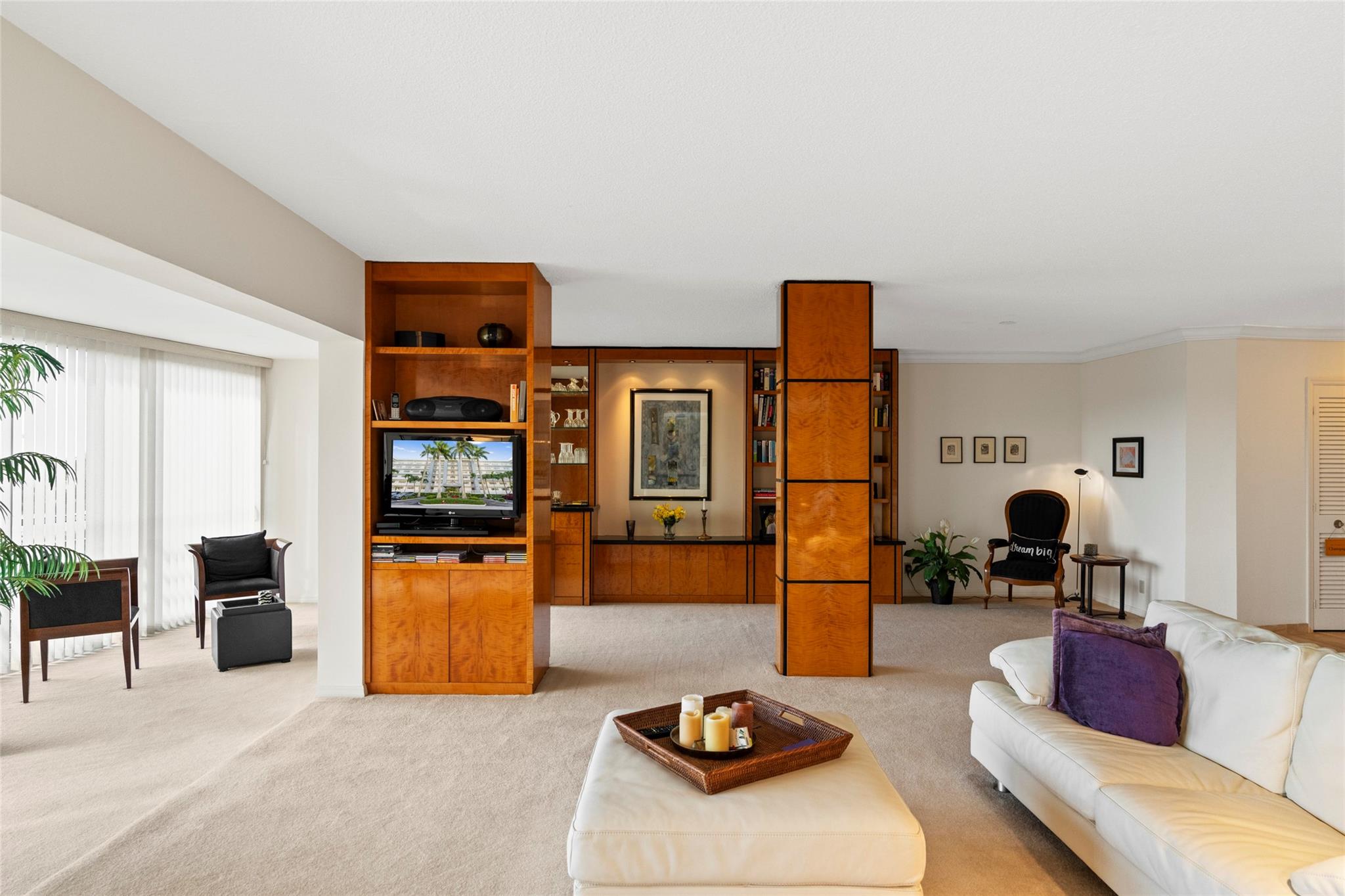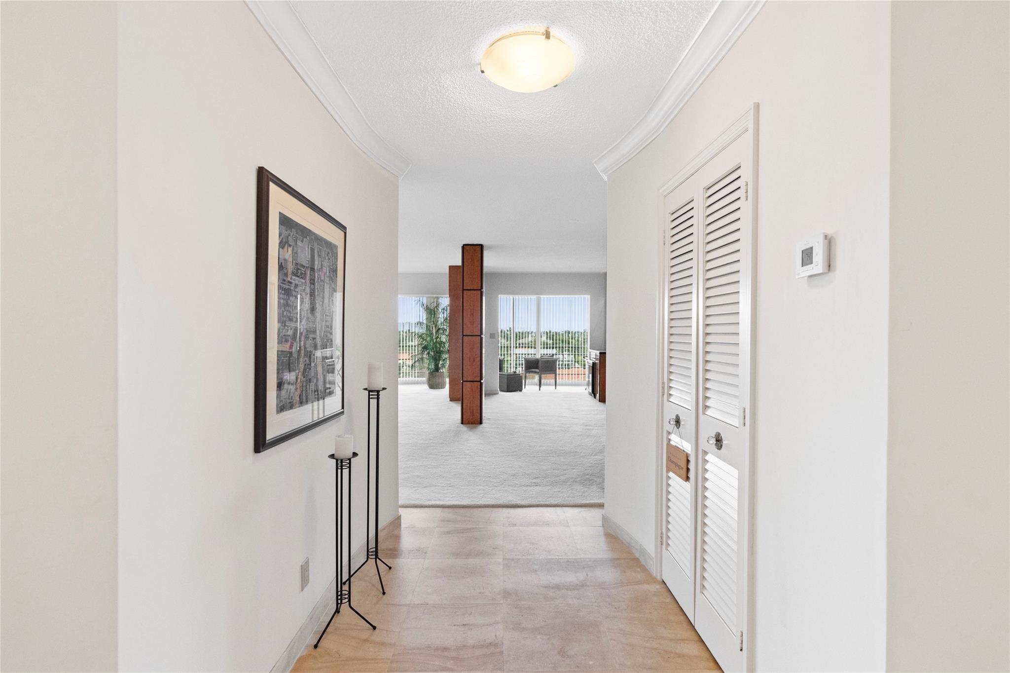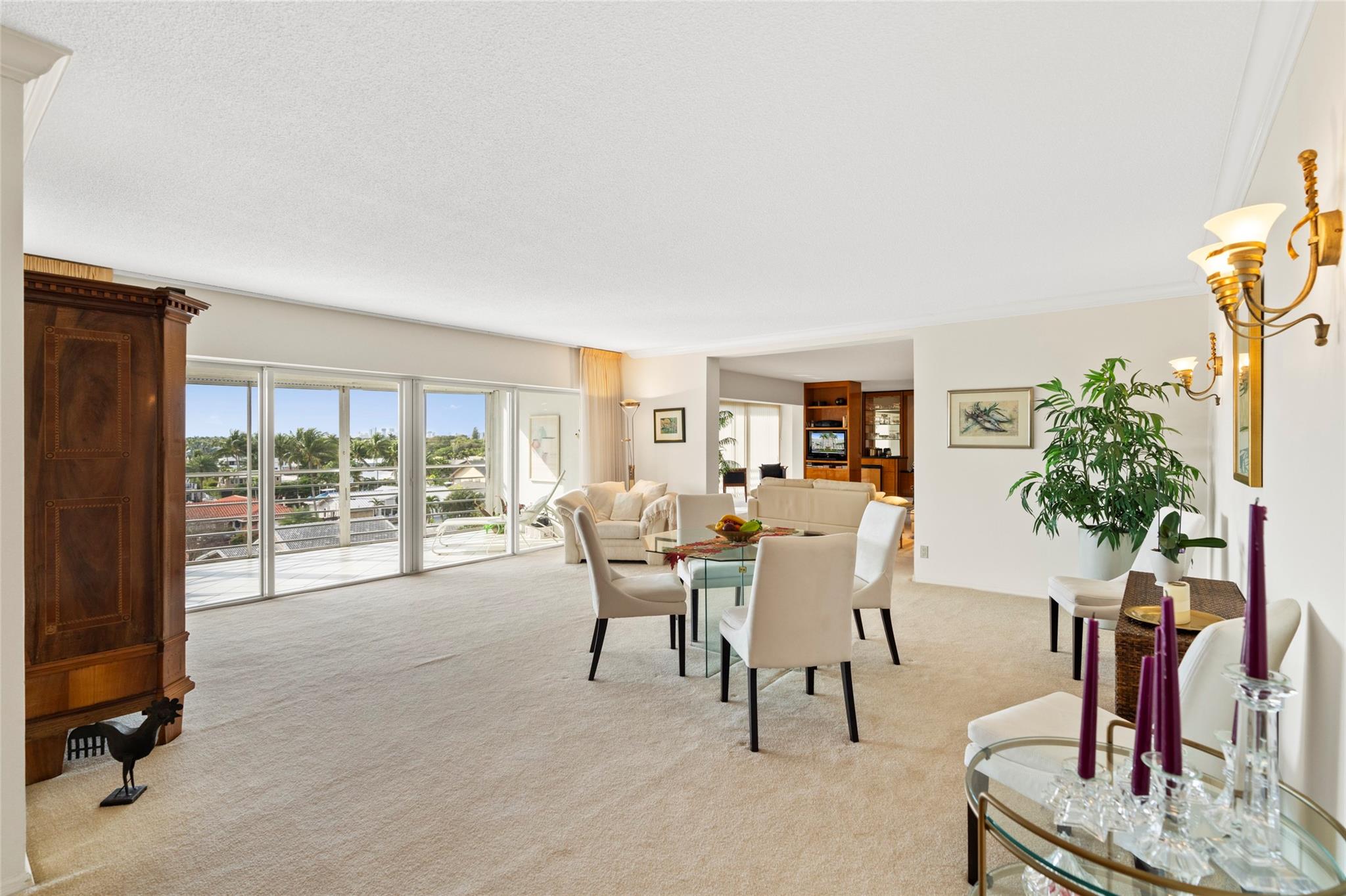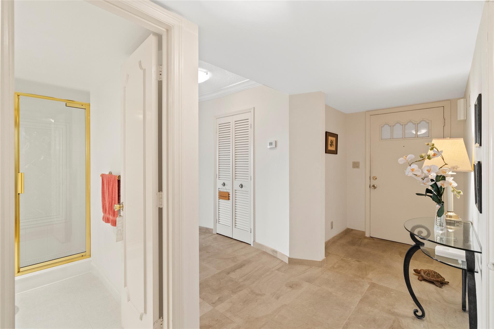 Experience unmatched living space in this Winston House waterfront condo, the largest unit in the building. Boasting 4 bedrooms and 4 bathrooms, this rare double-unit residence offers the perfect blend of spaciousness, comfort and elegance. The expansive living area is designed for entertaining and relaxation while the screened-in patio provides tranquil water views, ideal for enjoying Fort Lauderdale's year-round sunshine. The unit offers impact windows and sliding glass doors, walk-in closets and plenty of natural light. The interior laundry room offers added convenience. This unit includes 2 covered parking spots and 2 private storage units. Winston House is situated in the Coral Ridge Country Club neighborhood, a premium location offering easy access to shopping, dining and beaches.