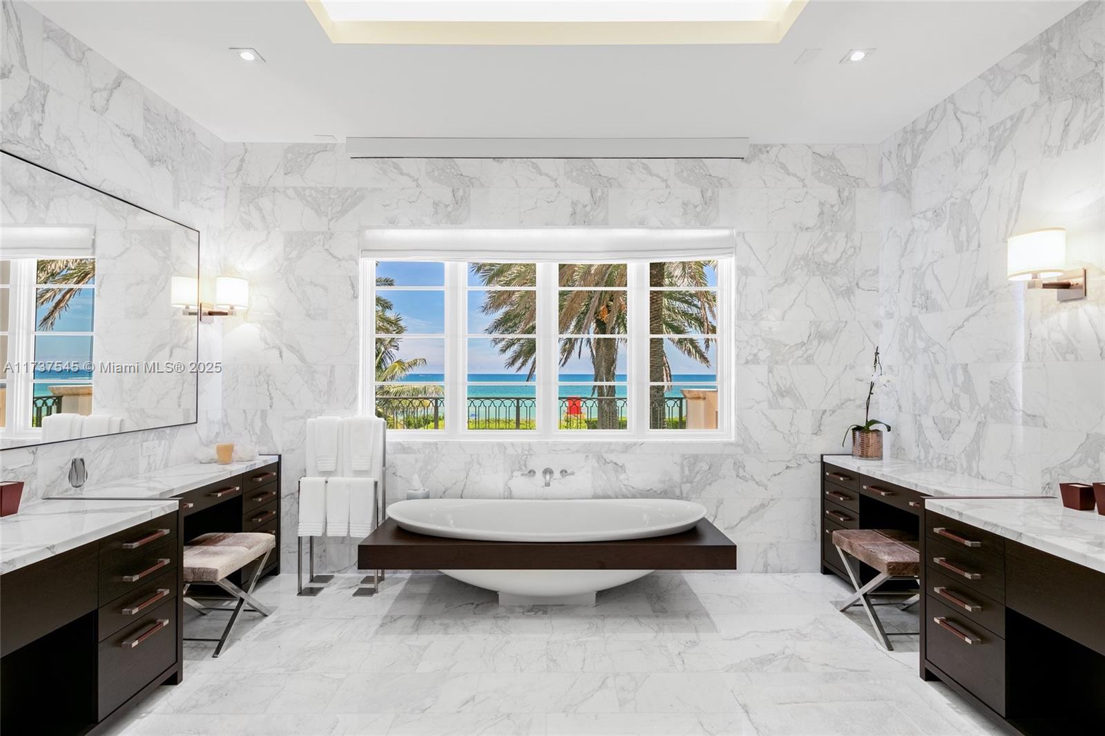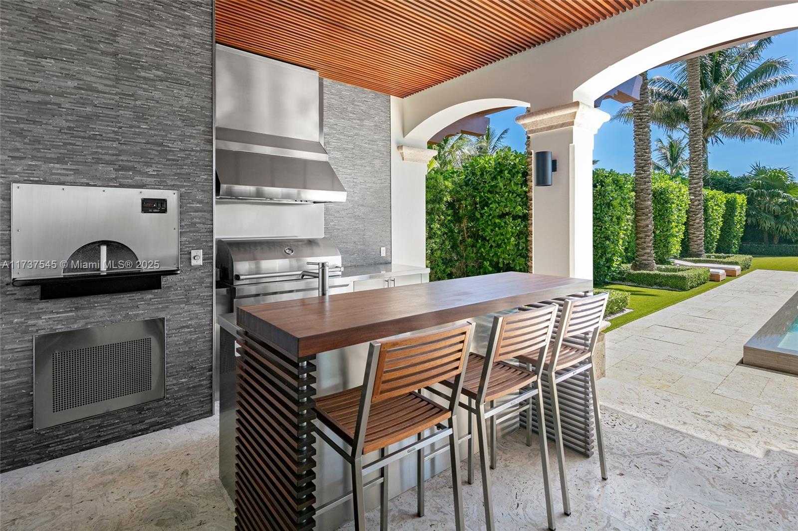 Enjoy a life on the ocean in one of only 12 beachfront homes in all of Miami Beach. Boasting 3 floors of curated living spaces, impeccable finishes and ocean views that will take your breath away. Enter this modern Balinese style 5 bedroom, 6 bathroom home through a stunning courtyard with a fountain, day bed and verdant spaces throughout that lead you to the front door. What you experience in this home is stunning architecture, exquisite spaces for living, relaxing and entertaining. The outdoors are the epitome of oceanfront living reminiscent of a 5 star tropical resort with an infinity edge pool, outdoor dining and living area, summer kitchen with a built-in pizza oven, spa and elevated fire pit lounge all with a direct pathway to the beach
