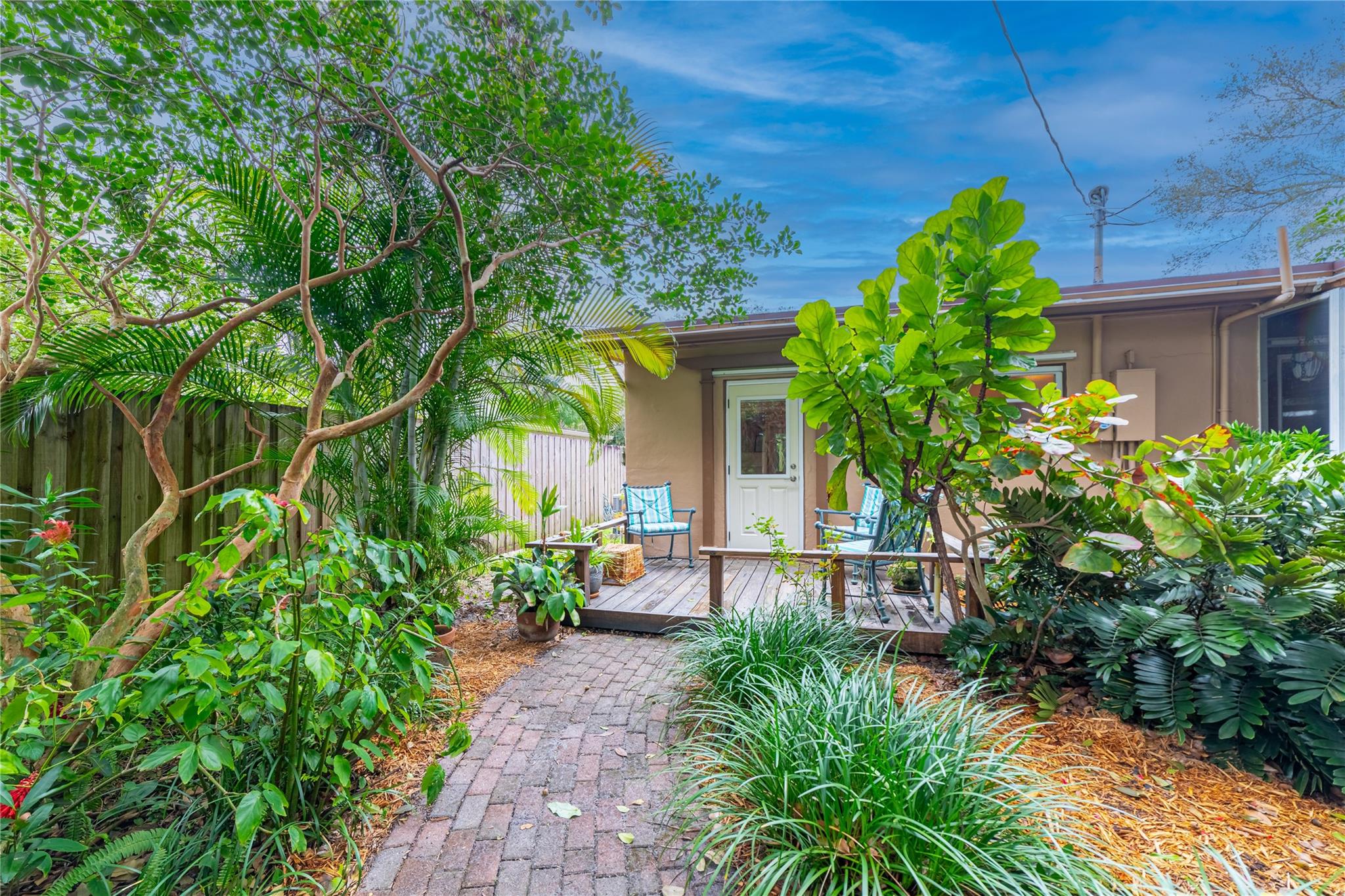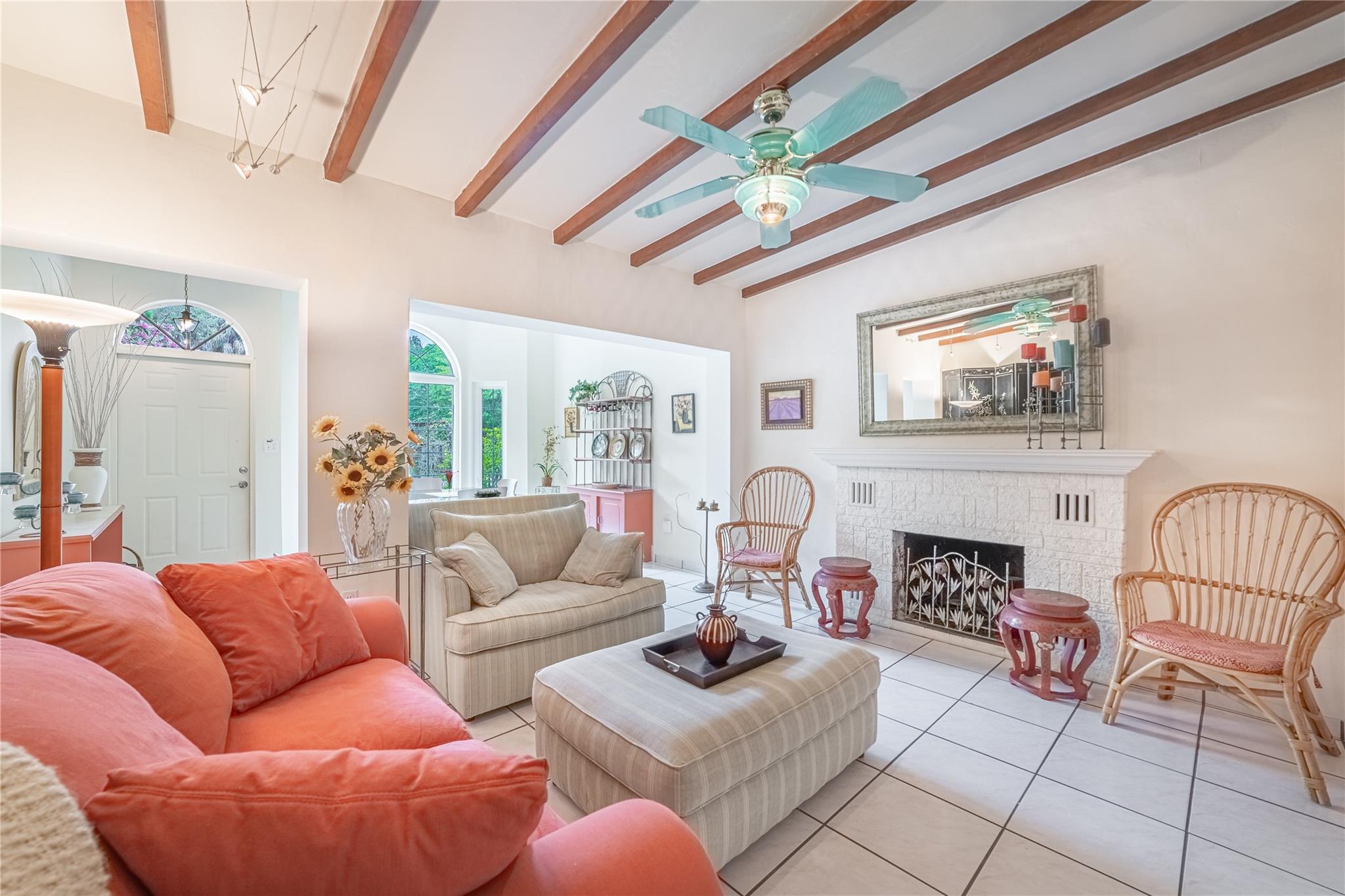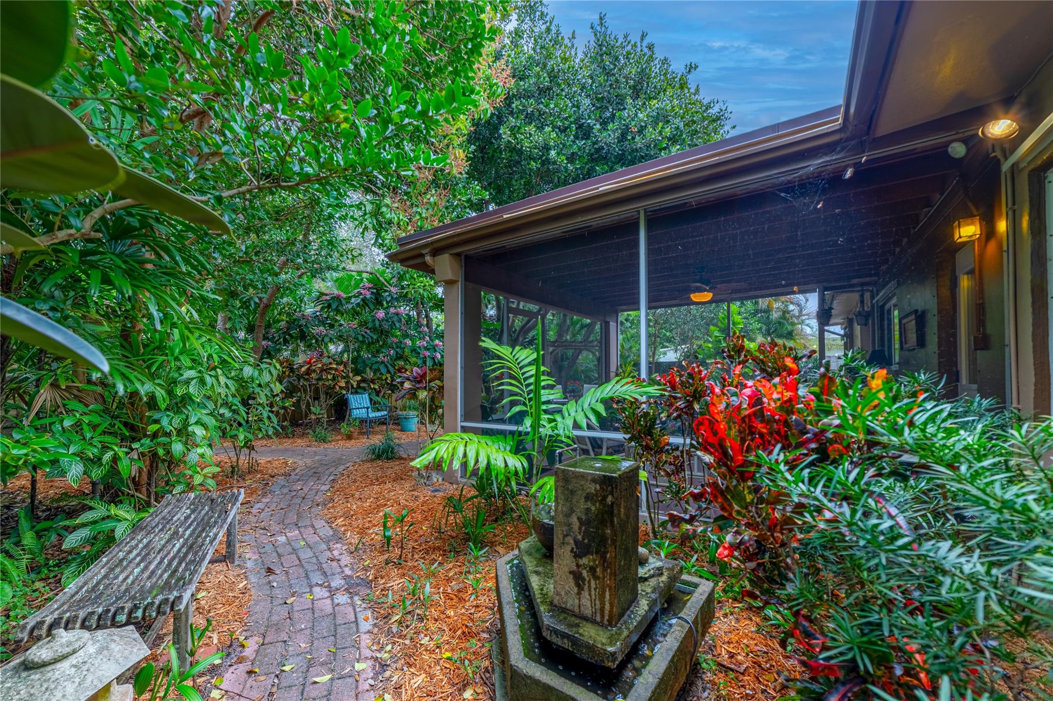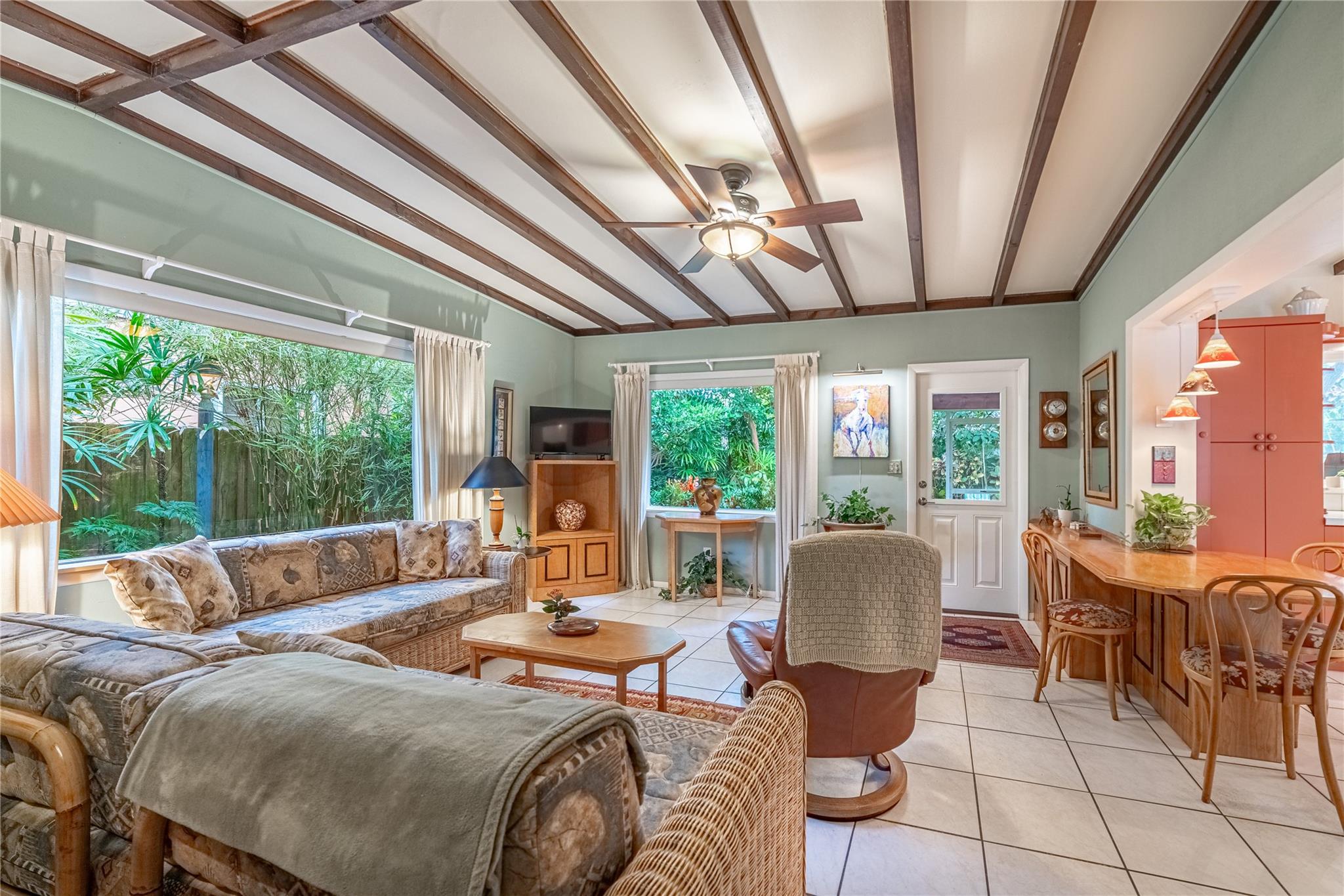 Enjoy Tranquil Gardens & Mid Century Character in this well maintained 2-bedroom 2 bath home in Sought after Shady Banks. Vaulted, Exposed Bean Ceilings, Fireplace, Separate Living, Dining & Family Room. Large Eat in Kitchen with Breakfast Bar. Built in workstation outside of the primary bedroom. Family room off the kitchen with large windows flooded with natural light. Enjoy morning coffee & afternoon cocktails on the screened porch overlooking the lush, mature landscaping. Partial Impact Windows /Doors.2022 roof, 357 sf garage -great workshop or vehicle storage. One way in/out, surrounded by the New River & no through traffic. Enjoy 2 parks with Tennis, Volleyball, Exercise Equipment & a nature preserve along the river with boardwalks, natural crest shoreline next to Safe Harbor Marine.