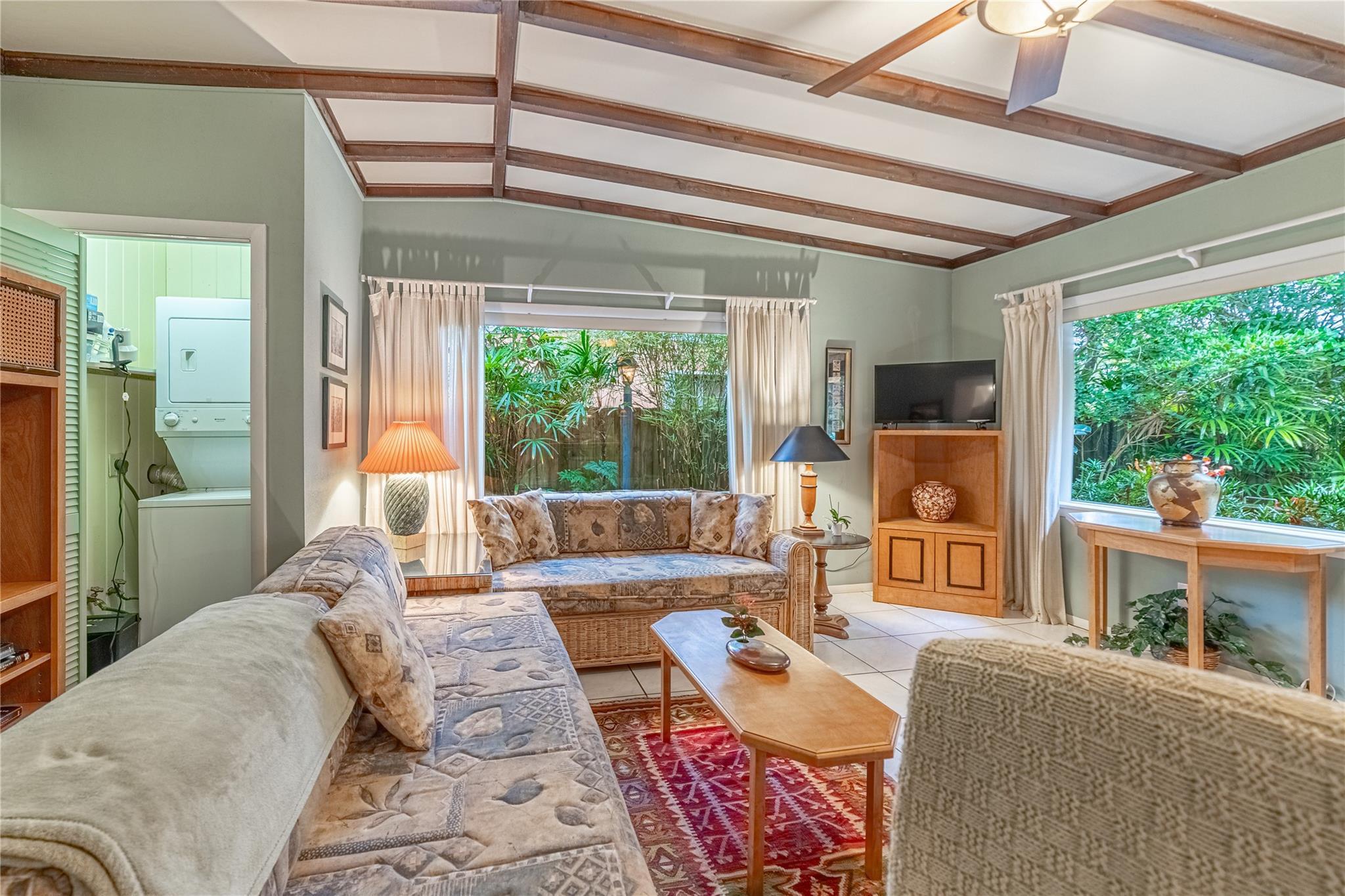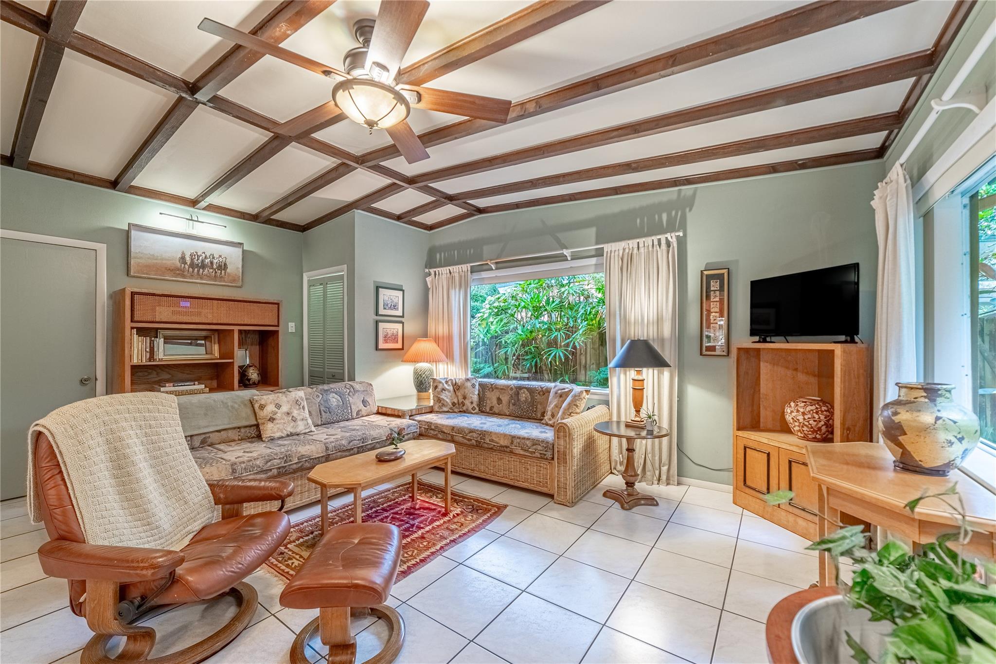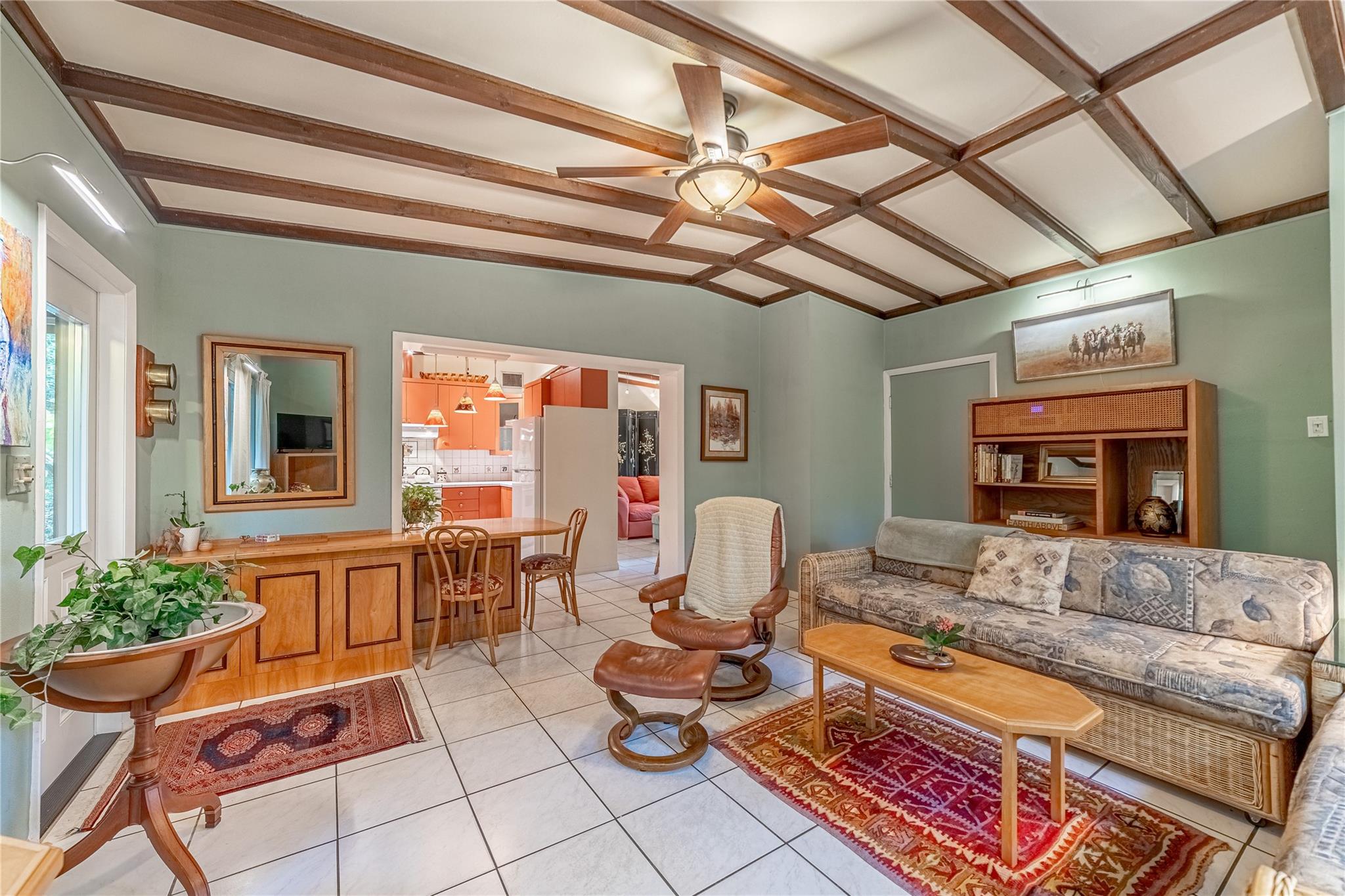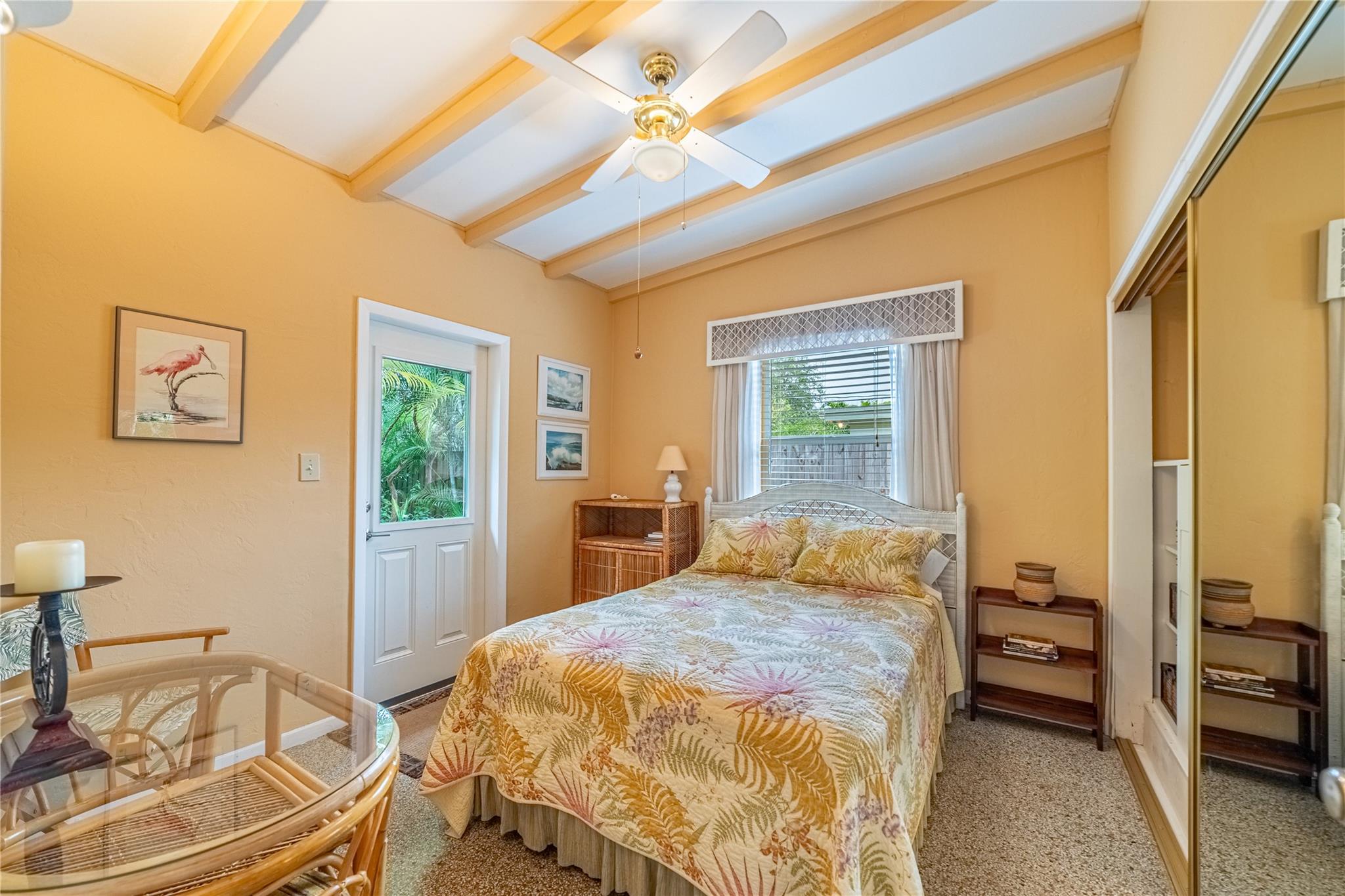 Enjoy Tranquil Gardens & Mid Century Character in this well maintained 2-bedroom 2 bath home in Sought after Shady Banks. Vaulted, Exposed Bean Ceilings, Fireplace, Separate Living, Dining & Family Room. Large Eat in Kitchen with Breakfast Bar. Built in workstation outside of the primary bedroom. Family room off the kitchen with large windows flooded with natural light. Enjoy morning coffee & afternoon cocktails on the screened porch overlooking the lush, mature landscaping. Partial Impact Windows /Doors.2022 roof, 357 sf garage -great workshop or vehicle storage. One way in/out, surrounded by the New River & no through traffic. Enjoy 2 parks with Tennis, Volleyball, Exercise Equipment & a nature preserve along the river with boardwalks, natural crest shoreline next to Safe Harbor Marine.