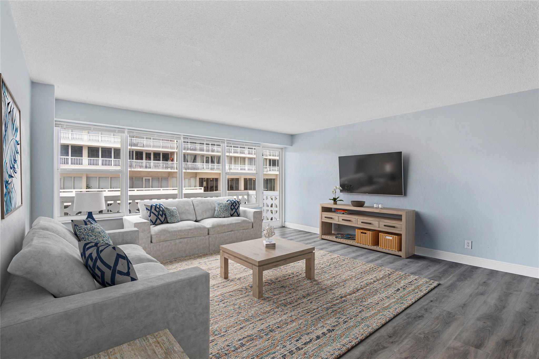 Enjoy this beachfront condo on the Galt Ocean mile without the steep price tag. This property features neutral laminate flooring throughout, matching paint, and window treatments. The kitchen has white appliances and granite countertops. The master bedroom offers a tub/shower combo and two full-size closets. Second bathroom has walk ni shower and updated vanities. Hurricane impact windows and doors throughout. Enjoy a spacious balcony perfect for entertaining guest or enjoying the ocean views and South Florida sunsets. Unit includes washer/dryer and tankless water heater. Building amenities: fitness center, clubhouse, grilling area, 24 hour security, on site management, heated pool, bike storage, and beach access. Walk to restaurants, grocery stores, places of worship, doctors, and more!