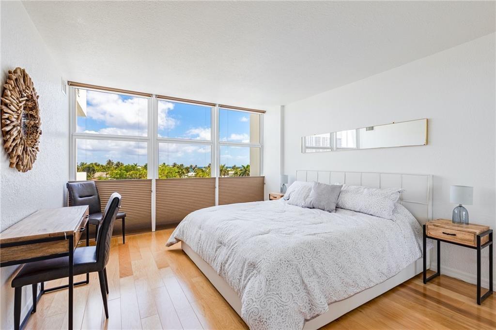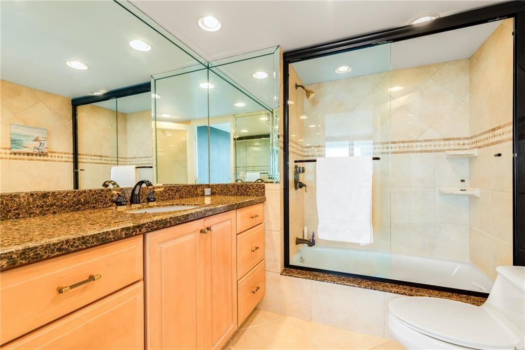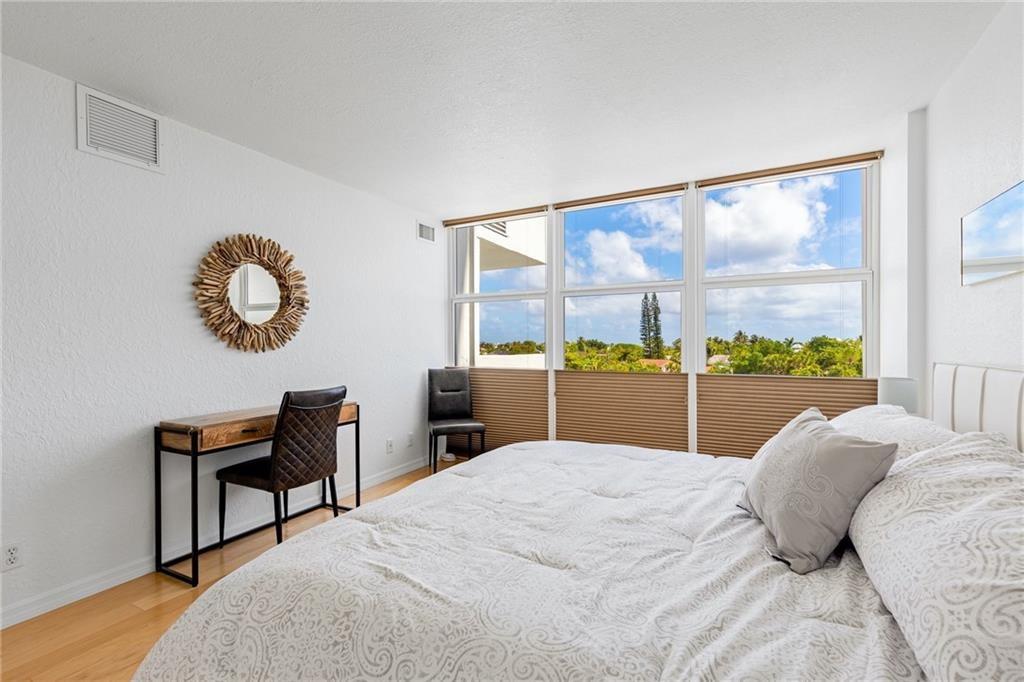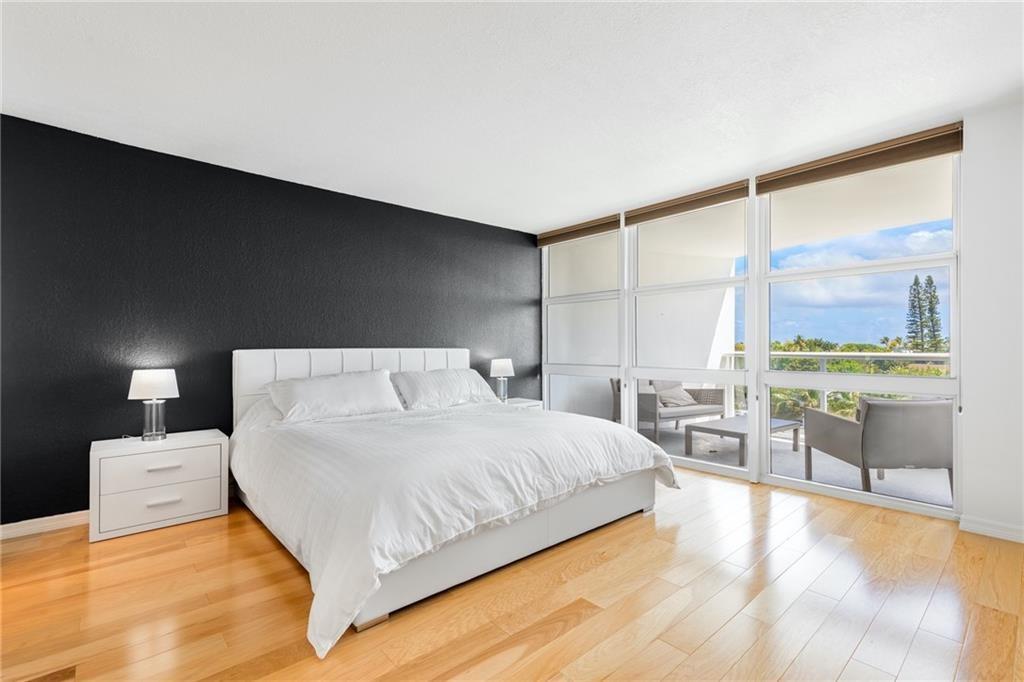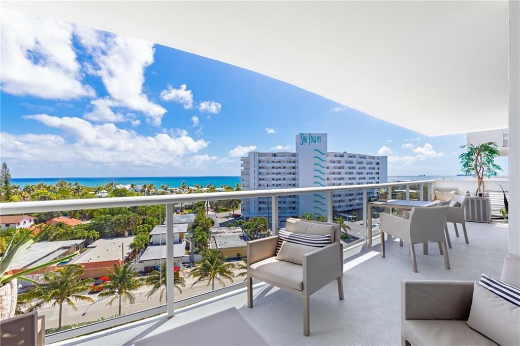 Updated 2 bedroom/2 bathroom split floor plan with beautiful views. Enjoy your morning coffee on the 31' balcony. Condo features a new open kitchen with quartz countertops & gray cabinets. Unit also has newer bathrooms, built in closets, impact windows & doors plus a washer/dryer. Storage unit, two parking Spaces (#57 & one outside) & plenty of guests spaces. Building has an amazing rooftop pool with panoramic views of ocean & ICW, a new gym, 24 hour guard in the lobby & is a super secure building. Short distance to restaurants, bars, shops and the beach. Condo fee includes basic cable, internet, water and exterior insurance.