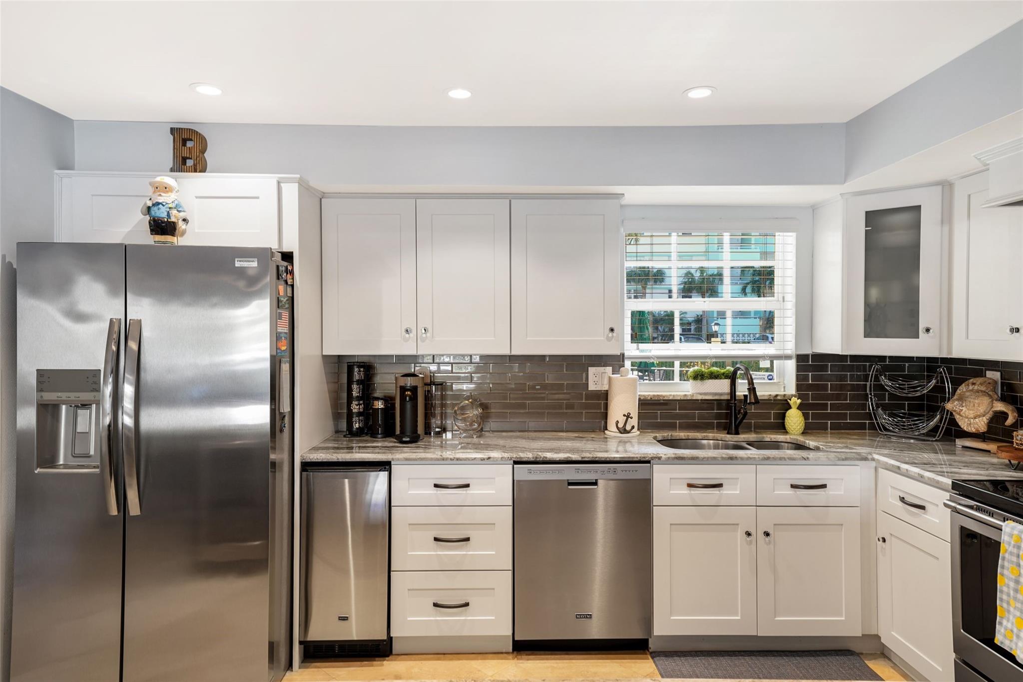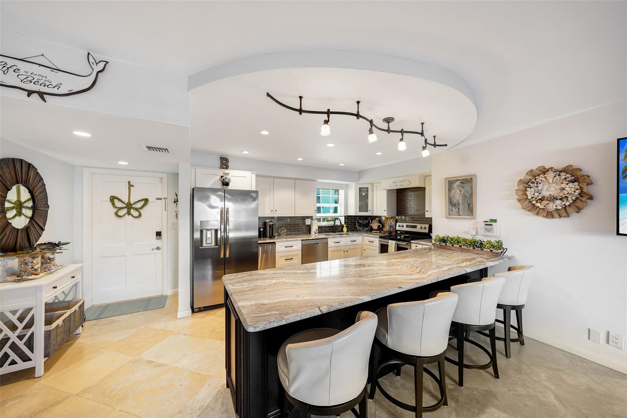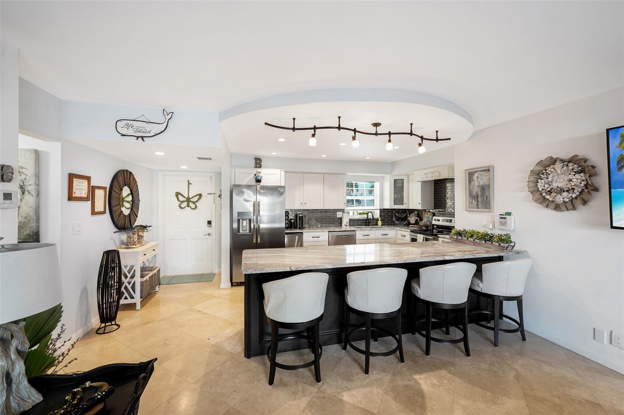 Welcome to your dream home in the heart of Fort Lauderdale. This newly remodeled 2 bedroom, 2 bathroom apartment offers intracoastal views and modern upgrades throughout. Inside you will find an open-concept living space with an updated kitchen, granite countertops, stainless steel appliances and a newly installed A/C unit. This home is equipped with seamless tile floors and impact windows allowing natural light and storm protection. This unit is steps away from the beach, fine dining and soon to be completed Publix grocery store.