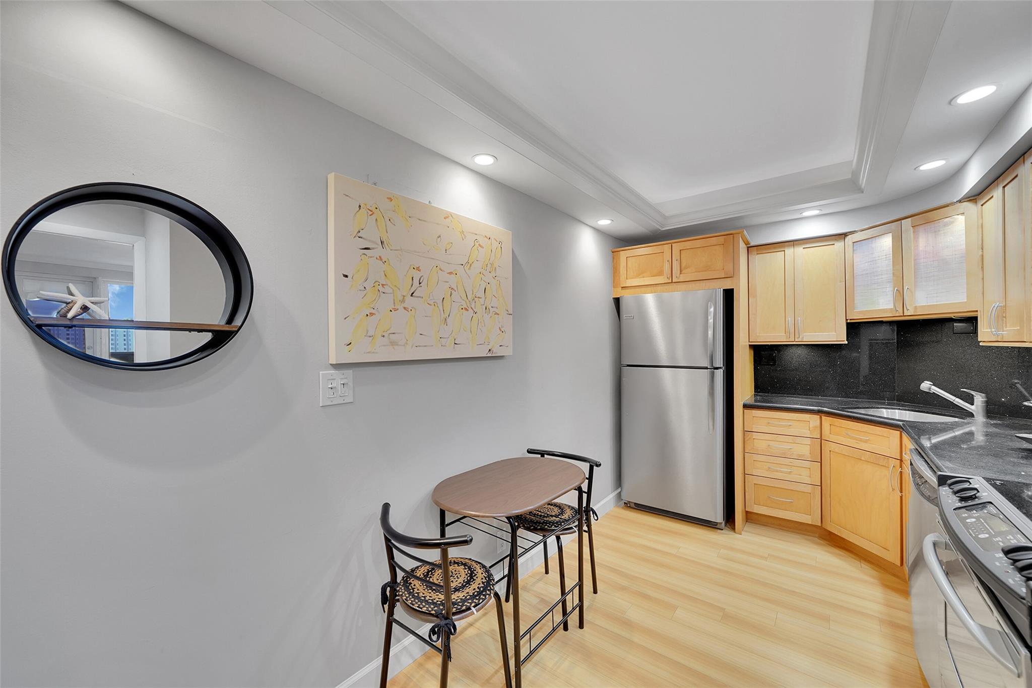 Beautifully Designed and Perfectly Located! Offering mesmerizing Intracoastal views and a front-row seat to the boat parade from your private balcony! Meticulously kept and it will spoil you for anything less! featuring quartz kitchen countertops, stainless steel appliances, Laminate Wood flooring, updated bathrooms, impact windows and doors. The primary suite is spacious and can accommodate large furniture, an amazing huge walkin closet that will wow you! Just a short walk to the beach and fine dining, and all that East Ft Lauderdale has to offer at your fingertips. This building is fully equipped with a Gym, heated pool, game room and full security! If your looking for Intracoastal views this is your STOP!! Don't miss this gem, call us today to see this beauty! Offered Furnished