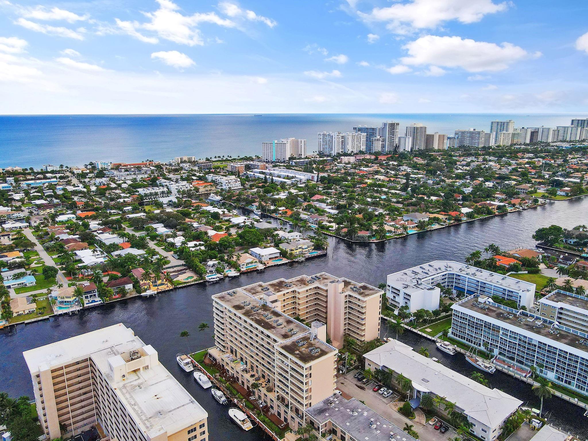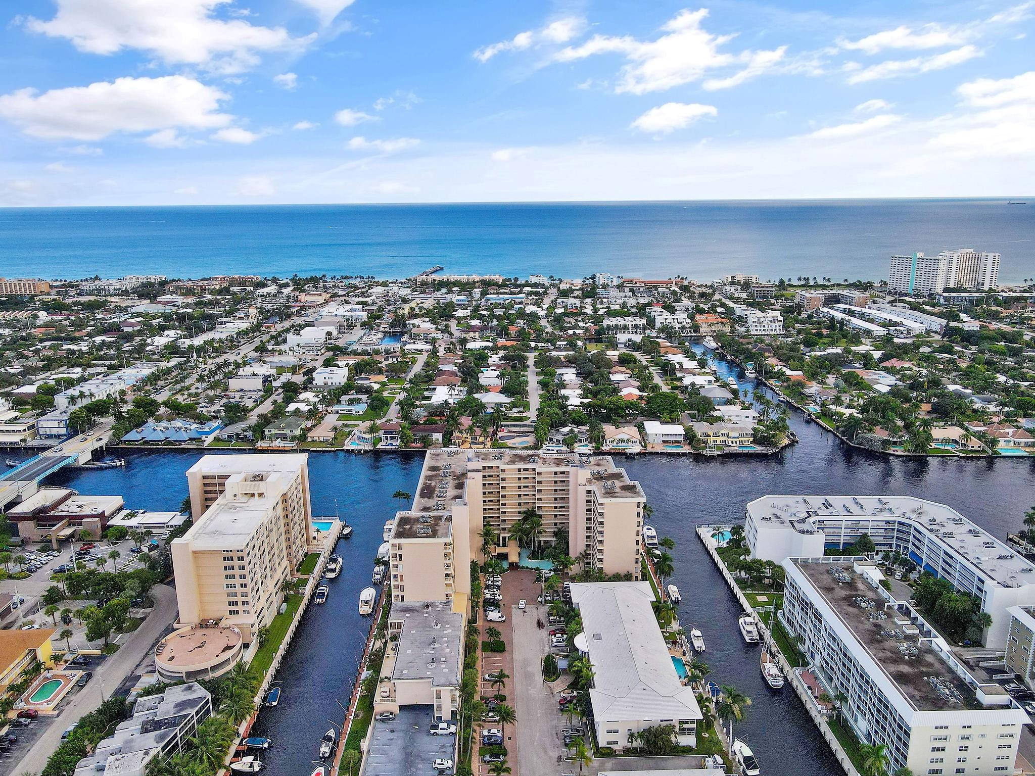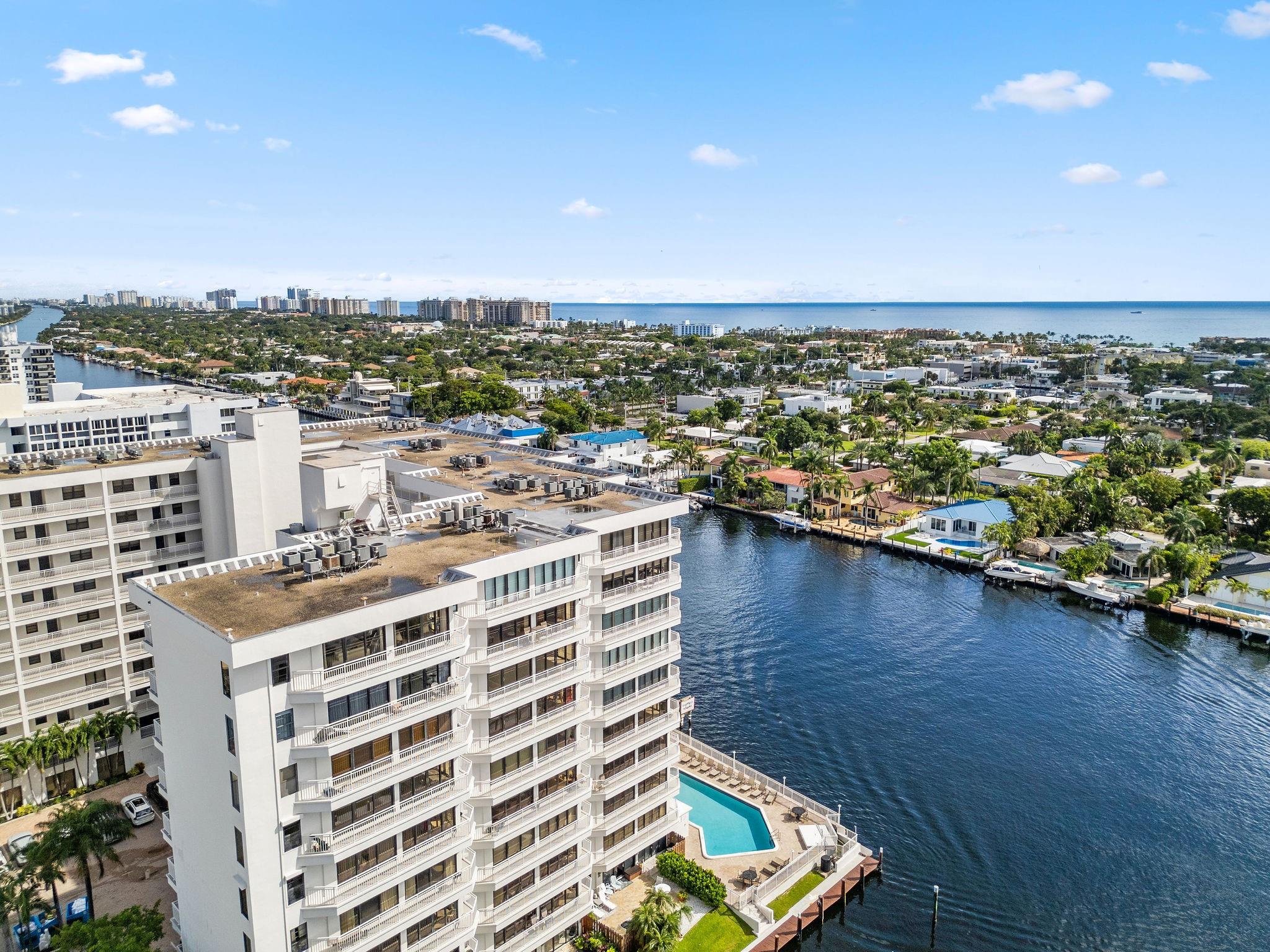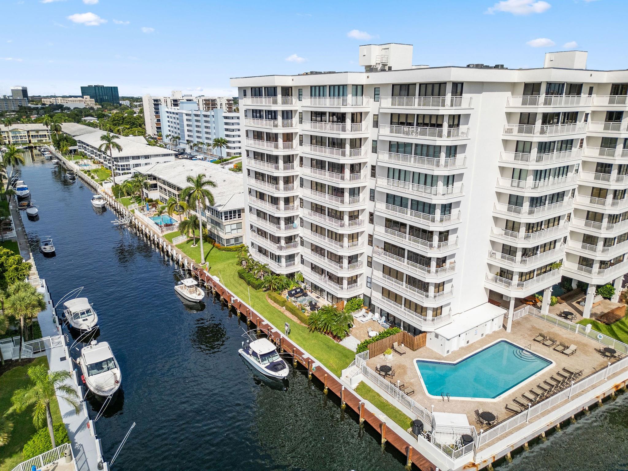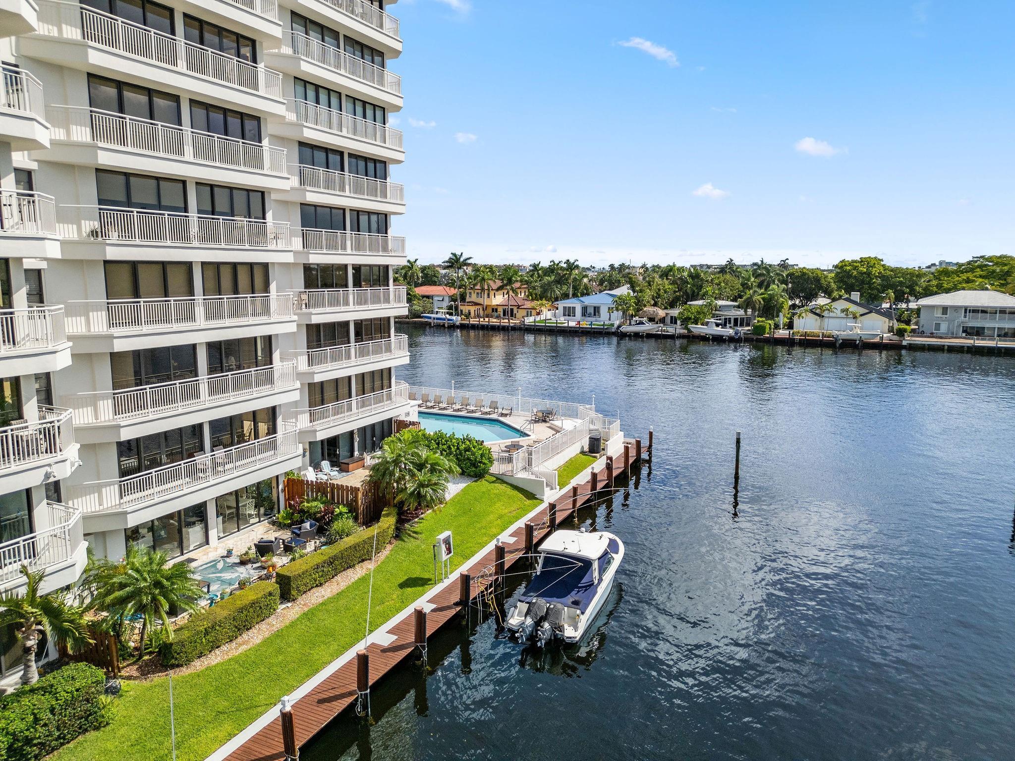 One condo off of the corner with amazing views of the intracoastal waterway at the Pilot House condo. The building has the best curb appeal of all of the condo buildings on the water off of Bayview Drive with wood decking over water features. The unit has all mpact windows and sliding doors that open to a private balcony with water views. Laundry in the unit. Small pets are welcome. The unit comes with garage parking. Common area boat dockage. This is a great value that won't last.