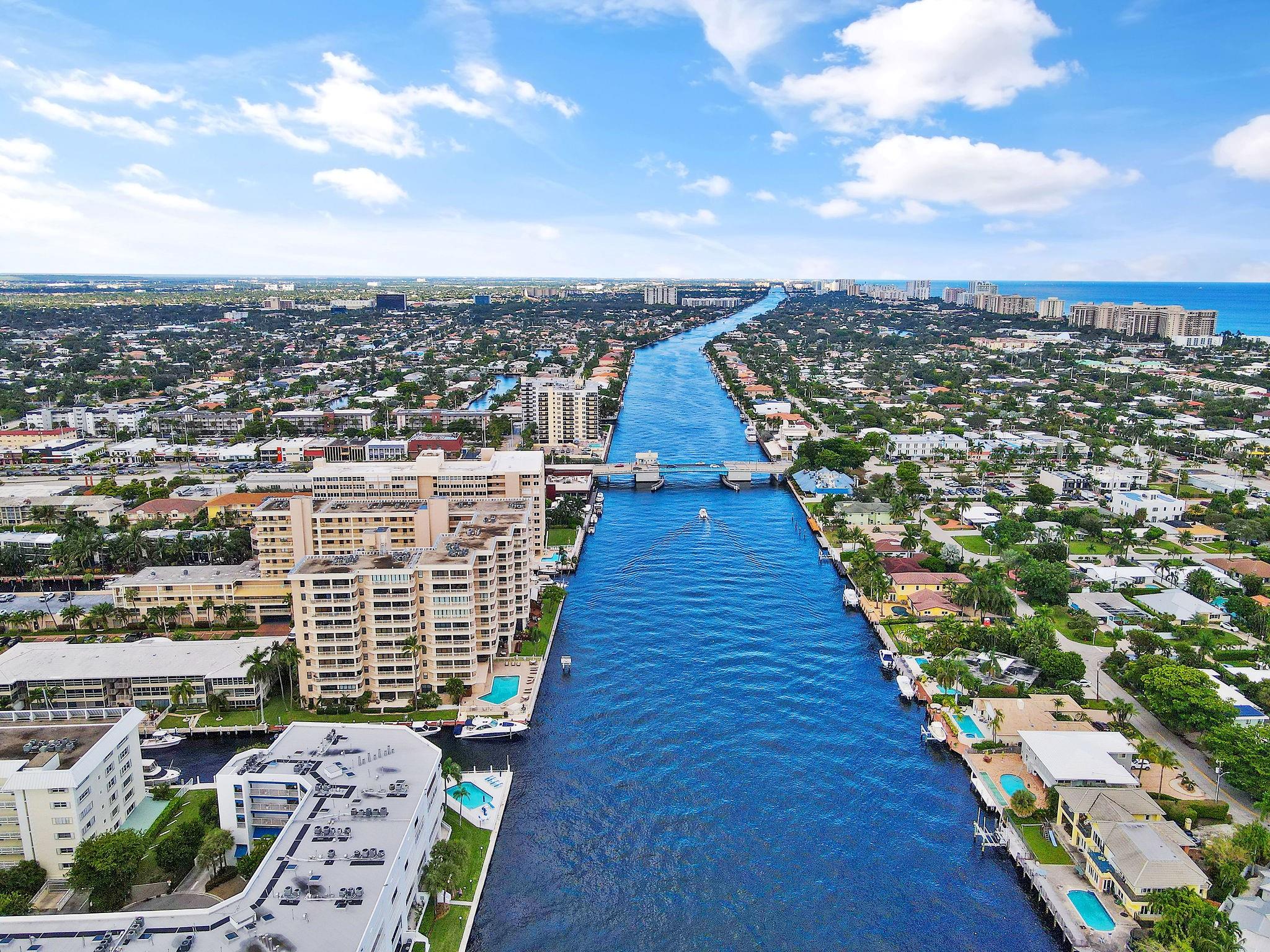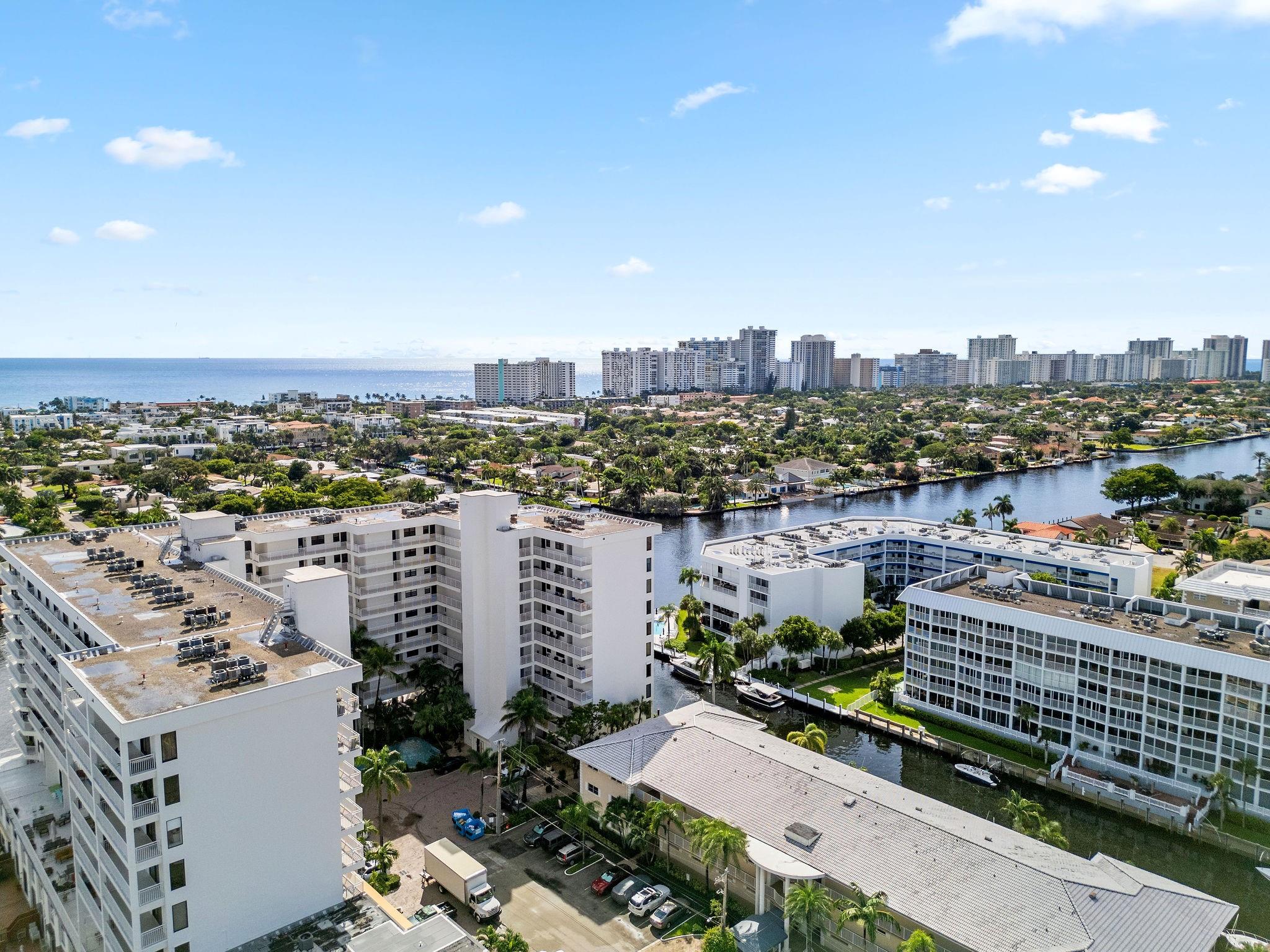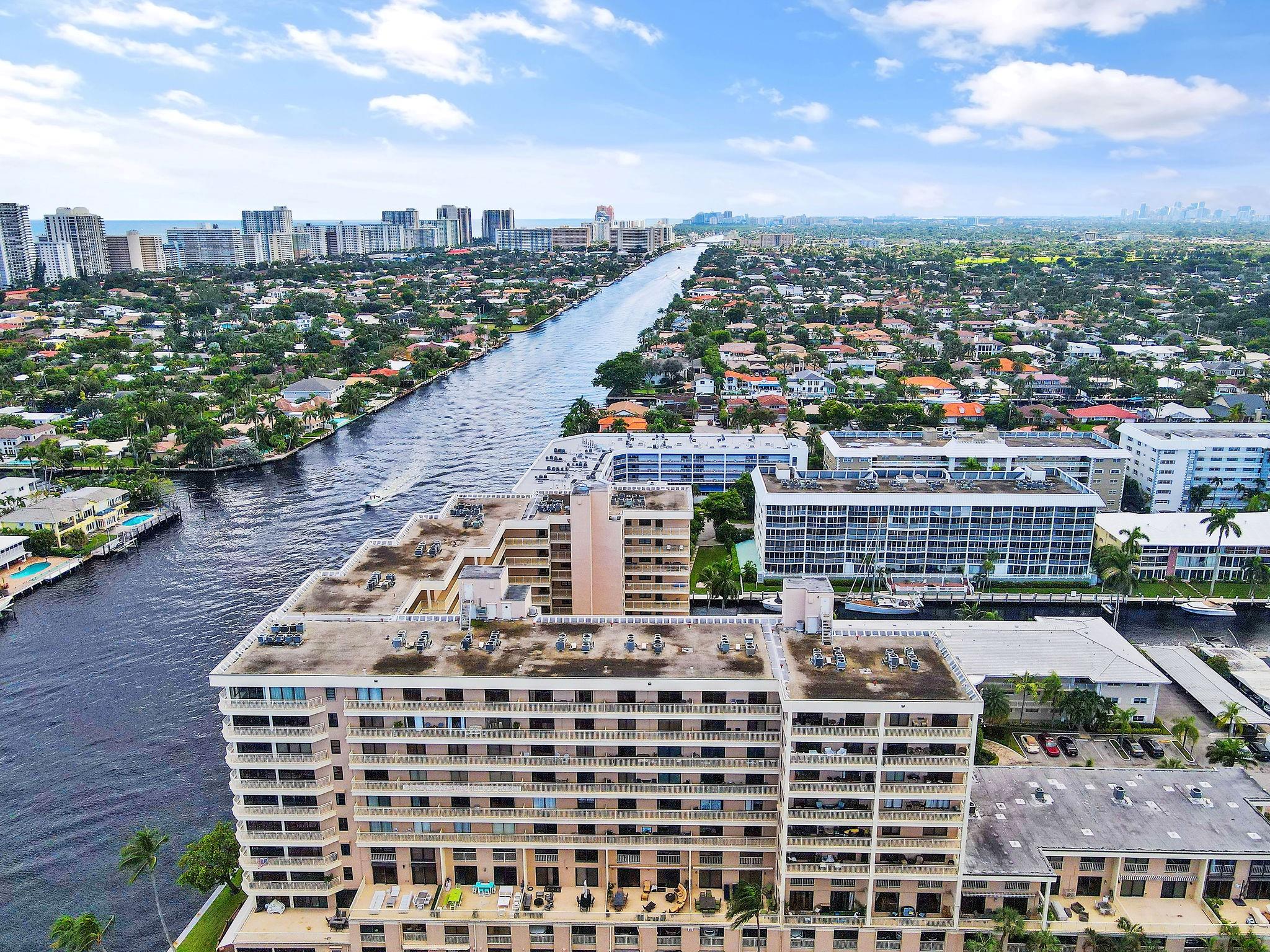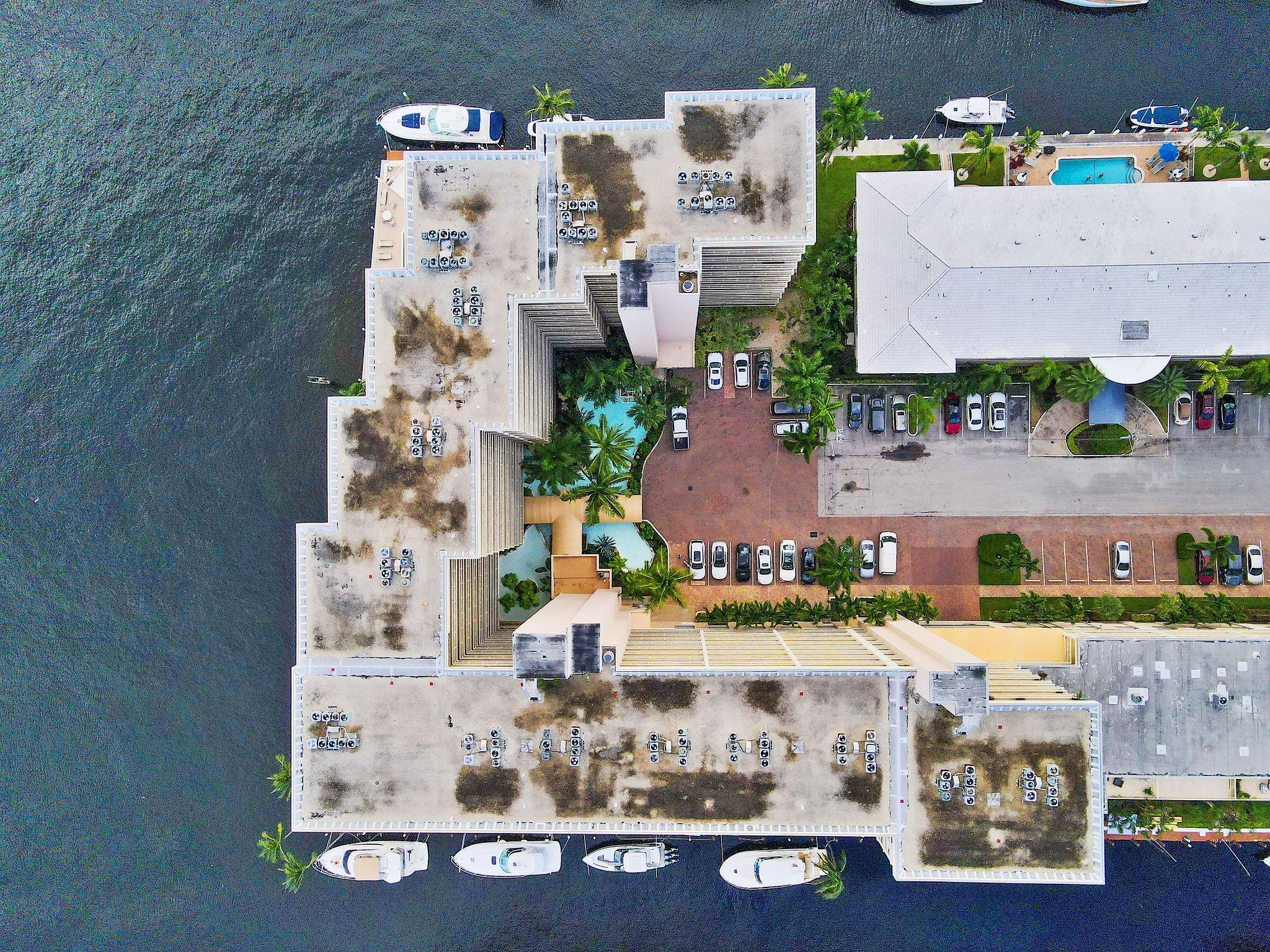 One condo off of the corner with amazing views of the intracoastal waterway at the Pilot House condo. The building has the best curb appeal of all of the condo buildings on the water off of Bayview Drive with wood decking over water features. The unit has all mpact windows and sliding doors that open to a private balcony with water views. Laundry in the unit. Small pets are welcome. The unit comes with garage parking. Common area boat dockage. This is a great value that won't last.