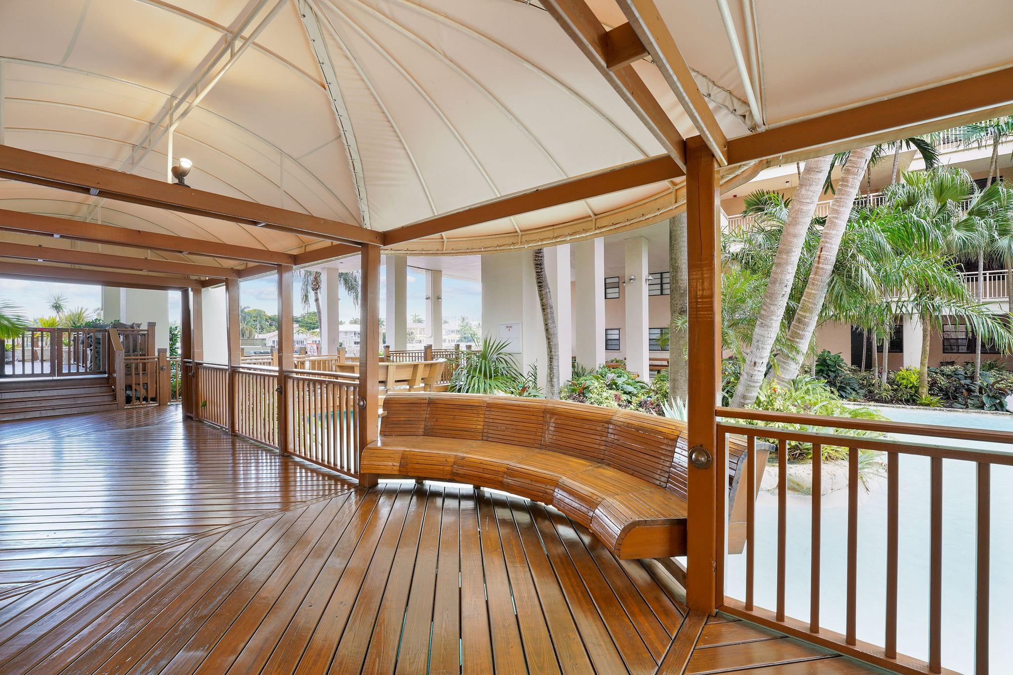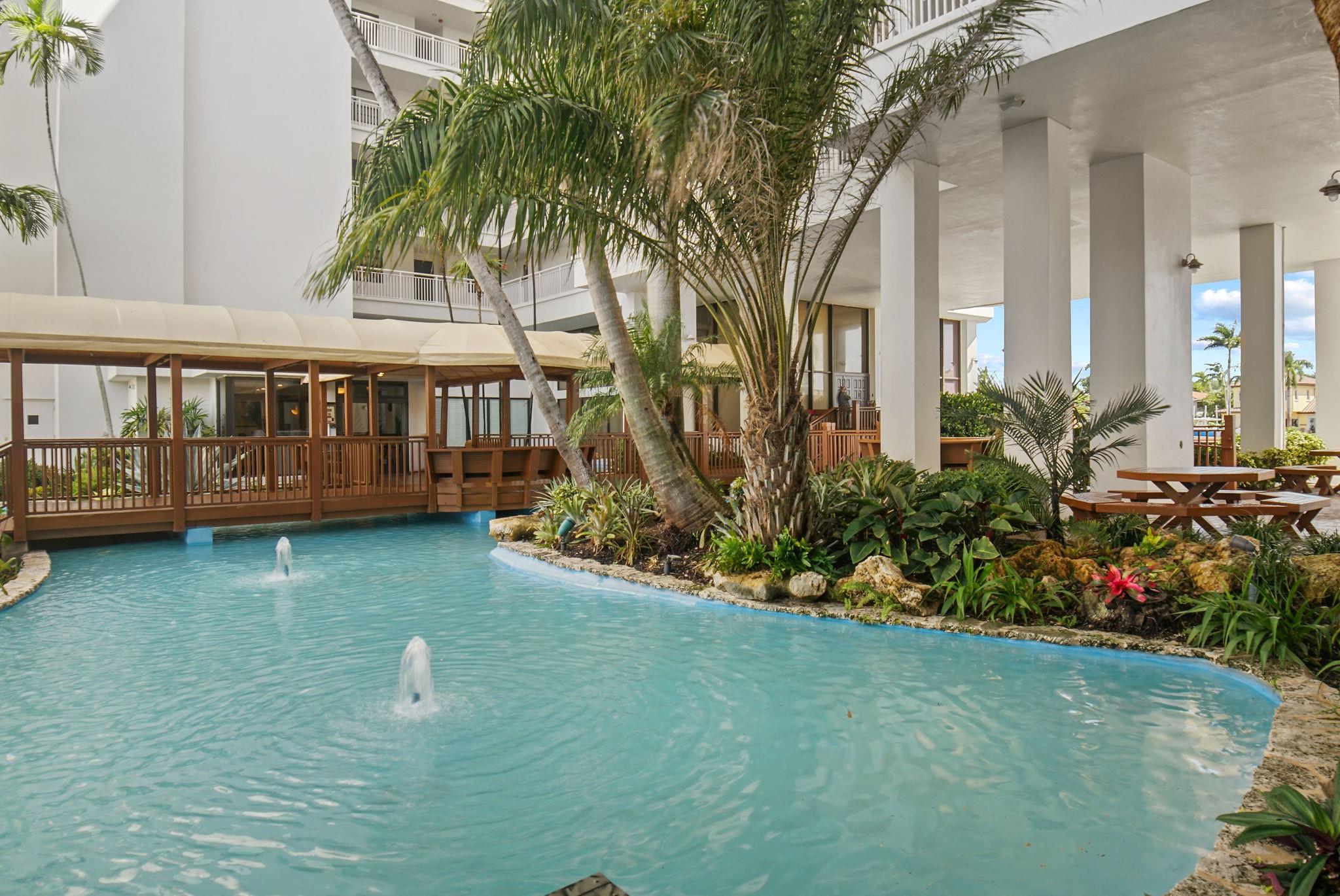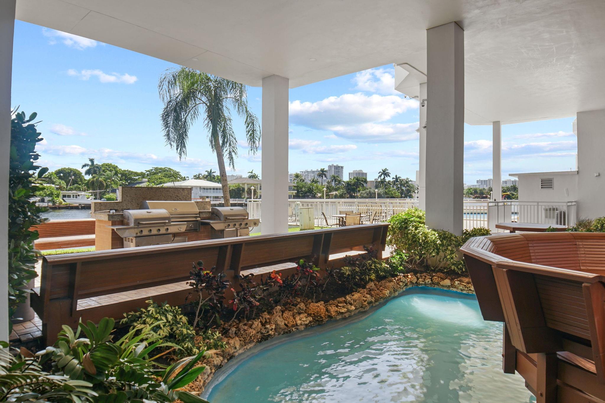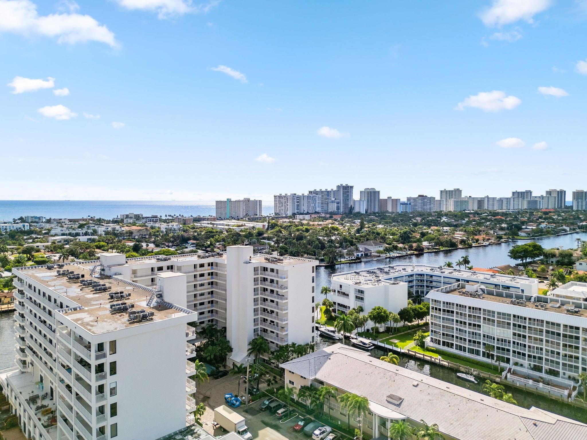 One condo off of the corner with amazing views of the intracoastal waterway at the Pilot House condo. The building has the best curb appeal of all of the condo buildings on the water off of Bayview Drive with wood decking over water features. The unit has all mpact windows and sliding doors that open to a private balcony with water views. Laundry in the unit. Small pets are welcome. The unit comes with garage parking. Common area boat dockage. This is a great value that won't last.