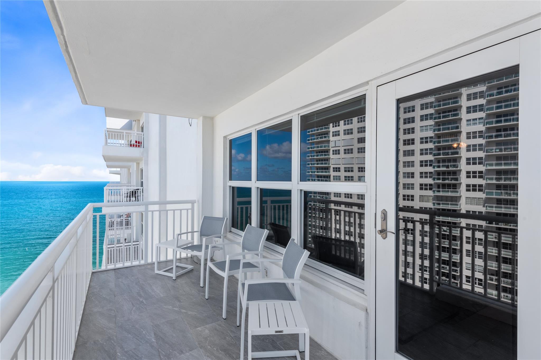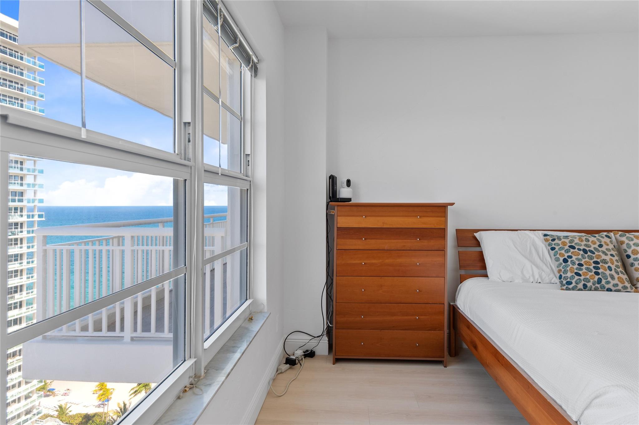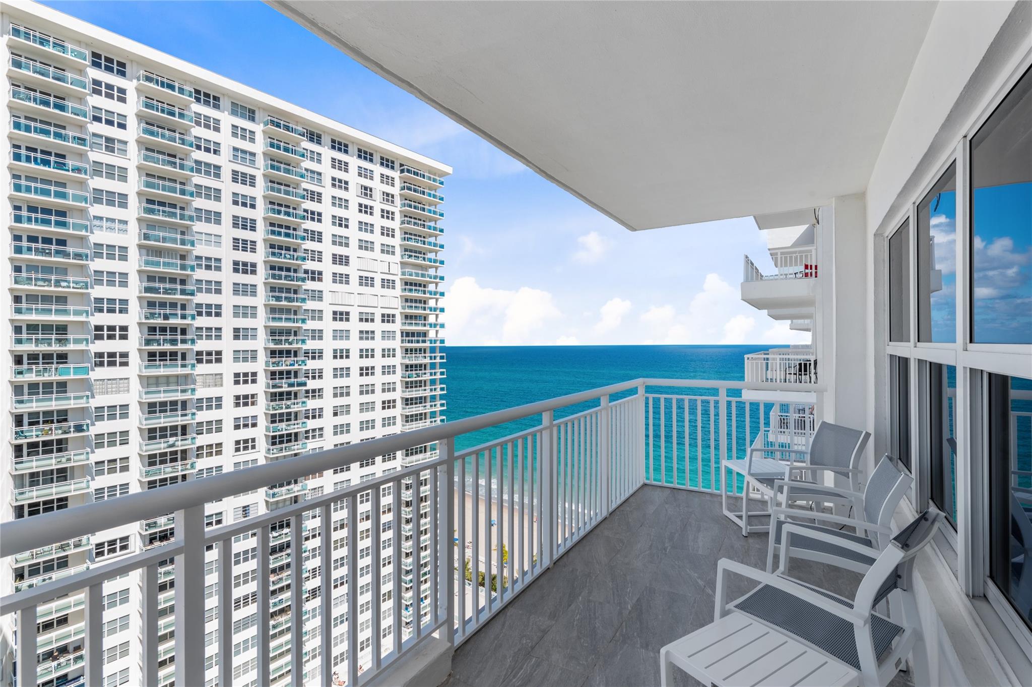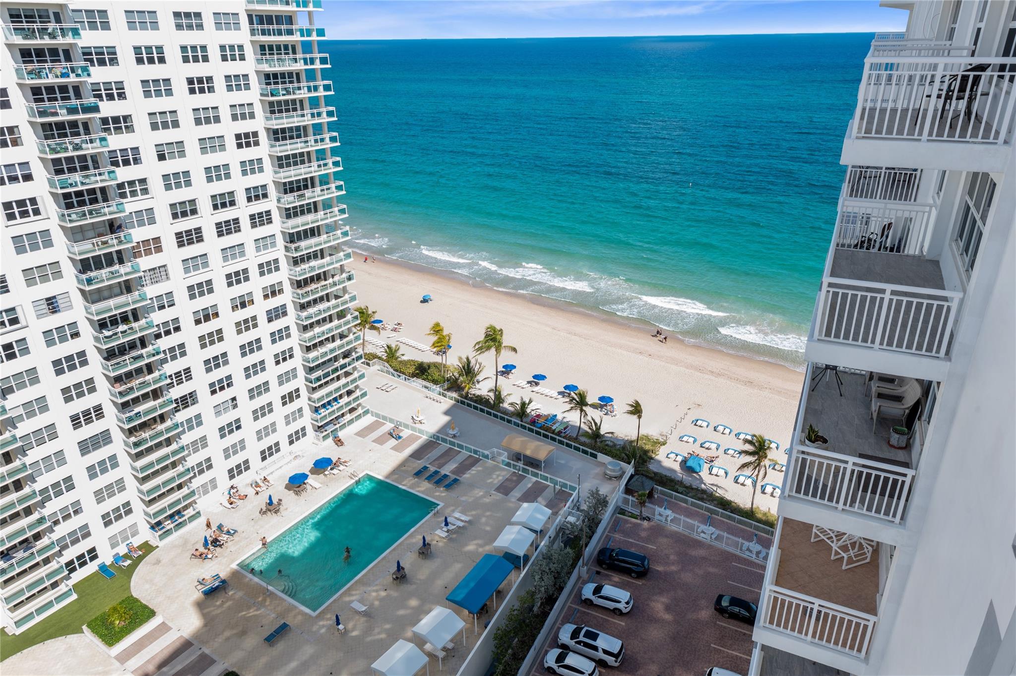 This 19th-floor beachfront condominium bestows beautiful ocean & Intracoastal views to the lucky owner! Sand-colored laminate floors create a seamless palate in this one-bedroom northside unit. Decorated in high-end contemporary furnishings that are included in the sales price. The recessed lighting, light tile backsplash w/ matching granite countertops, & all new stainless-steel appliances, a light & airy kitchen. Large balcony perfect to enjoy the South Florida sunrises & sunsets. Unit is immaculate & ready for move in. Ample free unassigned outdoor parking. High-speed WiFi, enhanced cable, water, sewer, trash removal, & interior pest control included w/the maintenance fee. Regency Tower has chairs and umbrellas on the beach for residents, a great fitness center, a game room, & more.
