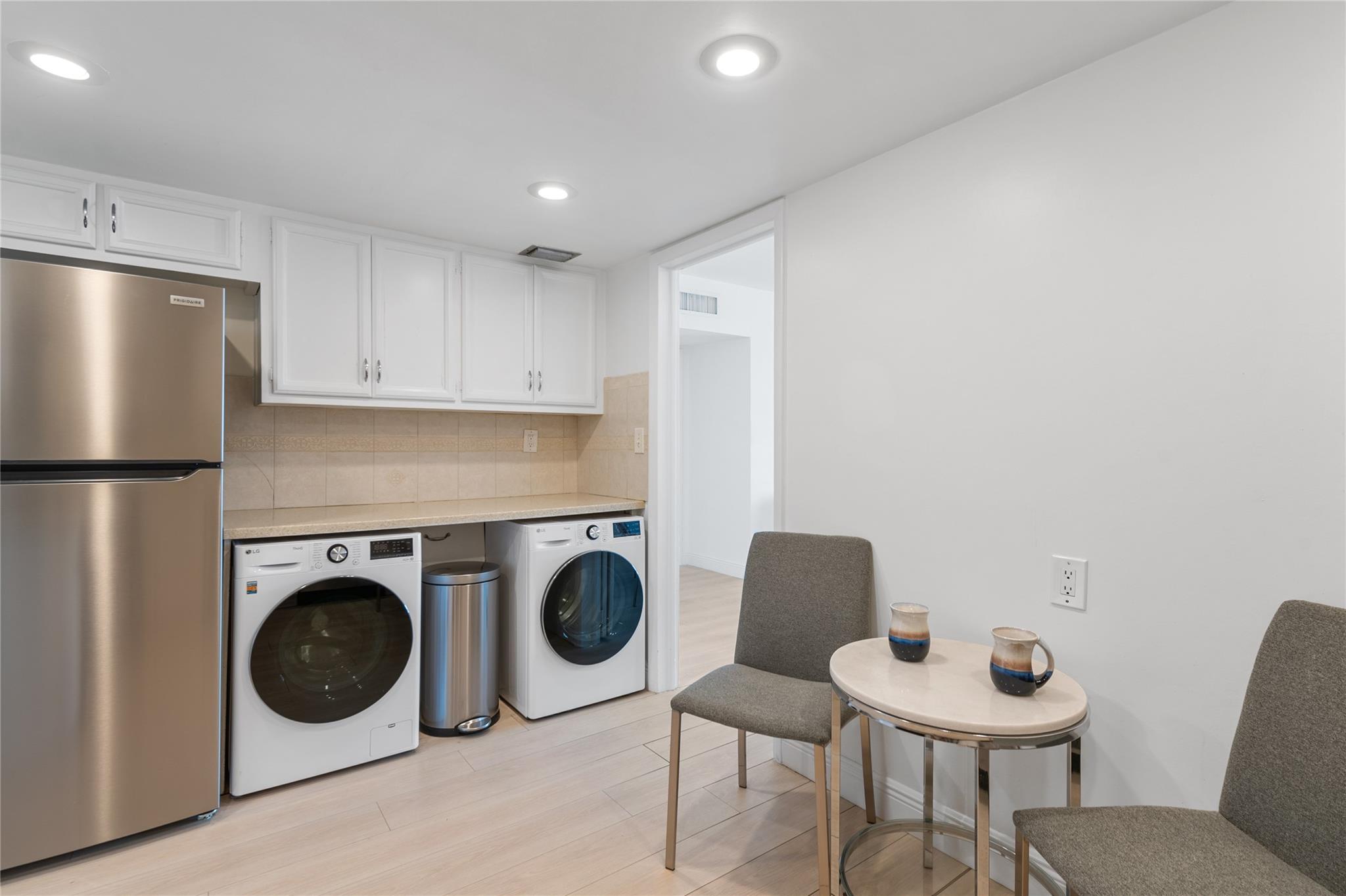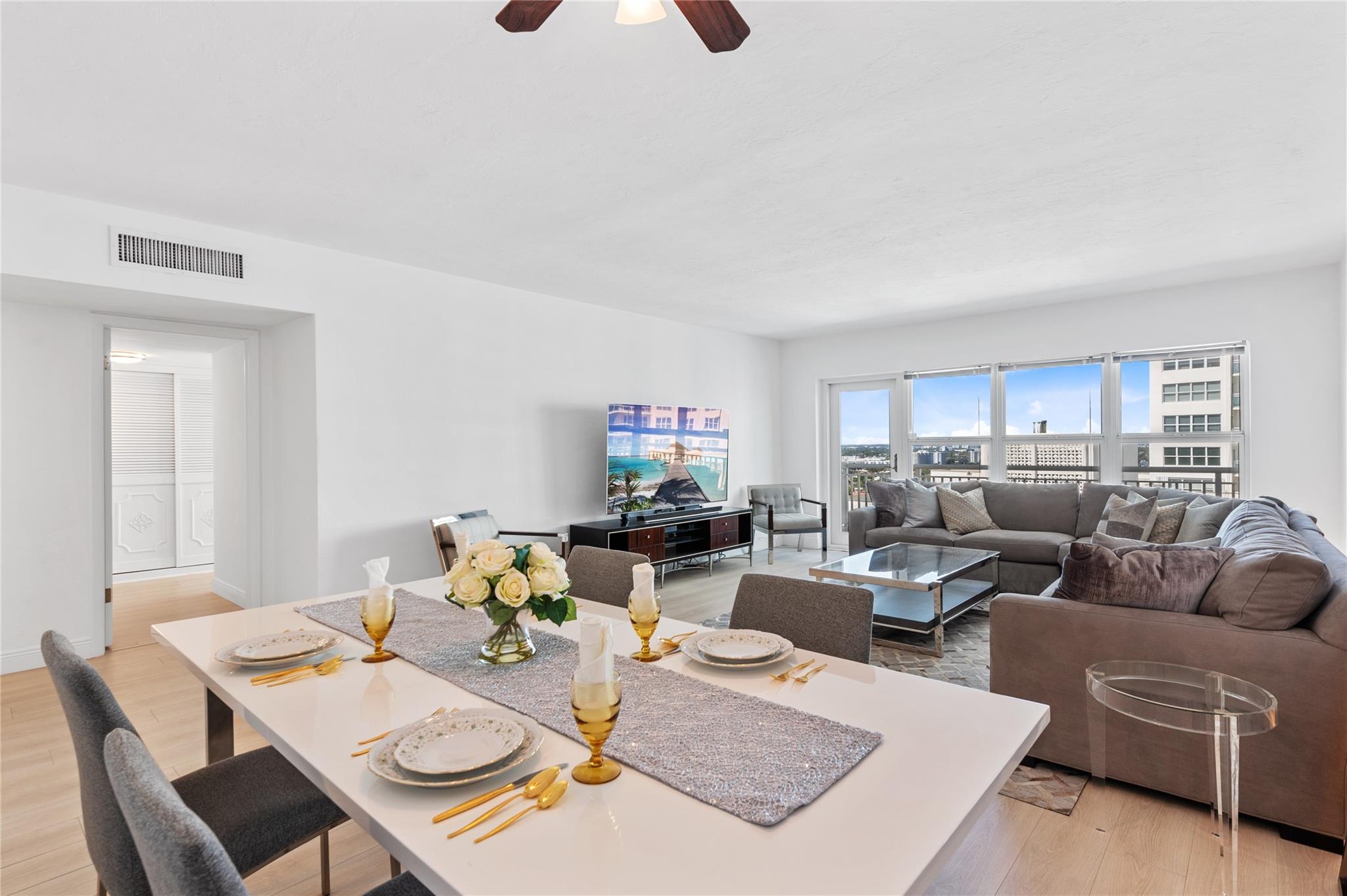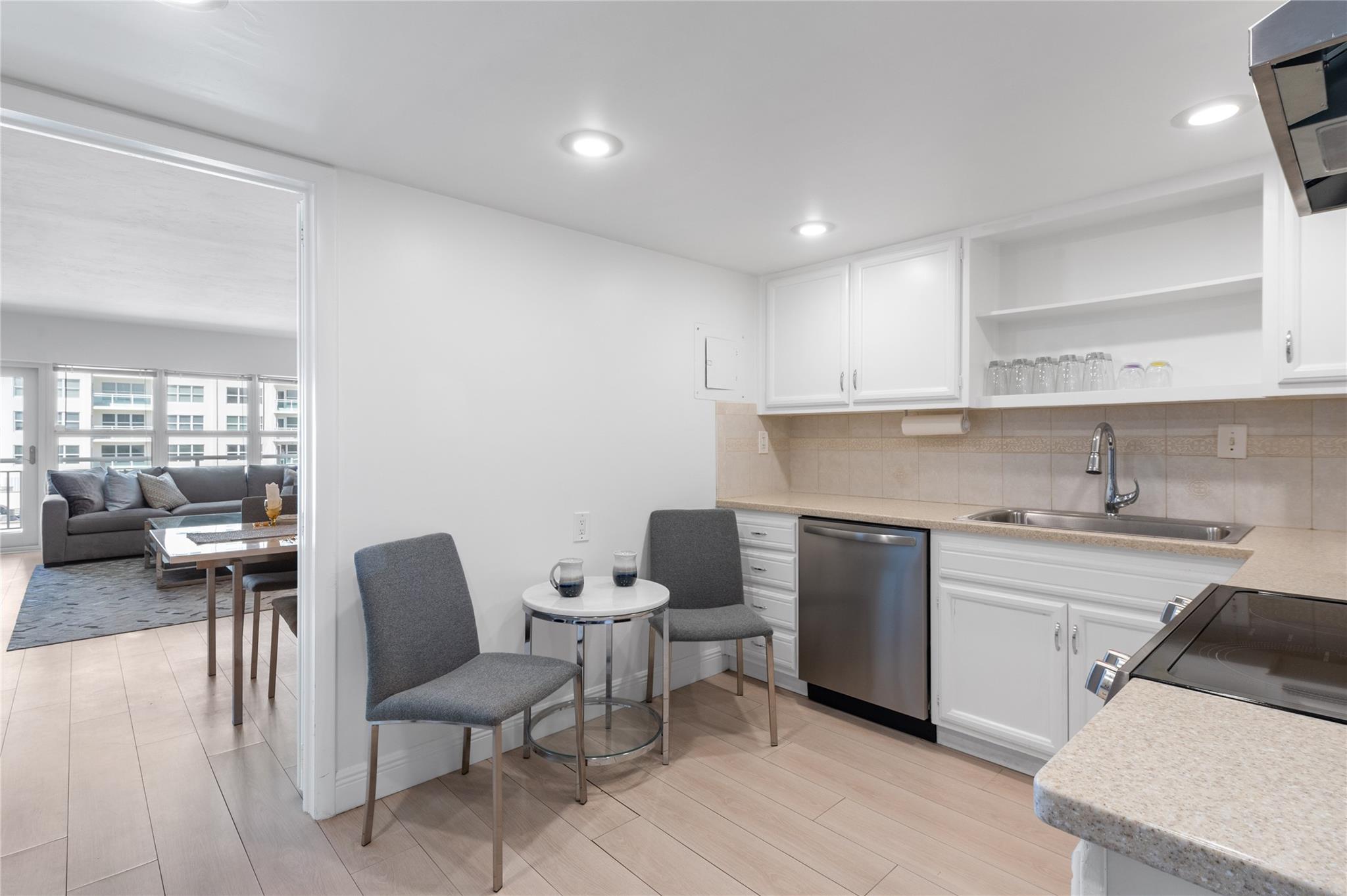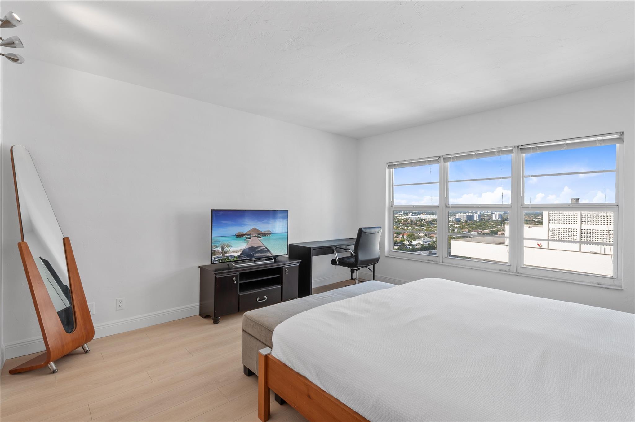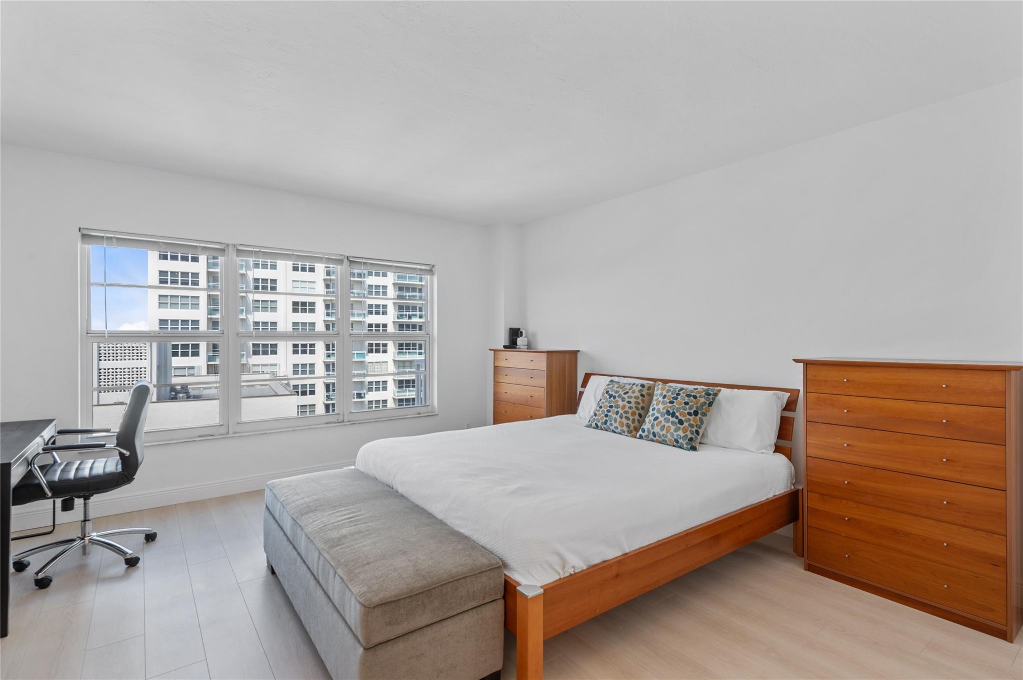 This 19th-floor beachfront condominium bestows beautiful ocean & Intracoastal views to the lucky owner! Sand-colored laminate floors create a seamless palate in this one-bedroom northside unit. Decorated in high-end contemporary furnishings that are included in the sales price. The recessed lighting, light tile backsplash w/ matching granite countertops, & all new stainless-steel appliances, a light & airy kitchen. Large balcony perfect to enjoy the South Florida sunrises & sunsets. Unit is immaculate & ready for move in. Ample free unassigned outdoor parking. High-speed WiFi, enhanced cable, water, sewer, trash removal, & interior pest control included w/the maintenance fee. Regency Tower has chairs and umbrellas on the beach for residents, a great fitness center, a game room, & more.