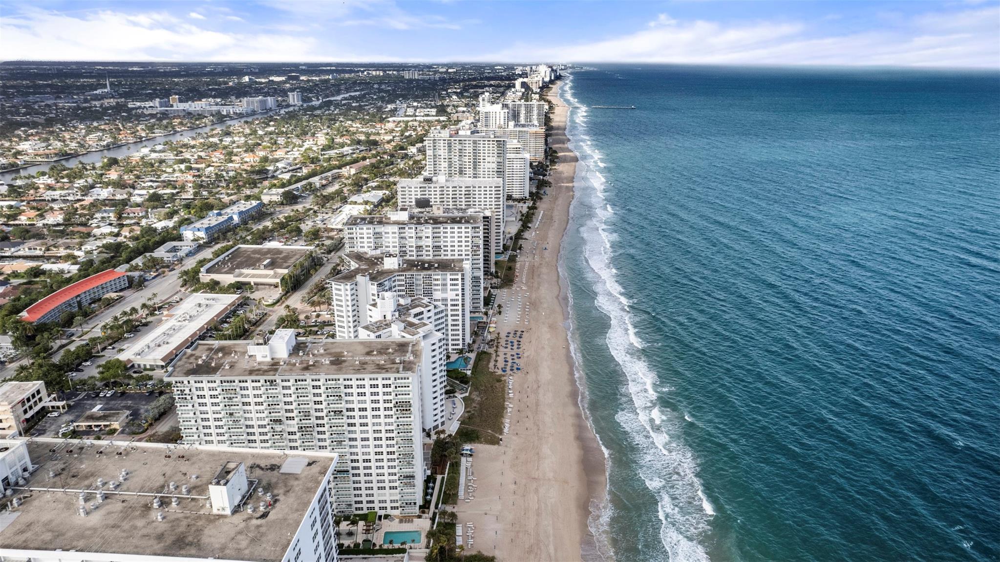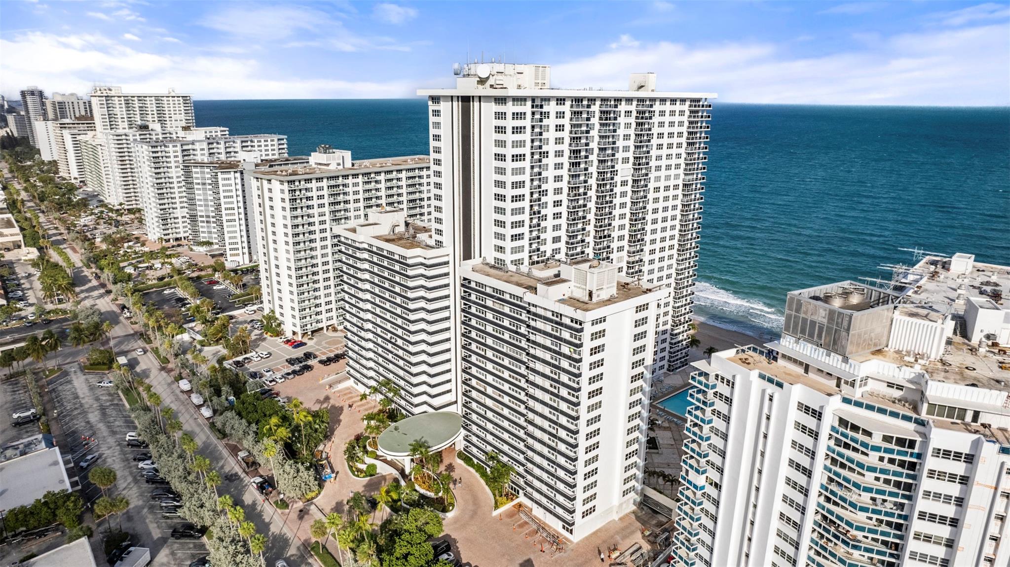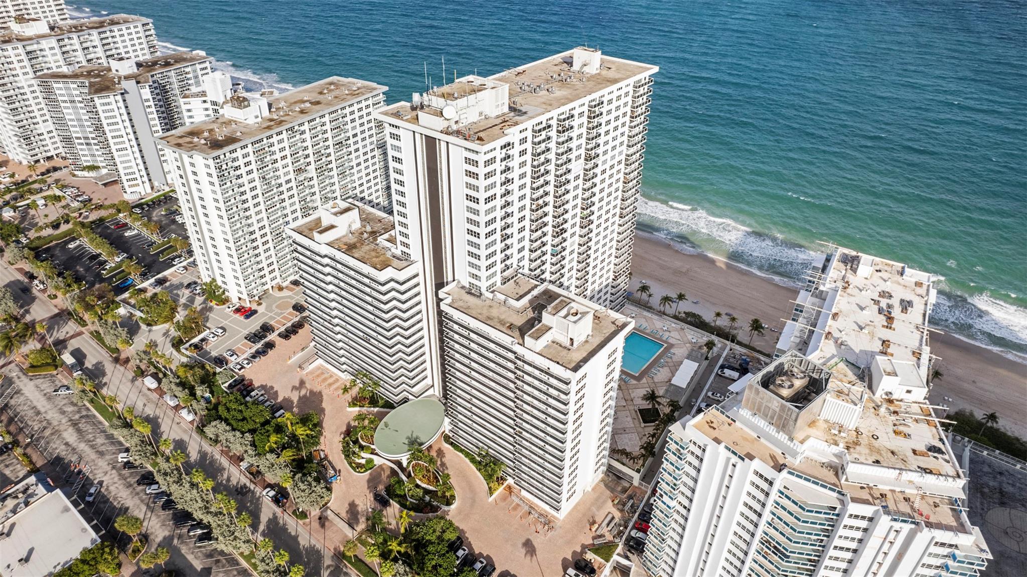 This beautifully maintained 1-bedroom, 1.5-bathroom condominium is located directly on Fort Lauderdale Beach and offers stunning city views. The spacious bedroom can easily accommodate two queen-sized beds and features a walk-in closet for ample storage. The unit also boasts an eat-in kitchen, a dedicated dining area, and extra storage on the same floor. Enjoy your morning coffee on your expansive balcony. This condo is in excellent condition and includes a washer and dryer in unit. New A/C. Lobby and commons areas have been recently renovated. Deeded parking spot in the garage. Amenities include front desk, direct beach access, a heated pool, two fitness rooms, community room, and game rooms. All assessments have been paid in full. Building completed their 40 year certification.