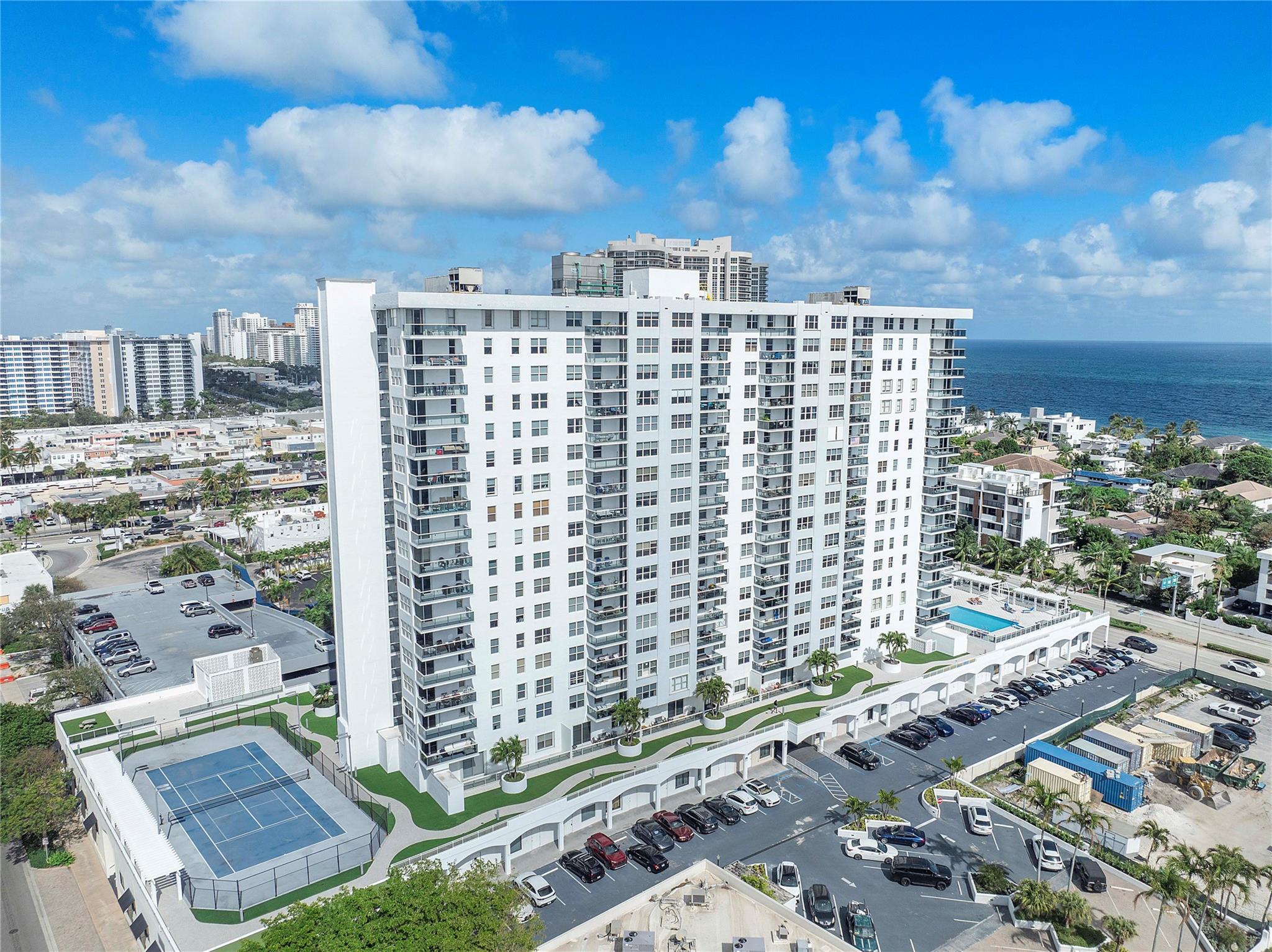 Expansive sunny SW CORNER 2BR/2BA condo in the most desirable Fort Lauderdale Beach location! Enjoy a sundrenched balcony all day with bright city skyline views at night! NEW FULL WRAP-AROUND GLASS BALCONY. Exceptionally large rooms. Lots of walk-in closets, huge pantry, & storage. The bright sunny floor plan showcases white refinished tile flooring throughout, no popcorn ceilings, and newer bathrooms. The spacious eat-in kitchen has stainless steel appliances and a window with a view above the kitchen sink, bringing in natural light. Largest floor plan in the building. HURRICANE IMPACT GLASS! NO W/D ALLOWED INSIDE UNIT. Laundry & extra storage on every floor. GARAGE PARKING. Heated infinity pool, tennis, fitness, bocce ct., 24hr concierge, 2 pets up to 20#. Financially stable bldg w/Res.