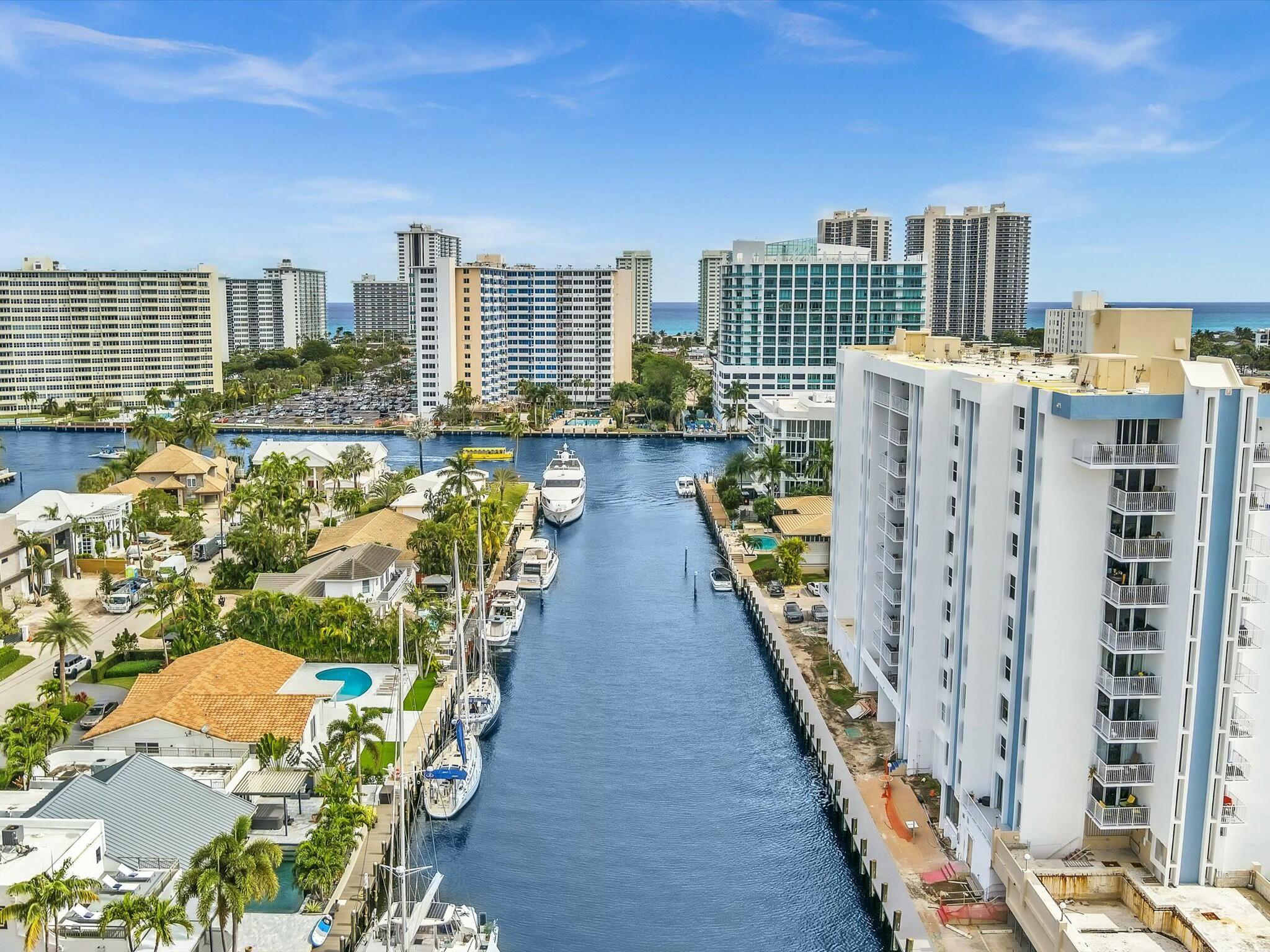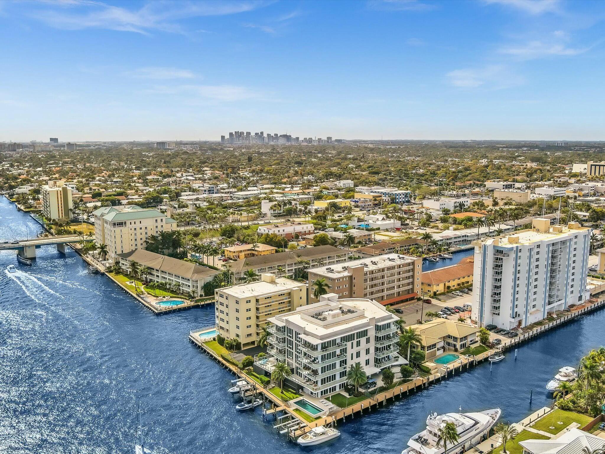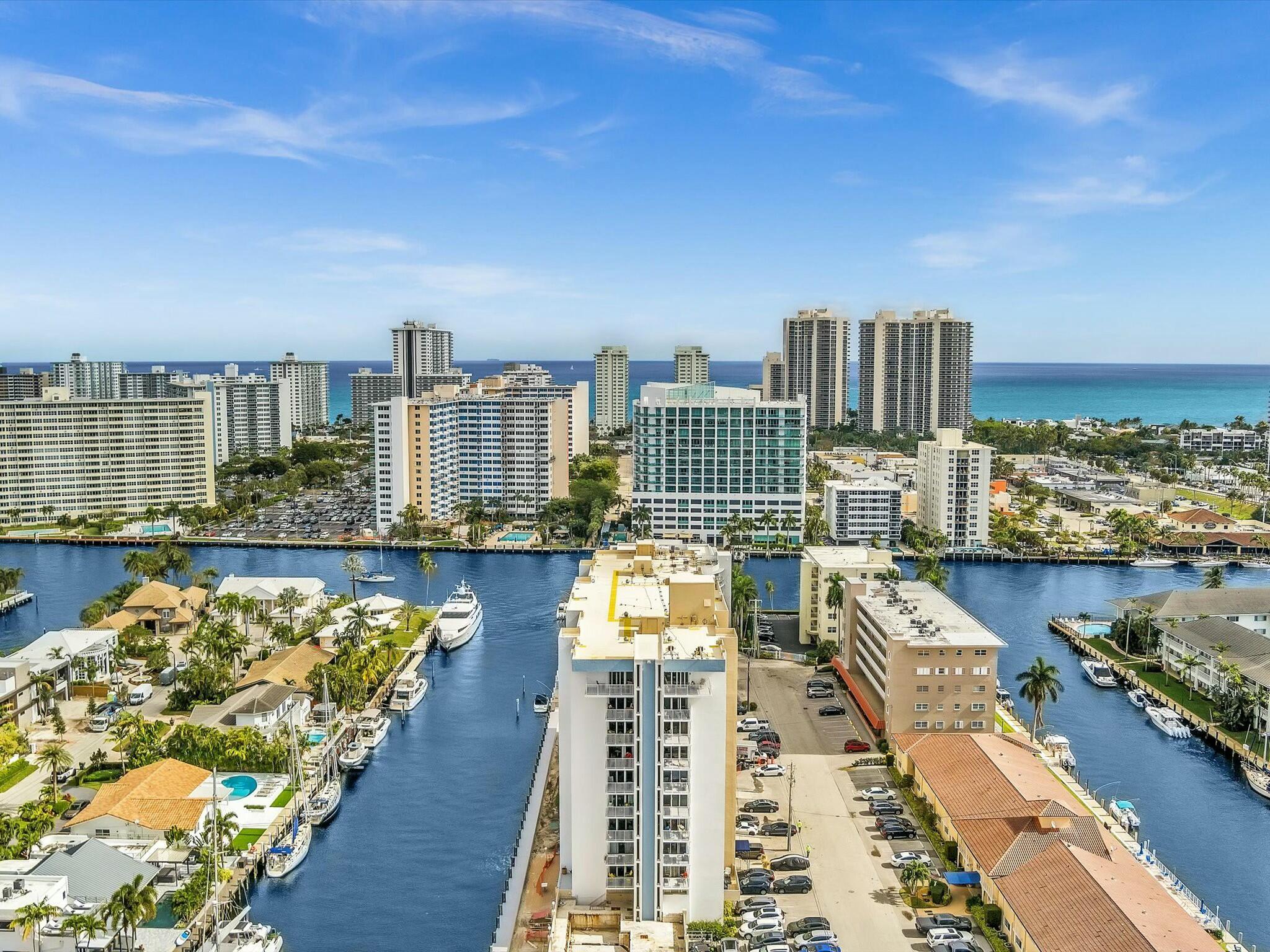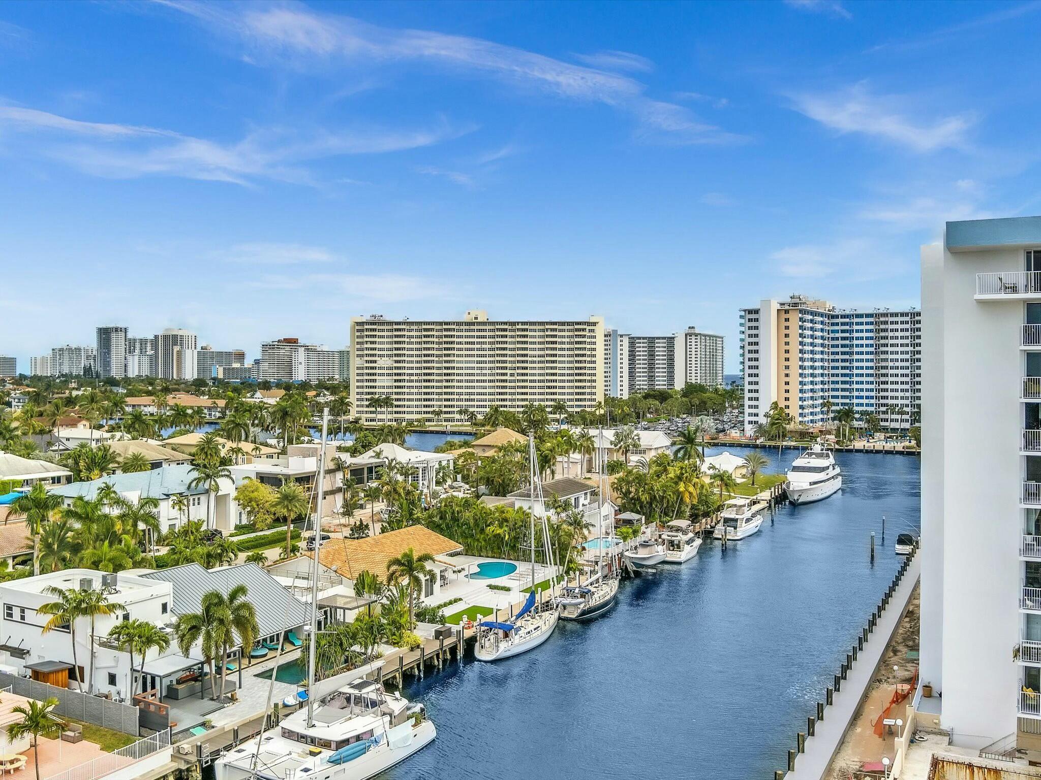 This spacious 2-bedroom, 2-bathroom condo boasts stunning views of the Intracoastal Waterway and Ft Lauderdale. With 1,250 square feet, the renovated kitchen features stainless steel appliances, granite countertops, and recessed lighting, flowing into a bright living area ideal for entertaining. Both bedrooms offer ample closet space, and the updated bathrooms add a modern touch. Enjoy the convenience of shared laundry on each floor and tandem parking for two cars. Walk to the beach and fine dining, and take advantage of the community boat dock; leasable to owners for vessels up to 35 feet. Recent hallway renovations enhance the inviting ambiance. The HOA includes cable, internet, water, and maintenance. Sellers have paid the HOA assessment in full! Don't miss this fantastic opportunity!