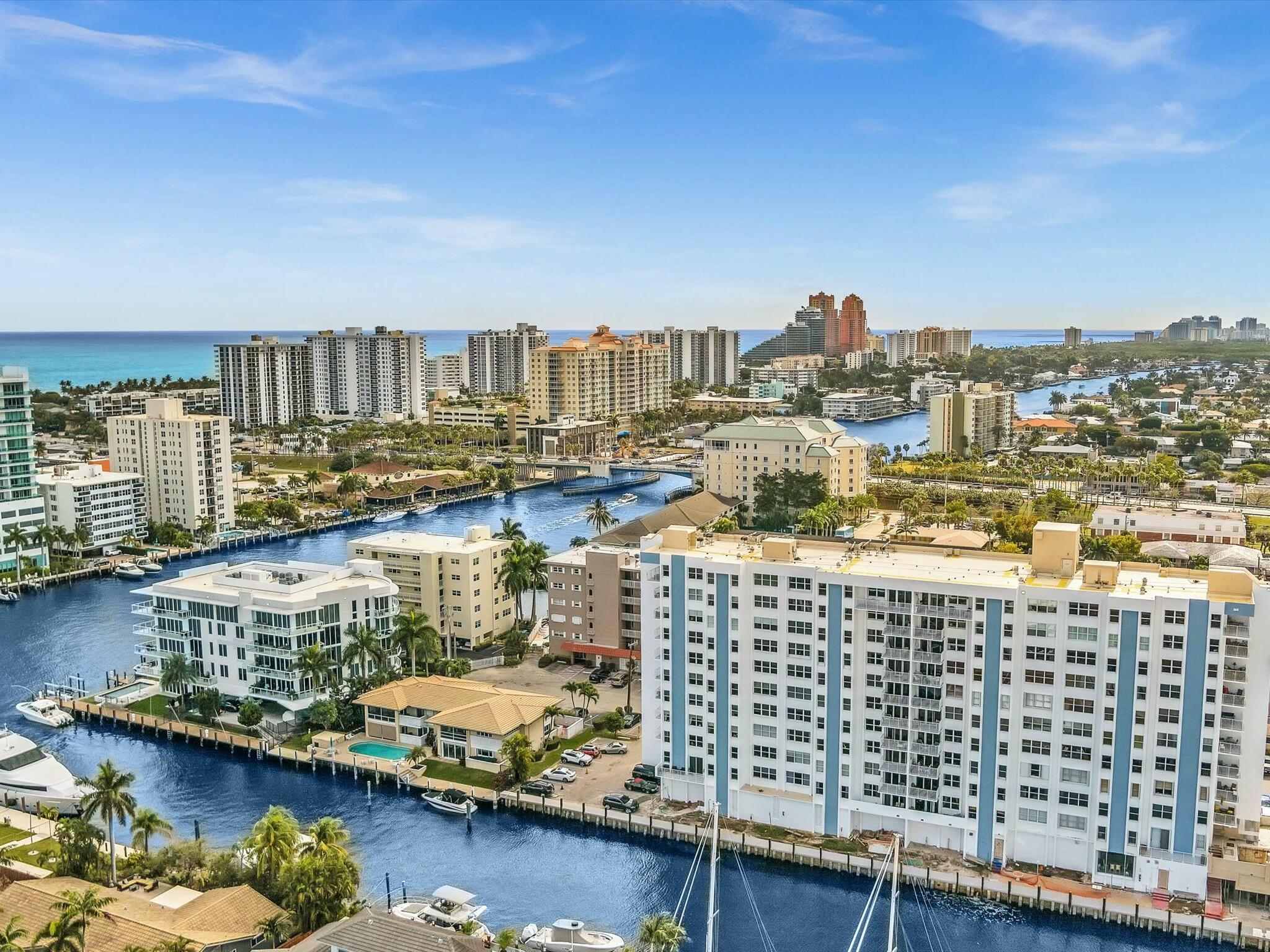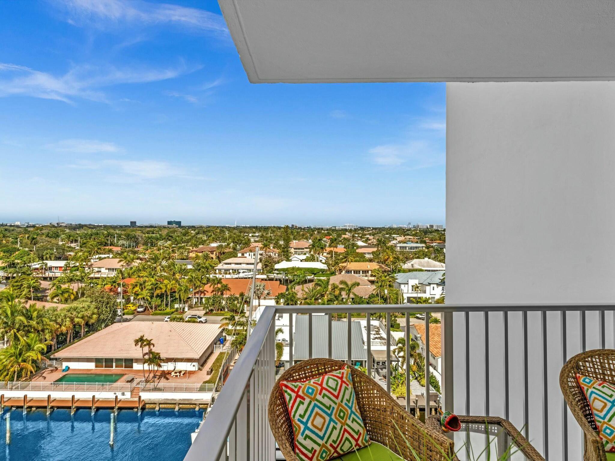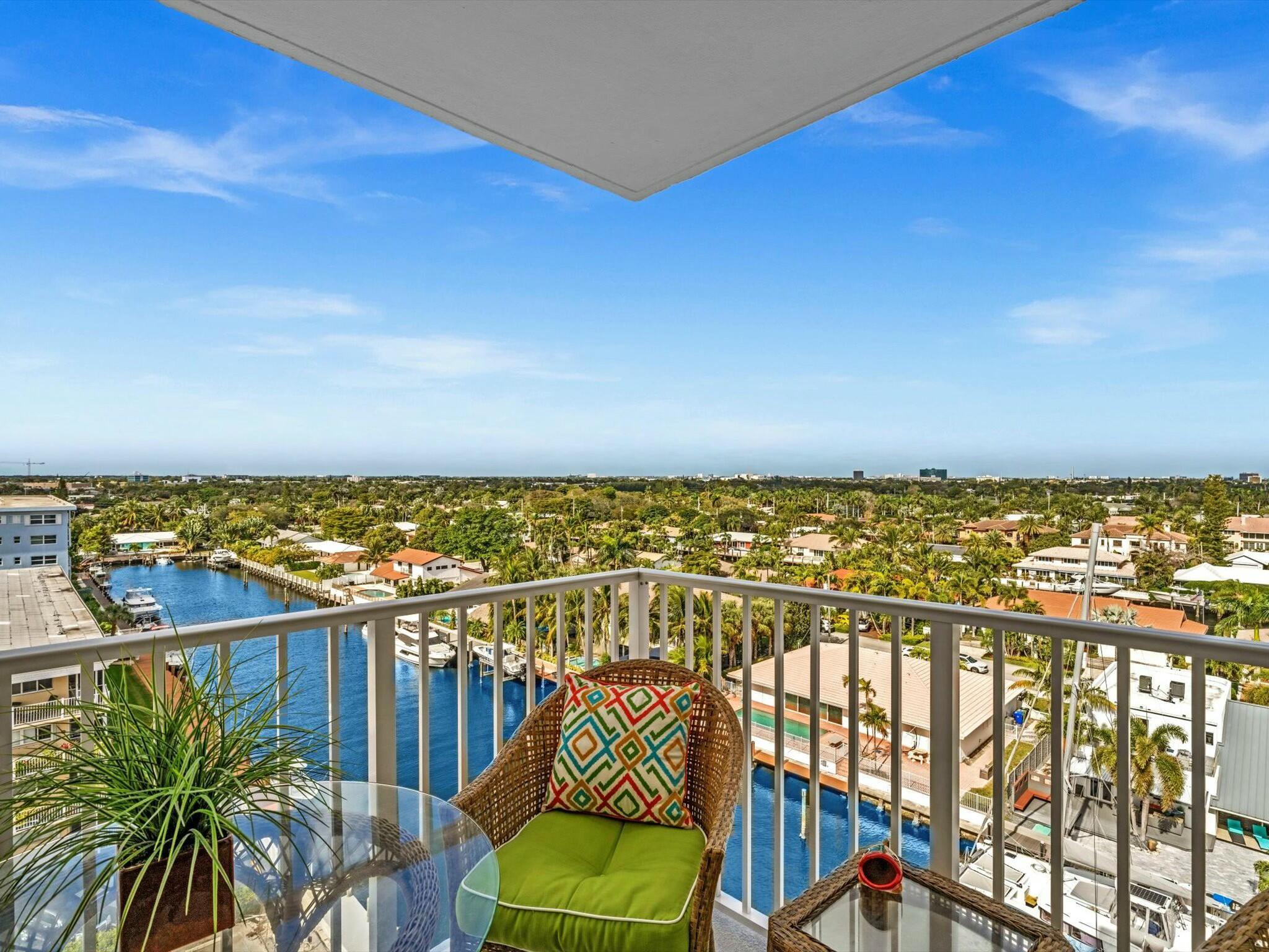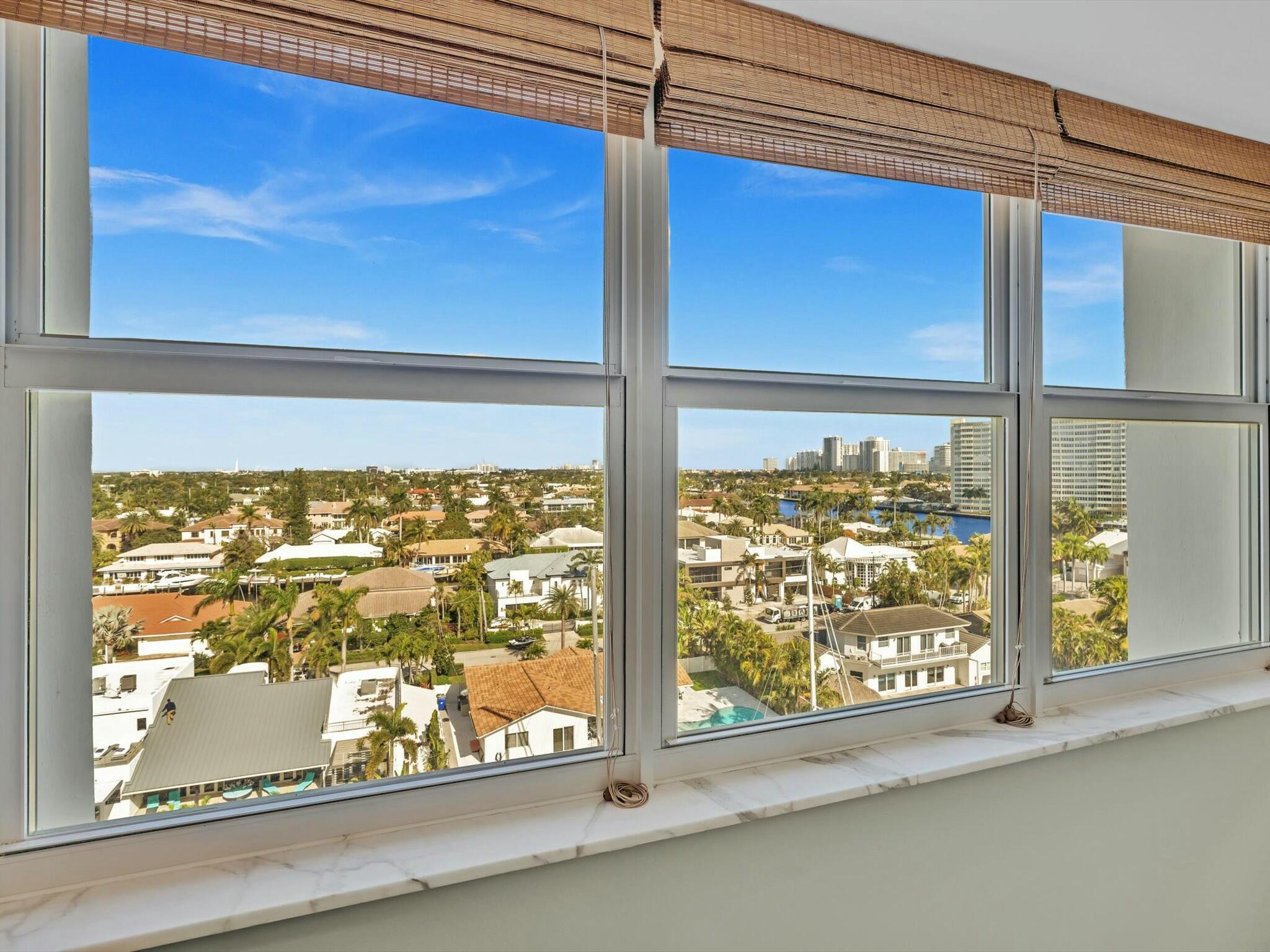 This spacious 2-bedroom, 2-bathroom condo boasts stunning views of the Intracoastal Waterway and Ft Lauderdale. With 1,250 square feet, the renovated kitchen features stainless steel appliances, granite countertops, and recessed lighting, flowing into a bright living area ideal for entertaining. Both bedrooms offer ample closet space, and the updated bathrooms add a modern touch. Enjoy the convenience of shared laundry on each floor and tandem parking for two cars. Walk to the beach and fine dining, and take advantage of the community boat dock; leasable to owners for vessels up to 35 feet. Recent hallway renovations enhance the inviting ambiance. The HOA includes cable, internet, water, and maintenance. Sellers have paid the HOA assessment in full! Don't miss this fantastic opportunity!