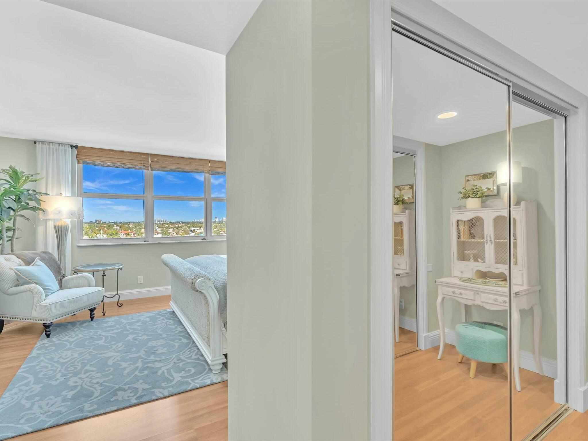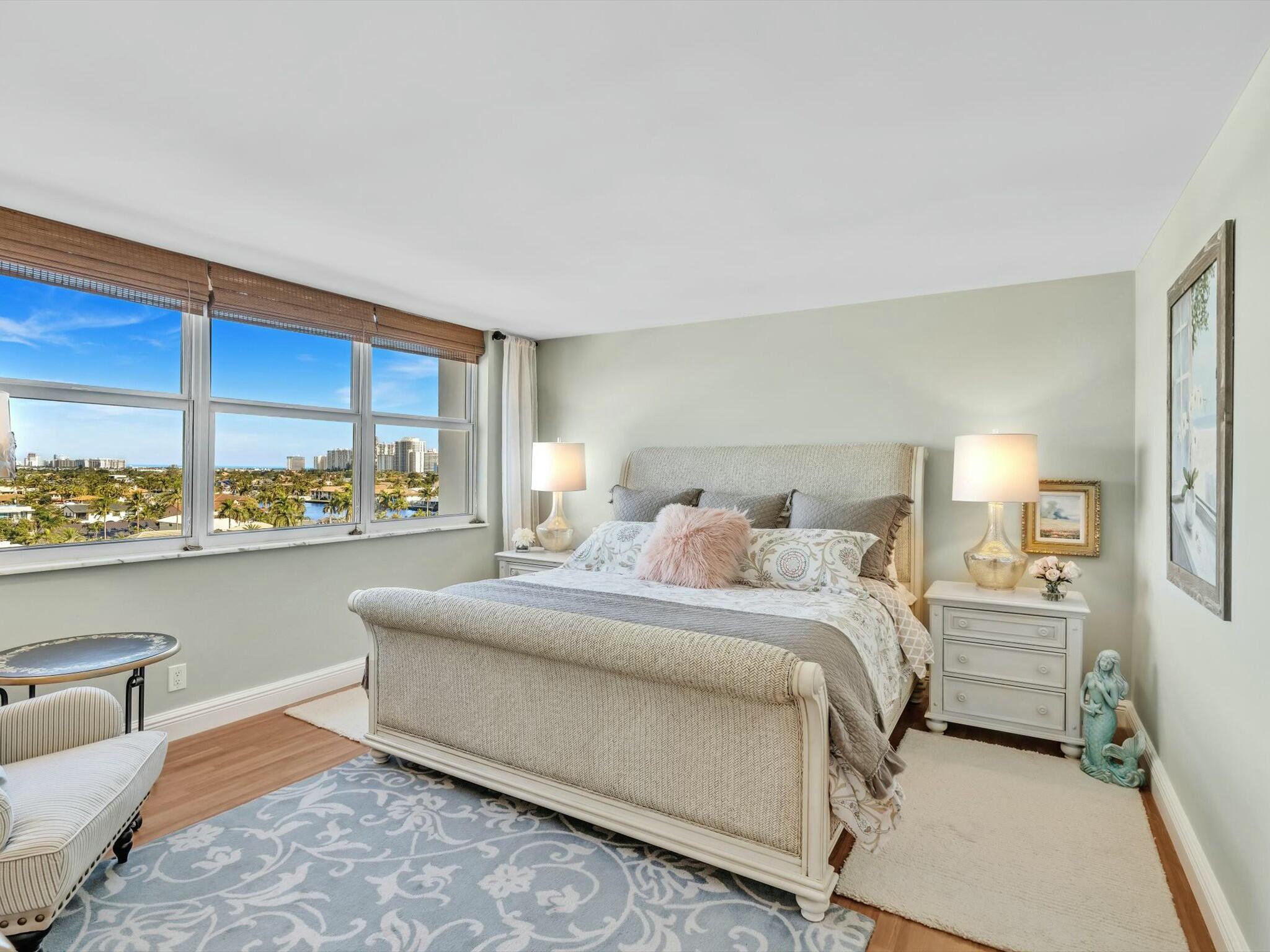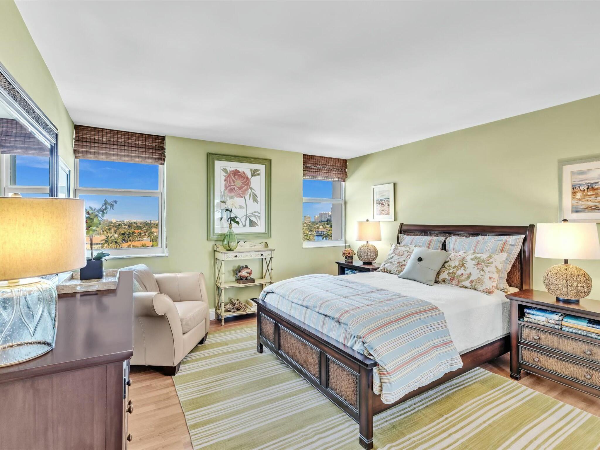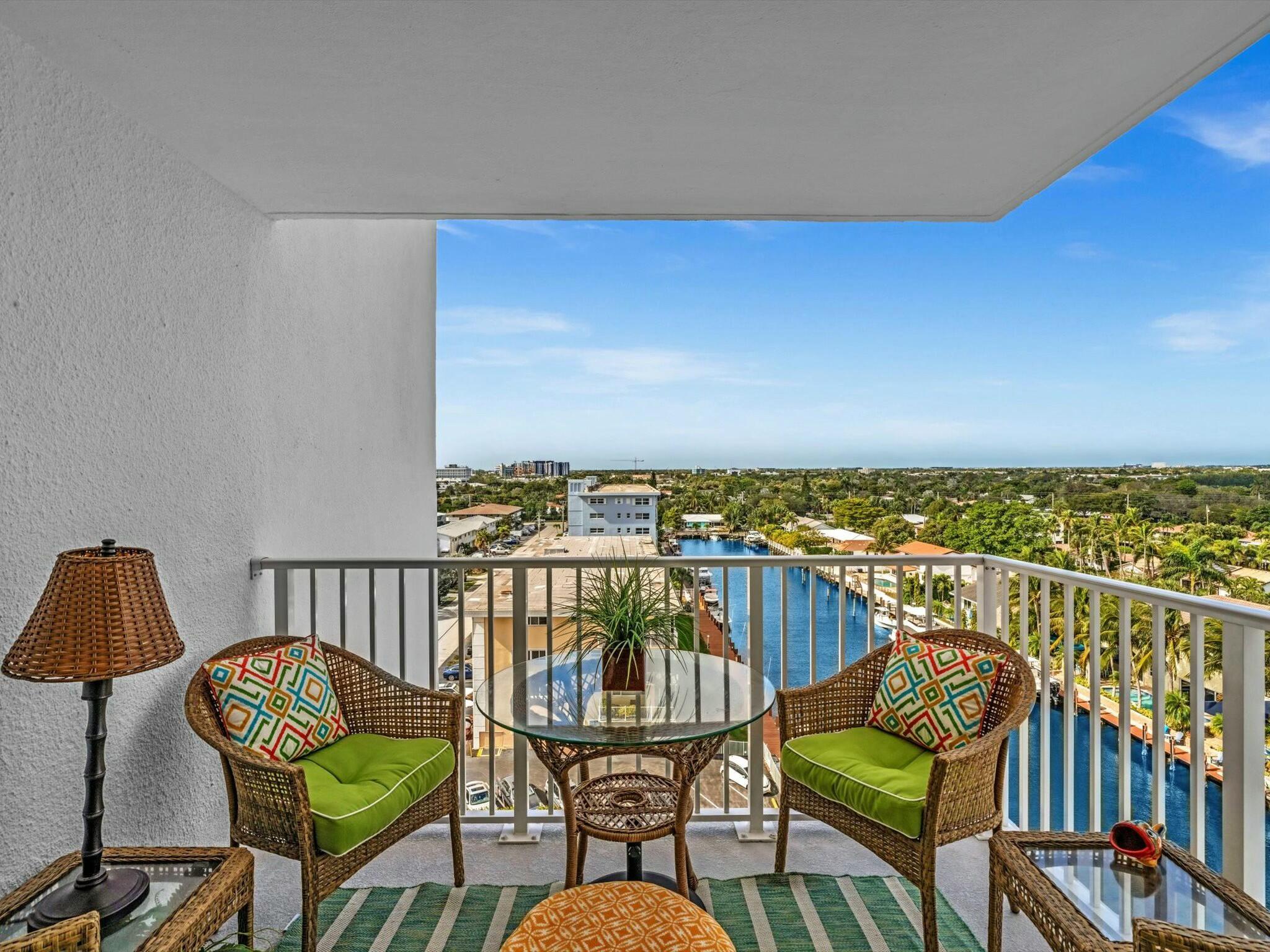This spacious 2-bedroom, 2-bathroom condo boasts stunning views of the Intracoastal Waterway and Ft Lauderdale. With 1,250 square feet, the renovated kitchen features stainless steel appliances, granite countertops, and recessed lighting, flowing into a bright living area ideal for entertaining. Both bedrooms offer ample closet space, and the updated bathrooms add a modern touch. Enjoy the convenience of shared laundry on each floor and tandem parking for two cars. Walk to the beach and fine dining, and take advantage of the community boat dock; leasable to owners for vessels up to 35 feet. Recent hallway renovations enhance the inviting ambiance. The HOA includes cable, internet, water, and maintenance. Sellers have paid the HOA assessment in full! Don't miss this fantastic opportunity!