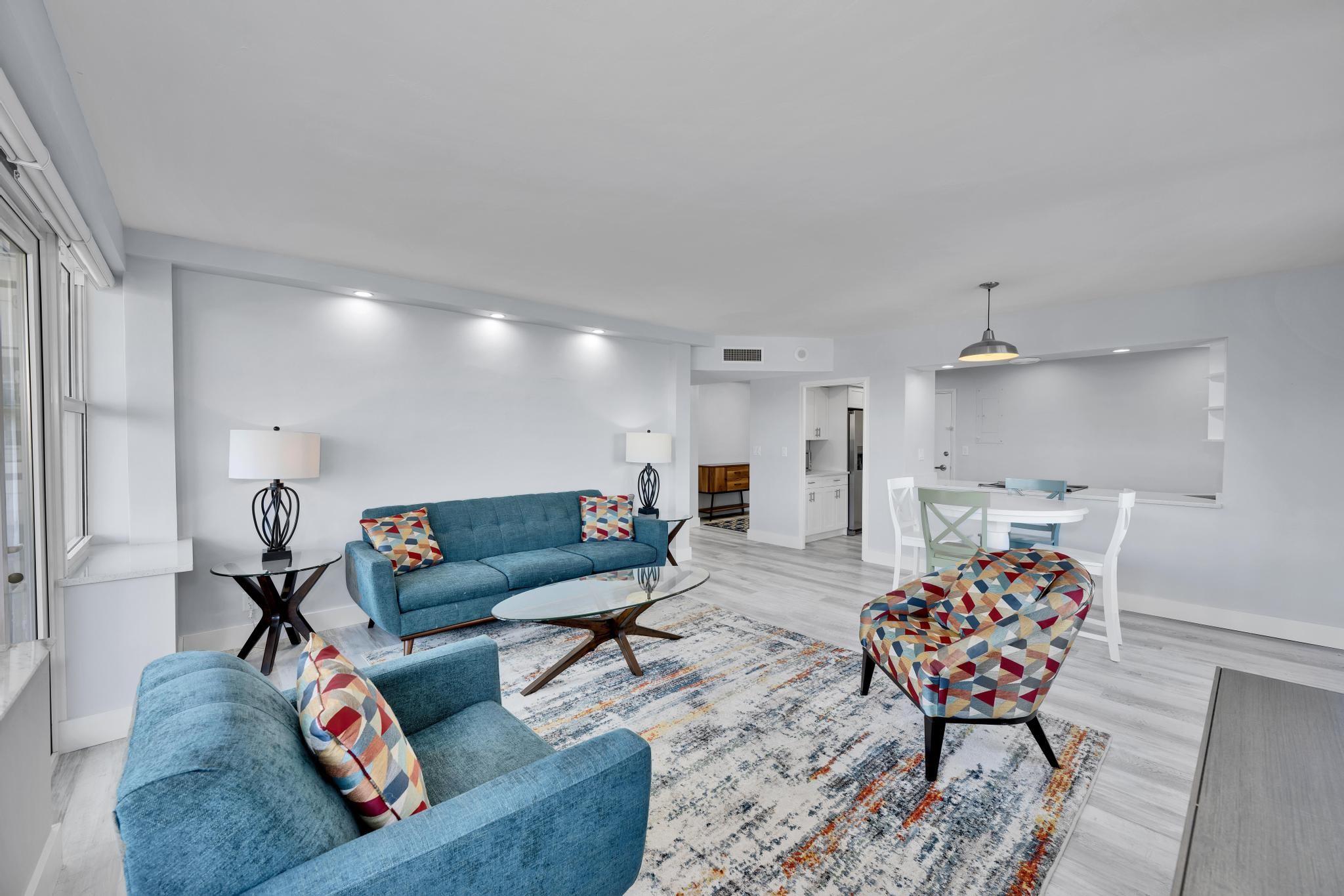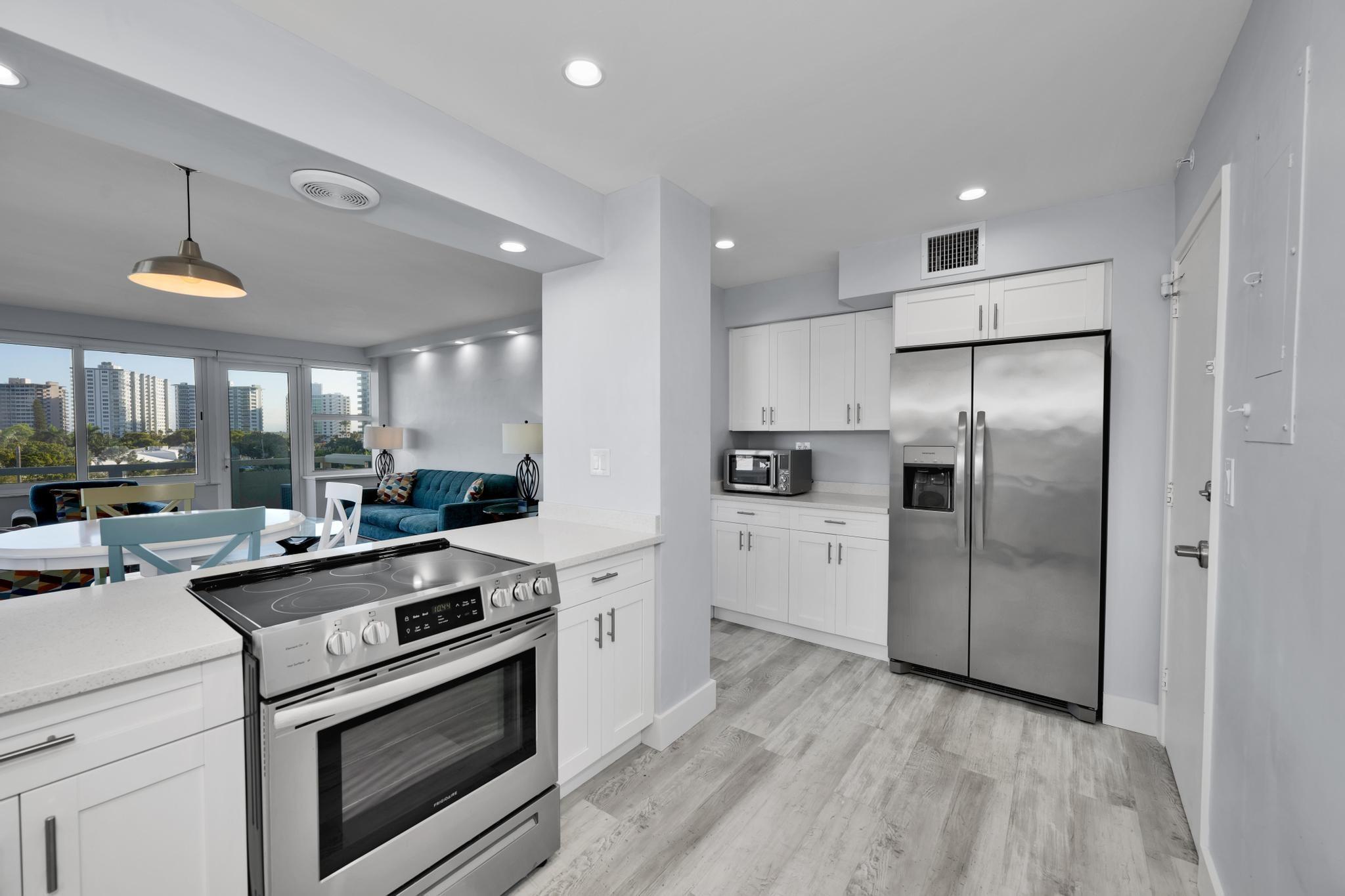 Completely remodeled corner unit directly on intercoastal front. This custom unit has been renovated from the ceiling down to the floors with a brand-new custom gourmet open kitchen with top grade appliances and quartz counters, plank flooring thru out, designer remodeled bathrooms completely new, impact windows and glass doors, all new custom window treatments, new a/c and hot water and lovely balcony. Very current tasteful finishes executed beautifully. Walk in and immediately see the amazing water views and lights from this awesome corner unit. Available furnished. Located steps to the beach, restaurants, shops, grocery stores, entertainment venues and everywhere you want to be. Best value available…Come see…