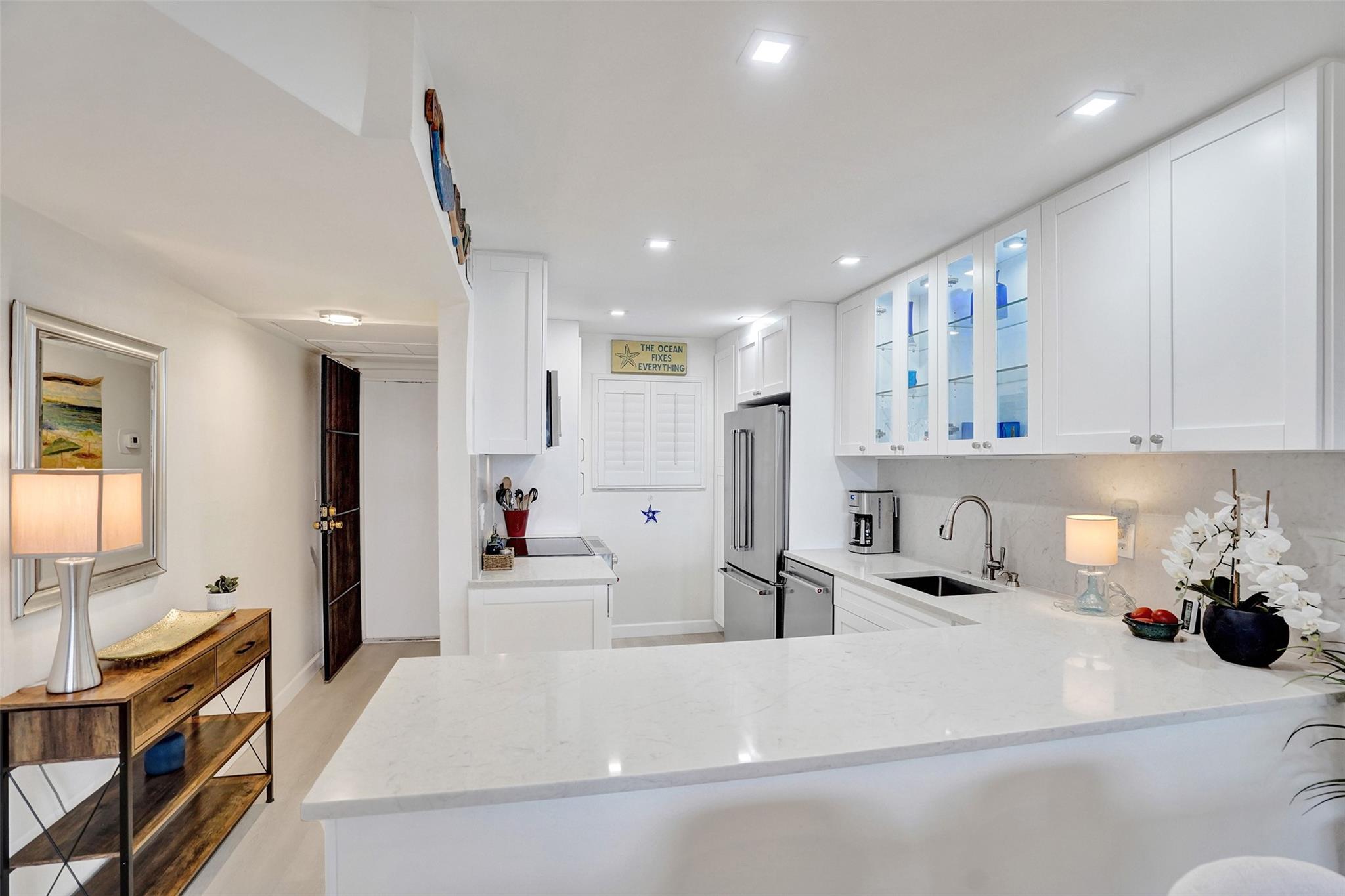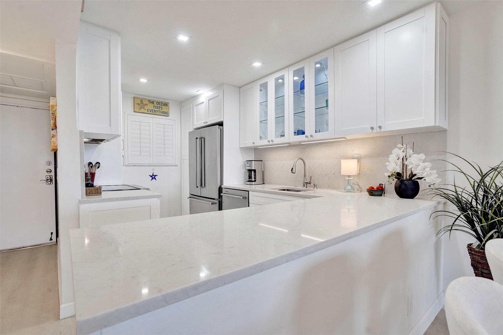 Penthouse Living at its Finest! This South East Corner unit has incredible views of the sunrises and sunsets every day. With windows on three sides of the unit, you can welcome a constant breeze and bring the outside in. This unit was totally remodeled two years ago and features an extra large, expanded kitchen, pantry, tankless water heater, LVP flooring, Impact Windows & Doors, Extra Large Custom Built Linen Closet that other units do not have. The Laundry Room and Extra Storage is close to the unit and the parking is just steps from the elevator. Cross Fox has FULLY FUNDED RESERVES, HAS COMPLETED THE SIRS STUDY, AND MILESTONE INSPECTION. New Elevators and painting of the buildings are in the near future and are budgeted. Walk to LBTS and the Beaches!