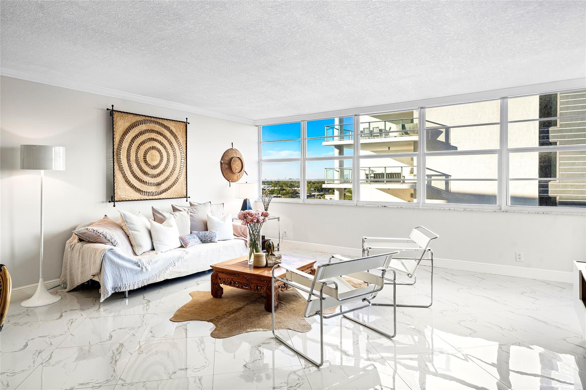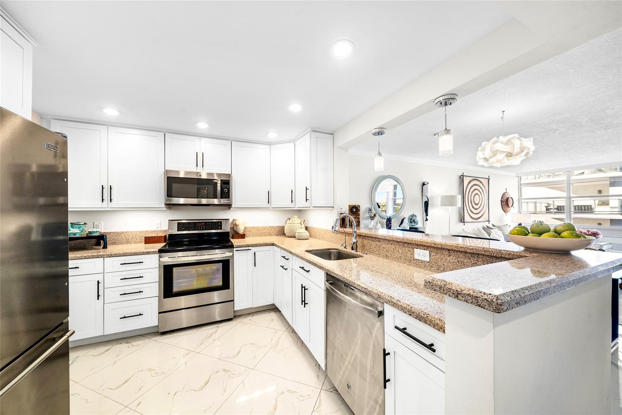 Rarely Available Waterview Residence with In-Unit Washer/Dryer. Beautiful white ceramic tile flooring, new kitchen appliances, AC, motorized window shades, storage, are some of the highlights of this gracious one bedroom, 1 ensuite plus 1/2 bath, pristine home in recently updated East Point Towers on the Middle River. Superior deeded 2 Garage Parking Spaces. Amenities galore, including riverside pool, BBQ, clubhouse, game room, gym & saunas, and dockage. Perfectly located with amazing access to tennis, pickleball, kayaking, shopping, restaurants, Fort Lauderdale Beach, Las Olas nightlife and Port Everglades. Building Certifications in place; no upcoming assessments announced.