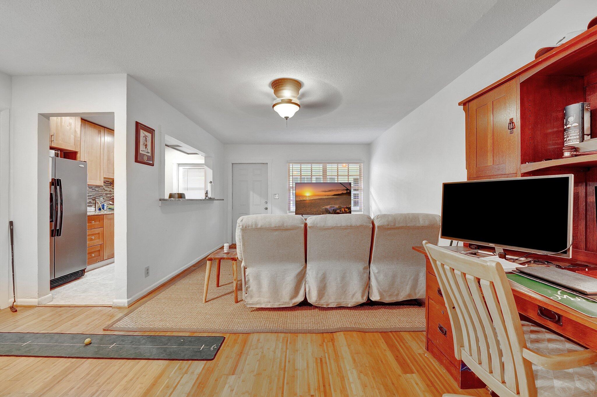 This charming one-bedroom condo, spanning 800 square feet, offers a cozy and inviting retreat just four minutes from the sandy shores of Fort Lauderdale Beach. The interior features warm, neutral tones that create a serene atmosphere. The open-concept living area is designed for relaxation and entertainment, with comfortable seating and ample natural light streaming through large windows.The kitchen is fully equipped with modern appliances, granite countertops, and plenty of cabinet space, making it ideal for cooking and dining. The bedroom is a peaceful haven, complete with a plush queen-sized bed and generous closet space.
