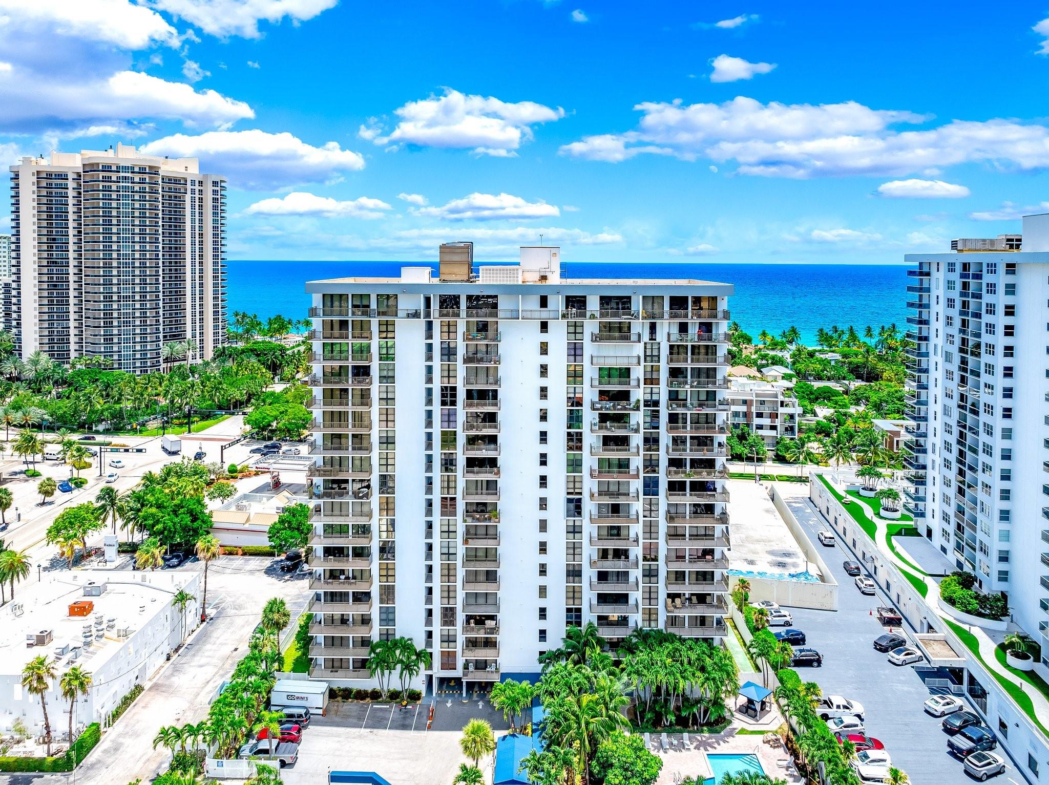 HAS RESERVES, RENOVATED, BEACH ACCESS, PASSED SIRS, 10th-floor condo, steps from the beach. Kitchen features SS appliances, quartz countertops, dishwasher, a light aqua subway tile backsplash, white cabinetry, tile flooring throughout for an open and airy beach-inspired atmosphere. Updated bathroom, walk-in closet and other storage creates a cohesive look throughout. Enjoy your own balcony with pool views and stunning sunsets. 2021 A/C, 2022 roof. The building has resort-style amenities, including a heated pool, security, storage, laundry, assigned parking. Perfect for those seeking a winter retreat and investors will appreciate the flexible rental policy, allowing for twice-yearly rentals after the first year. This move-in-ready condo offers the ultimate in South Florida living.