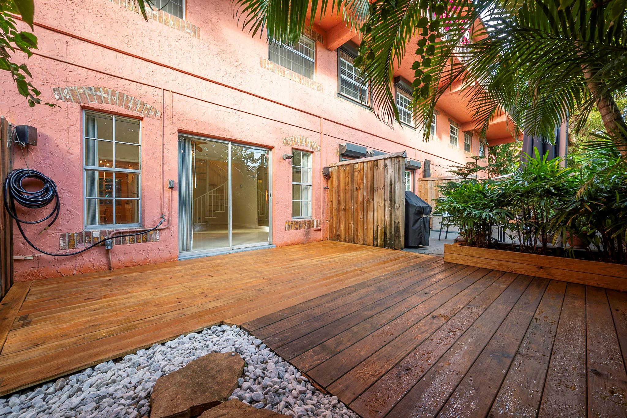 Seller financing available! Rarely available first floor unit!! This awesome beautifully updated unit boasts marble and wood floors. Upgraded kitchen with granite countertops, built in wine cooler, illuminated glass door cabinets, recessed lighting, built in speakers, modified ceiling, breakfast area, pull out pantry and multiple drawers. Marble bathroom and sizable bedrooms with ample closet space. Outdoor oasis, wooden deck and planters, Great outdoor dining and more. Spiral staircase leads upstairs, external elevator as well accessible through separate door. The Tennis Club is a gated community close to downtown Fort Lauderdale and minutes to the beach and highways. Great clubhouse and amenities including 23 Tennis Court, gym, bar and lounge.