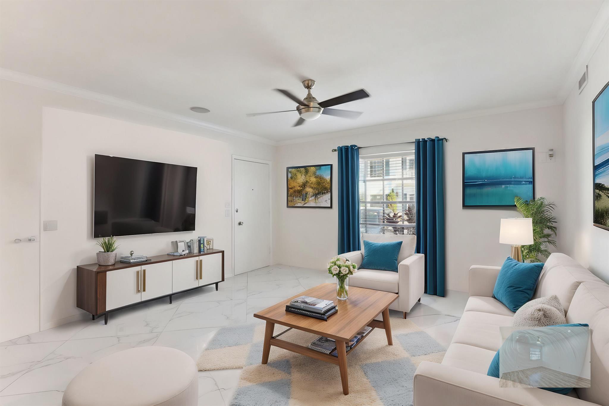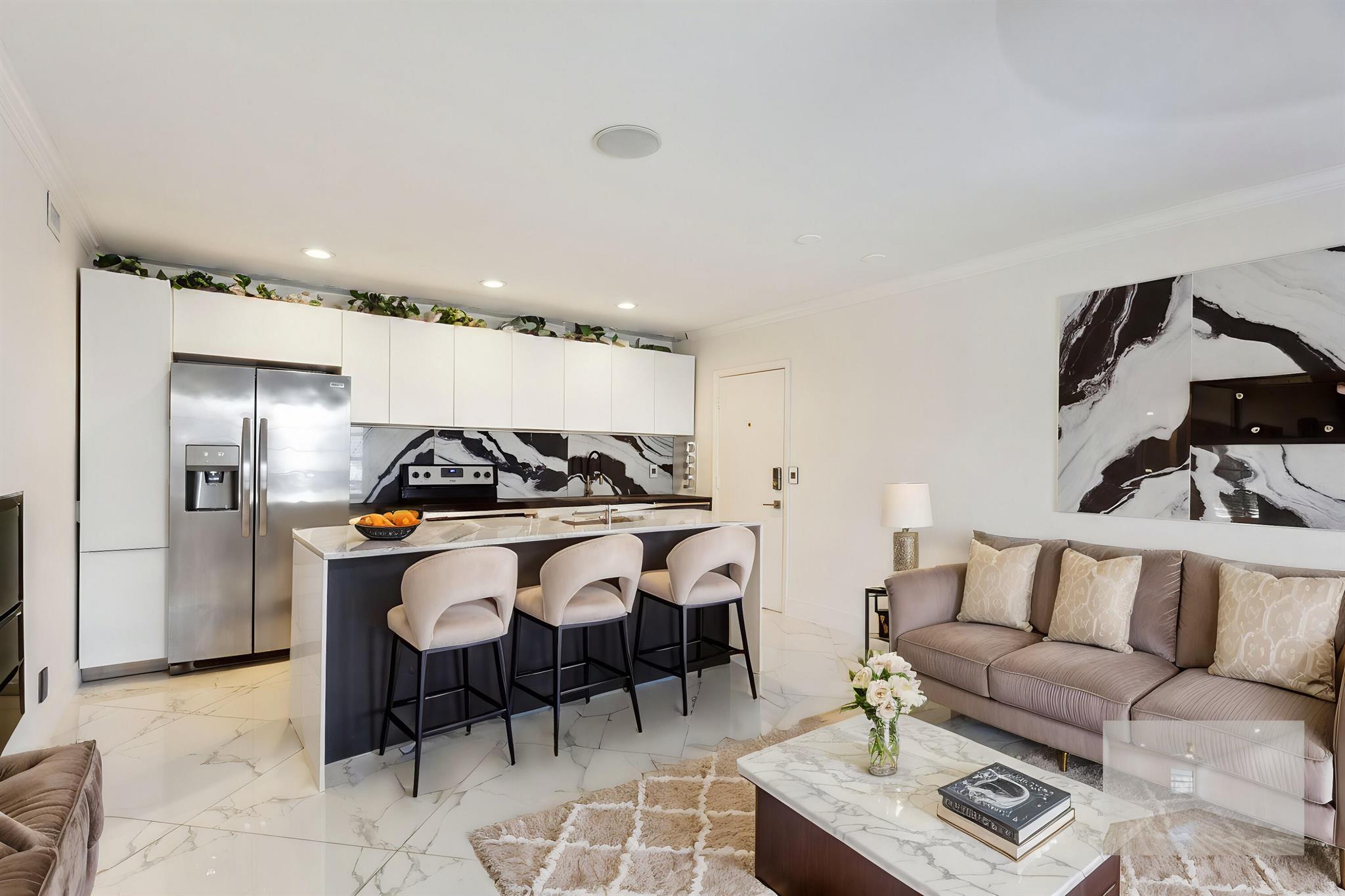 Stunning Newly Renovated First-Floor Corner Unit with Modern Features & Luxury Finishes. This beautifully updated condo offers a blend of style, comfort, and convenience. Featuring brand-new porcelain flooring throughout, a spacious open-concept design, and a sleek kitchen with a large quartz island, this home is truly move-in ready. The kitchen, with its modern cabinetry and high-end appliances, is a chef's dream, perfect for both everyday cooking and entertaining guests.The bathrooms have been fully renovated to create a spa-like atmosphere, with luxurious tile work, contemporary vanities, and smart mirrors for added functionality and modern flair. The thoughtful design of these spaces ensures both beauty and practicality, making your daily routine a luxurious experience.