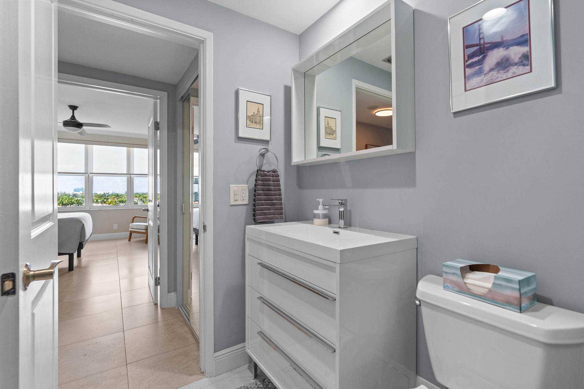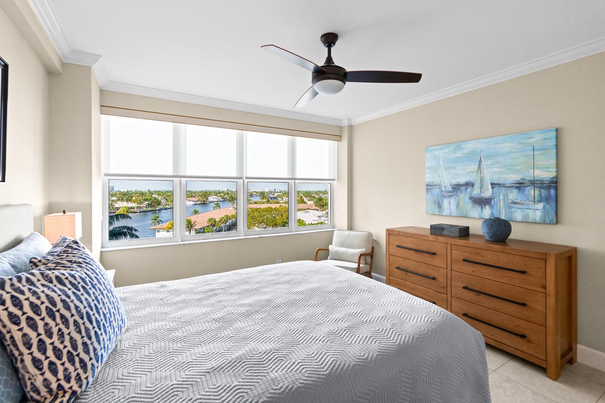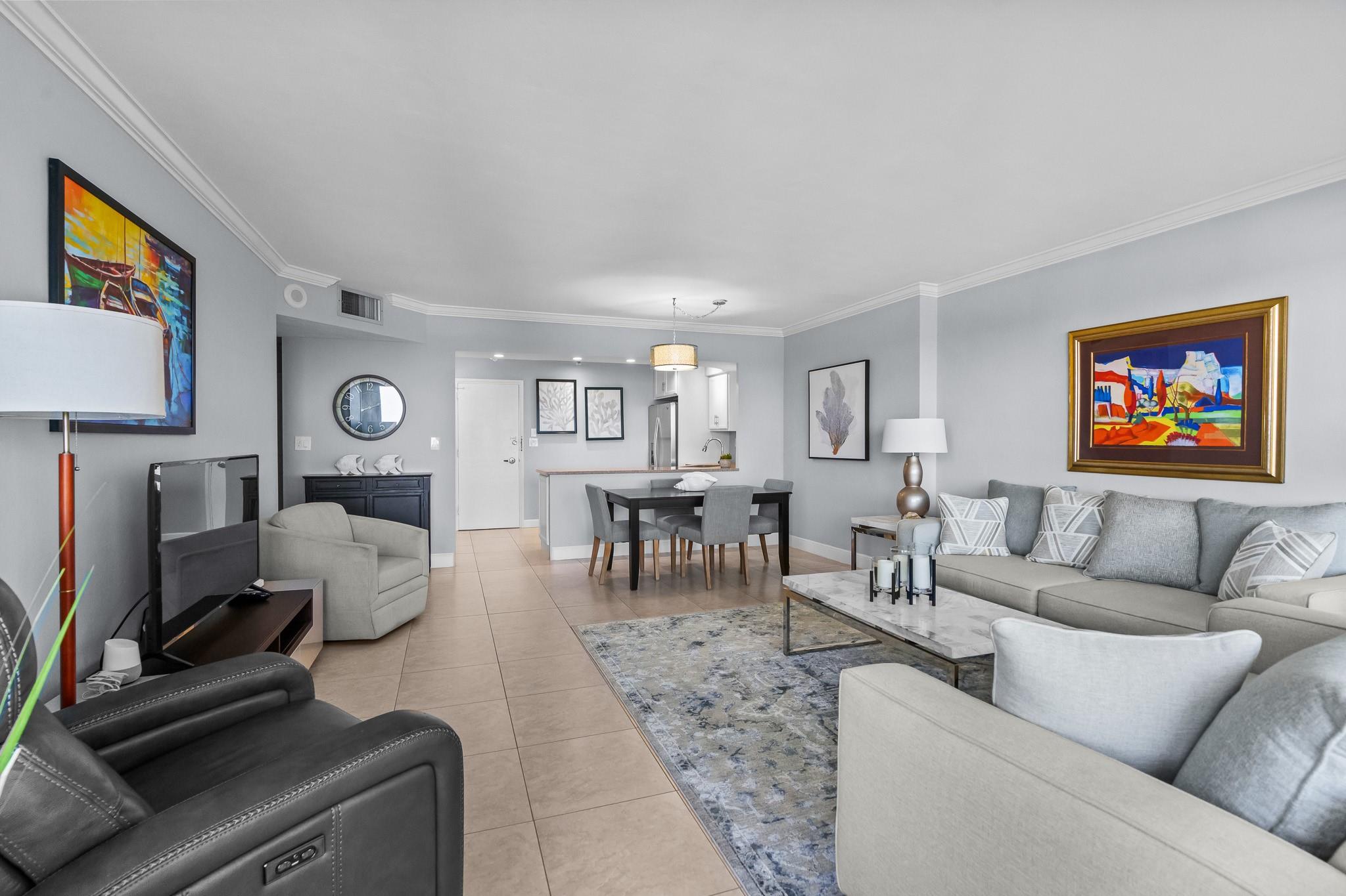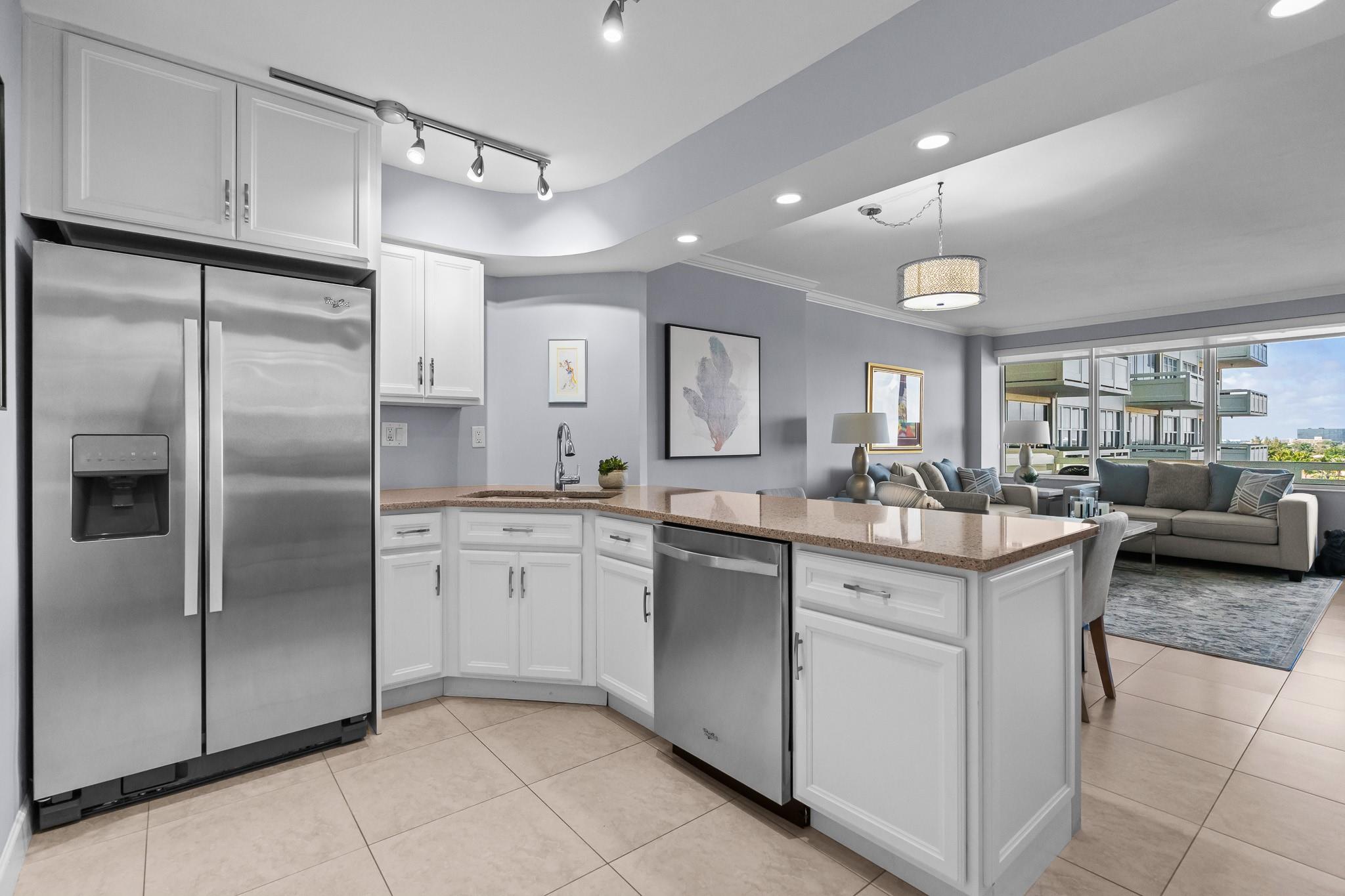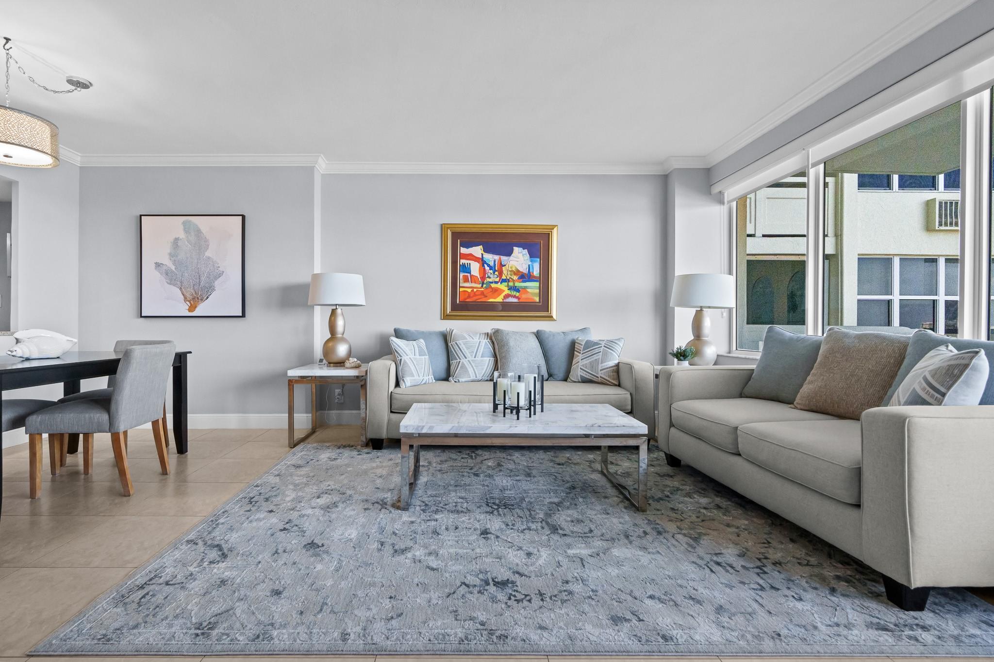 Turnkey and Beautifully Furnished With Intracoastal Views! This is the best value for a one bedroom apartment in Coral Ridge Towers North, a Co-op with fully funded reserves and no assessments. Enjoy breathtaking views of the Intracoastal from the living room, kitchen, bedroom & private balcony. This apartment is completely renovated from top to bottom with gorgeous porcelain tile floors throughout the living spaces. Open kitchen with new cabinetry, quartz countertops and stainless-steel appliances. Hurricane impact windows and central air conditioning. Relax & watch the boats pass by at the resort style pool & garden area located directly on the Intracoastal. Association states one Buyer must be 55, no rentals/pets. Coral Ridge Towers North is a fantastic value, you will love living here!
