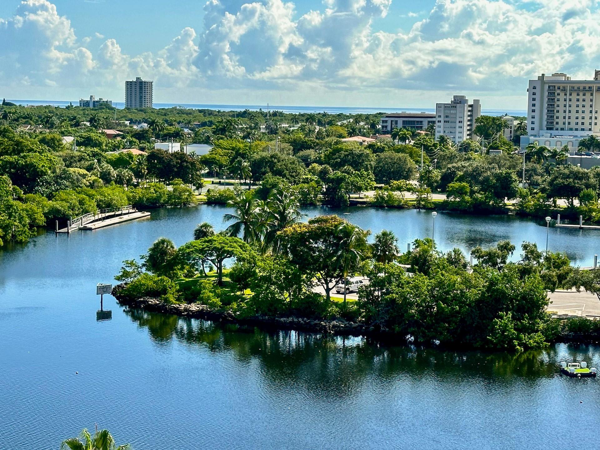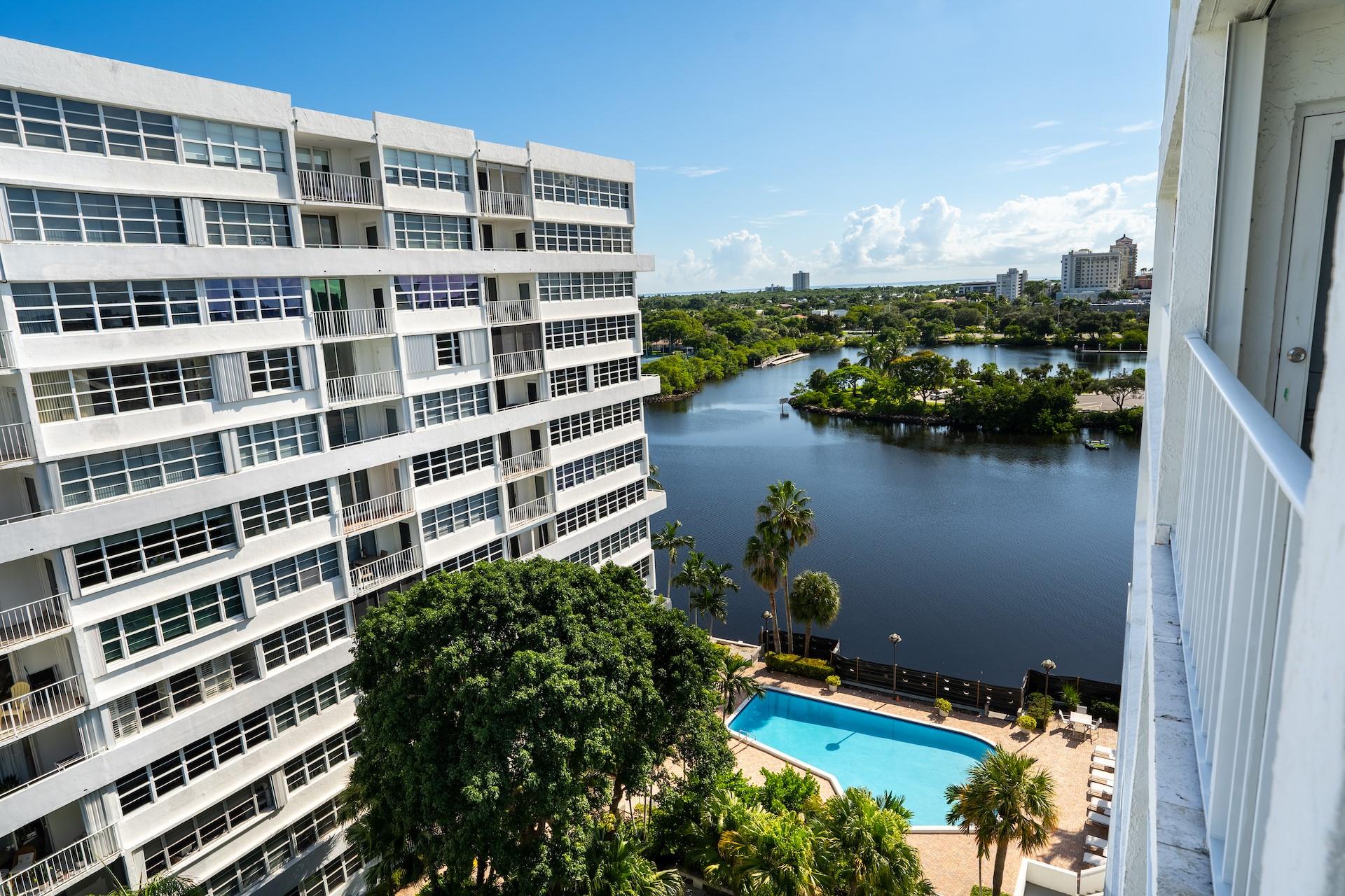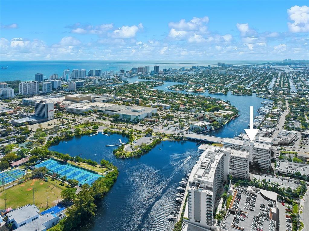 Beautiful Middle River and Ocean Views from this large condo in great location. Tile floors throughout and beautiful updated building with great amenities. High Impact Windows and Doors! Full time Secured entry, Pool on waterfront, Fitness Center and recreation room with BBQ area off pool. Riverfront clubhouse with 2 gyms, sauna, boat dock up to 25' when available. Car wash, deeded parking space close to entrance, 24-hour security. On site manager and lots of guest parking. Convenient location just minutes to the Beach, Downtown/Las Olas and lots of great shopping and Restaurants.