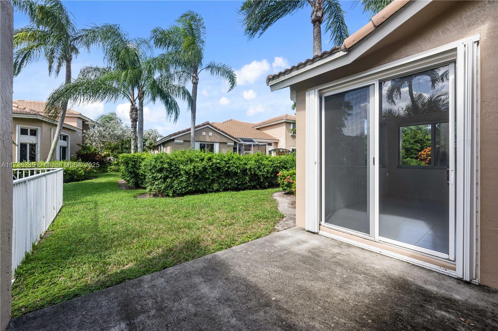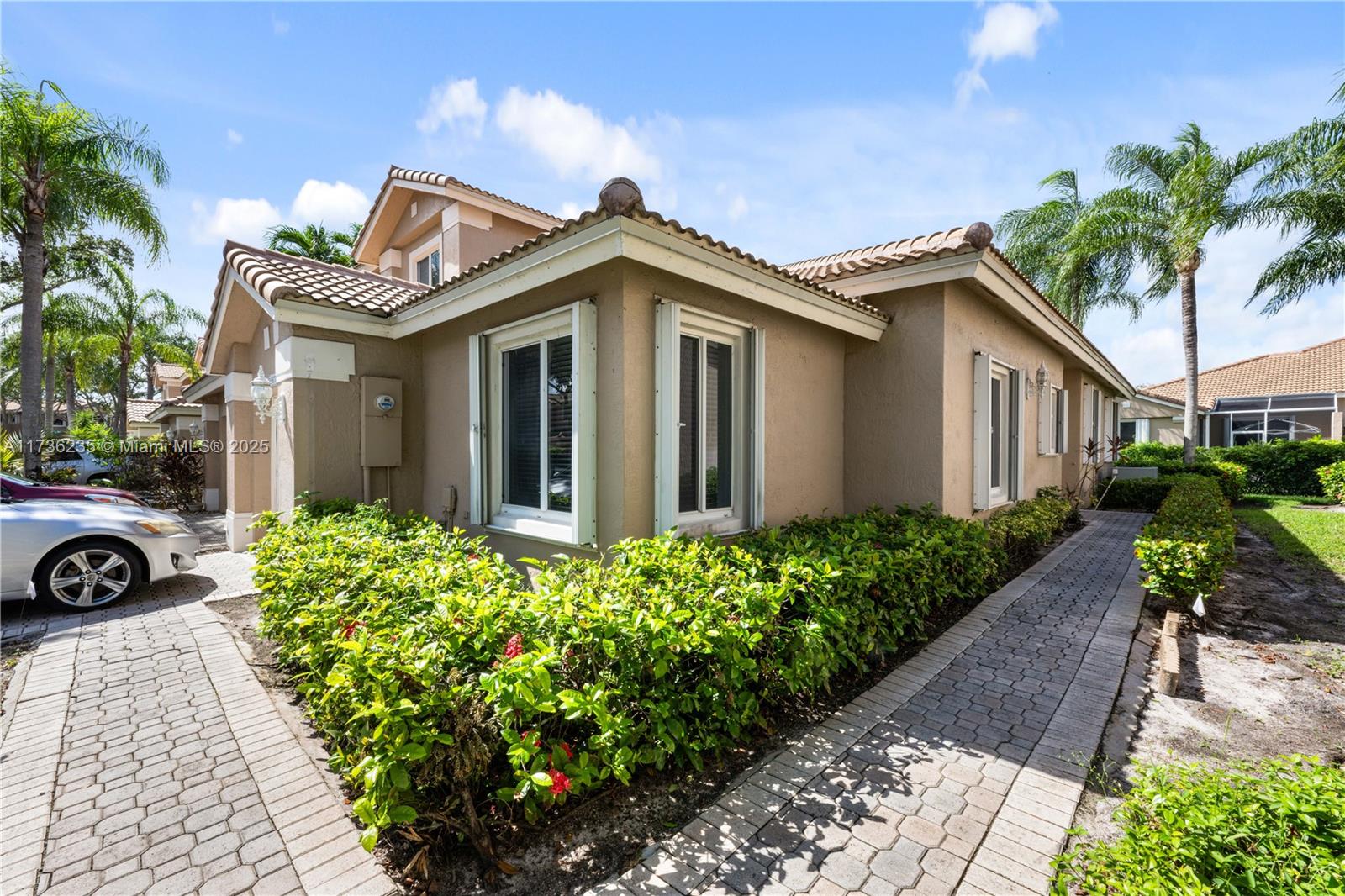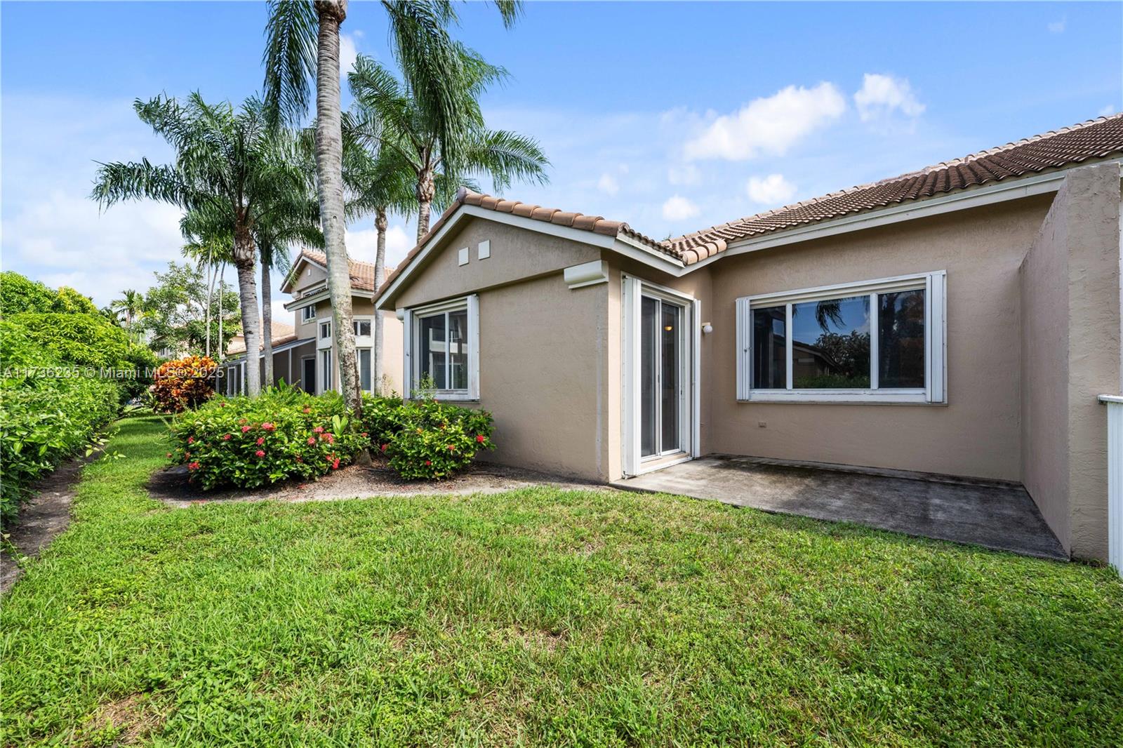 Move in Ready, Roof 2022, Accordion Shutters, Freshly Painted, Hunter Douglas Blinds. Charming Mediterranean-style home, This 3-bed, 2-bath gem boasts a spacious living and dining area with stunning tile floors that flow seamlessly throughout the main living spaces. High ceilings and abundant natural light create an airy, inviting atmosphere throughout the home. The master suite is a true retreat, featuring a walk-in closet and an en-suite bathroom with a makeup counter and a luxurious soaking tub. The 2 additional guest bedrooms are generously sized, each with ample closet space. The bedrooms are freshly carpeted, providing warmth and comfort underfoot. The heart of the home is the U-shaped kitchen, ideal for both everyday cooking & entertaining. Patio plus 1-car garage. Priced to sell