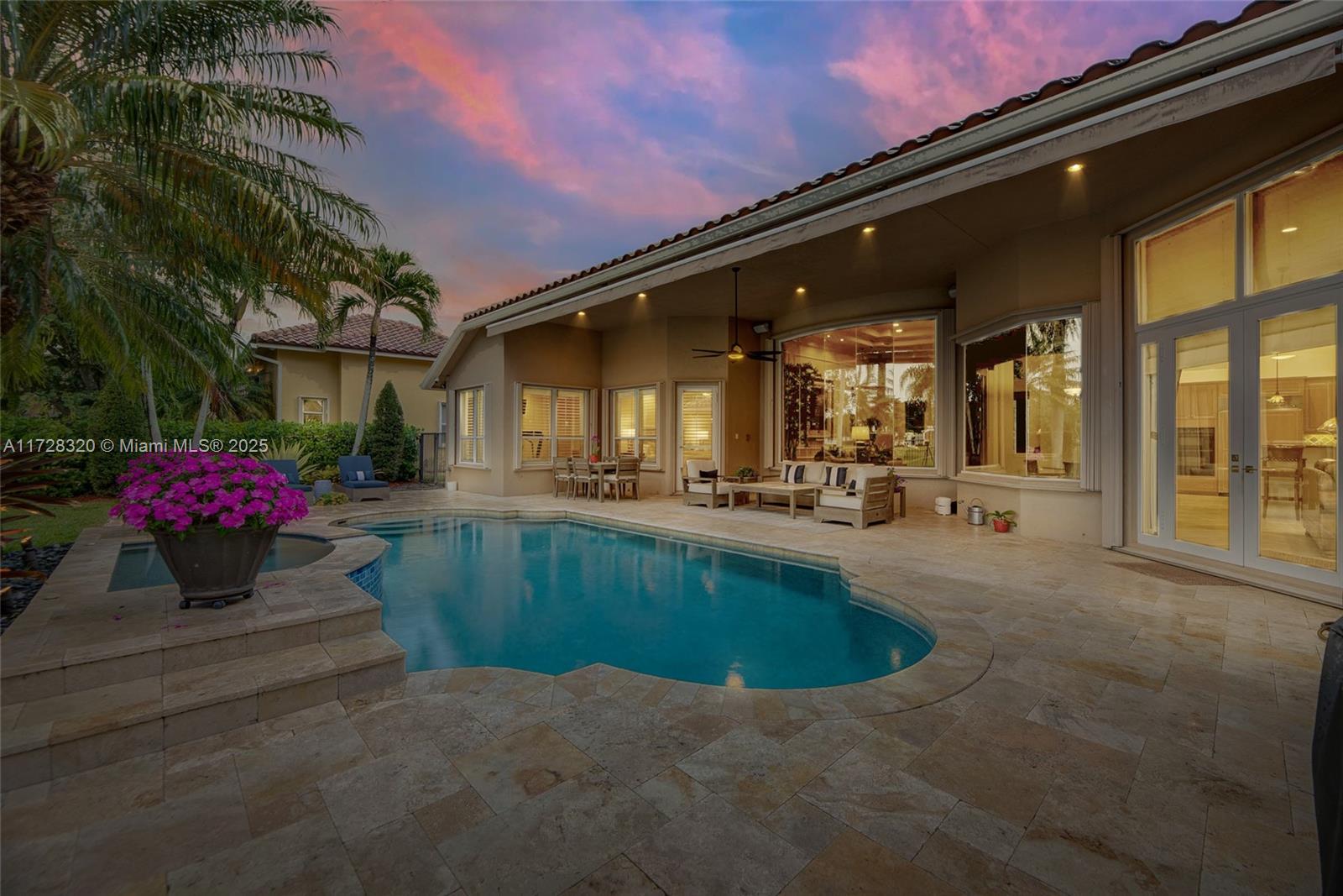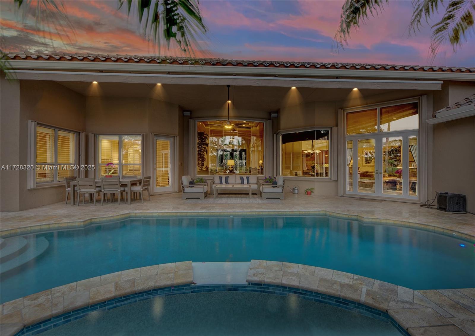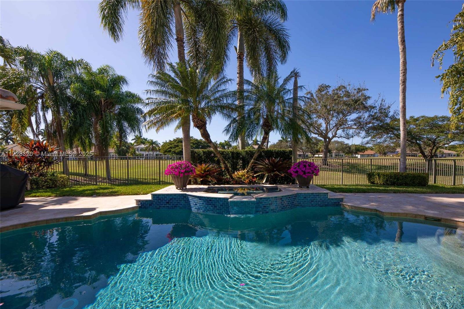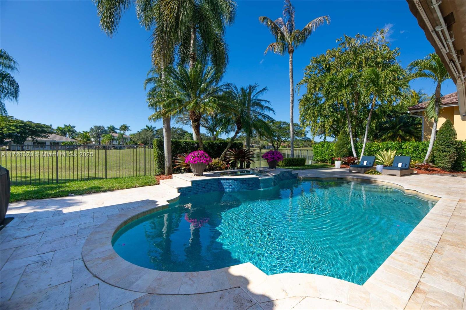 Discover this exquisite 4-bed 3.5-bath w/office & den pool home nestled in the prestigious gated community of Weston Hills. Thoughtfully designed split floor plan has soaring ceilings & an abundance of natural light. Gourmet kitchen features granite countertops, ample cabinetry, a walk in pantry with seamless flow into the expansive family room. Step outside to a tranquil backyard oasis, recently re-surfaced pool, spa & stunning travertine deck w/panoramic golf course views galore. Retreat to the luxurious owners suite, complete with a spa-like bath, dual walk-in closets, & private sitting room or gym. With a newer tile roof, 3-zone HVAC, full hurricane protection & meticulous attention to detail, this elegant residence exudes pride of ownership. A-rated schools & coveted Weston lifestyle.