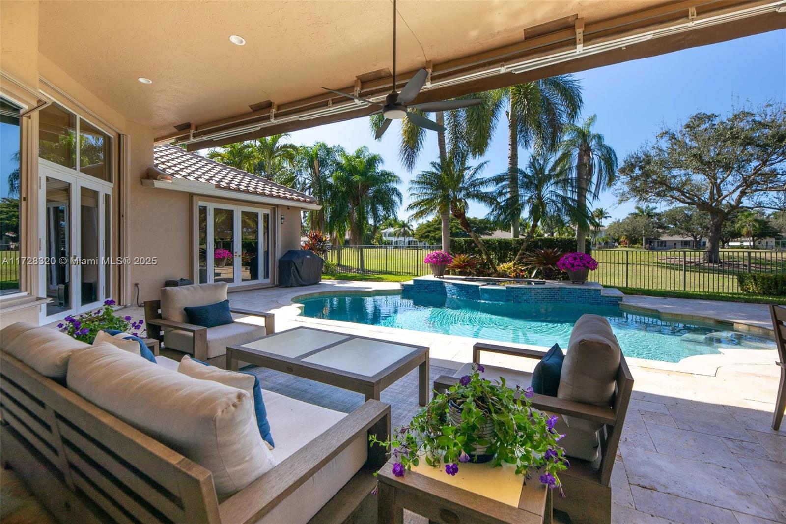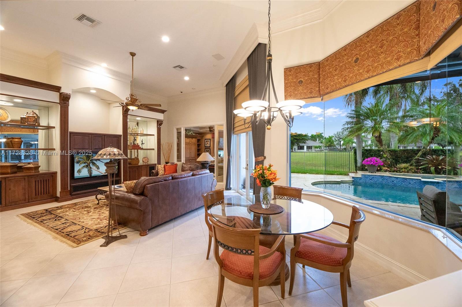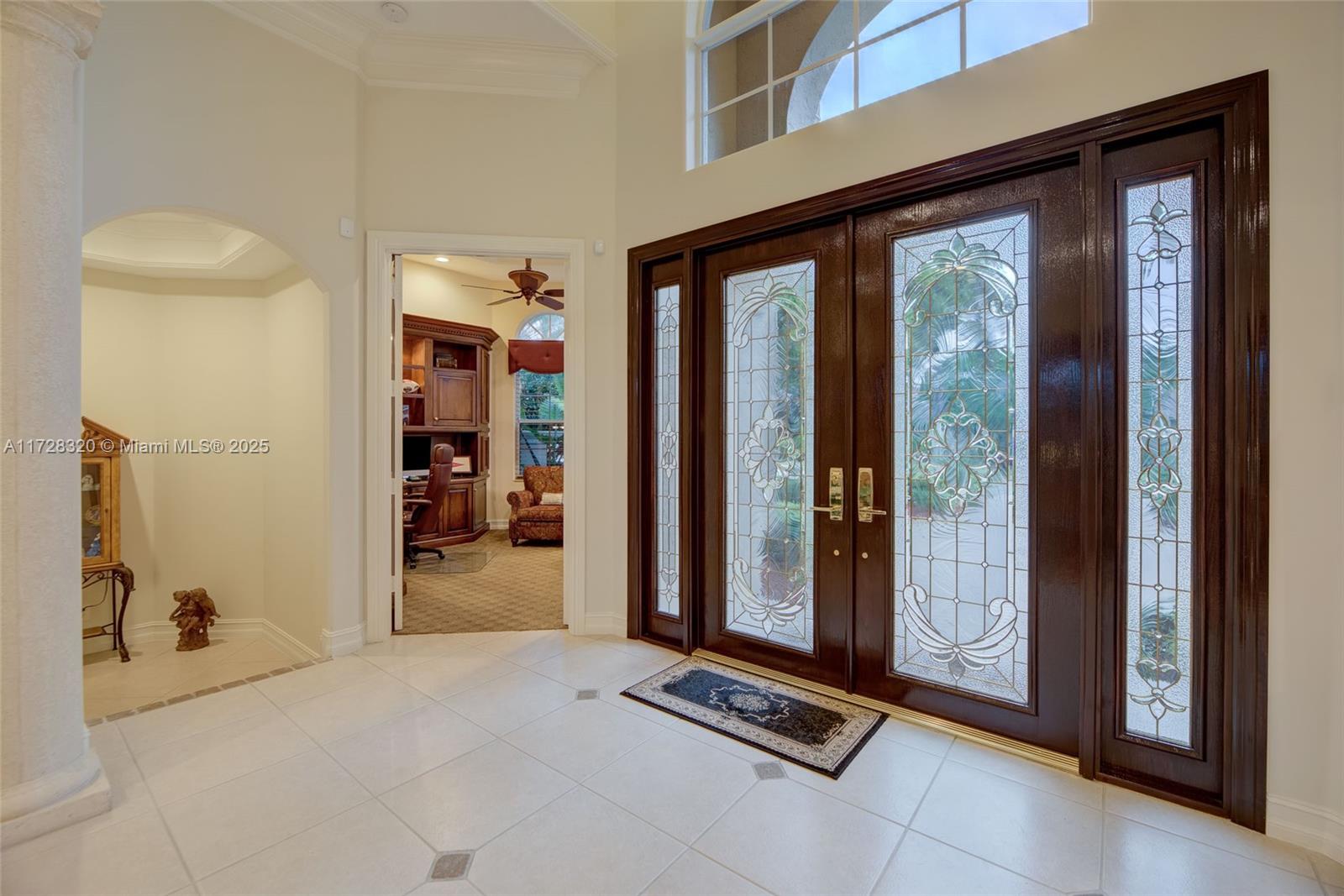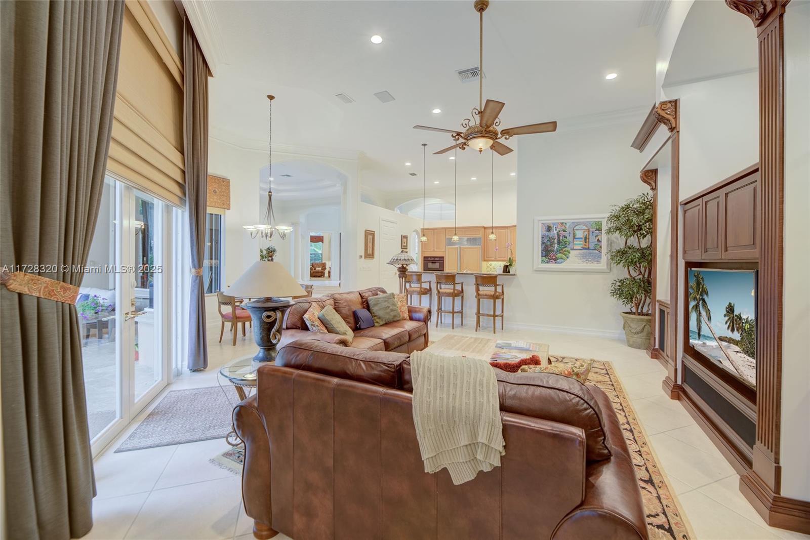 Discover this exquisite 4-bed 3.5-bath w/office & den pool home nestled in the prestigious gated community of Weston Hills. Thoughtfully designed split floor plan has soaring ceilings & an abundance of natural light. Gourmet kitchen features granite countertops, ample cabinetry, a walk in pantry with seamless flow into the expansive family room. Step outside to a tranquil backyard oasis, recently re-surfaced pool, spa & stunning travertine deck w/panoramic golf course views galore. Retreat to the luxurious owners suite, complete with a spa-like bath, dual walk-in closets, & private sitting room or gym. With a newer tile roof, 3-zone HVAC, full hurricane protection & meticulous attention to detail, this elegant residence exudes pride of ownership. A-rated schools & coveted Weston lifestyle.
