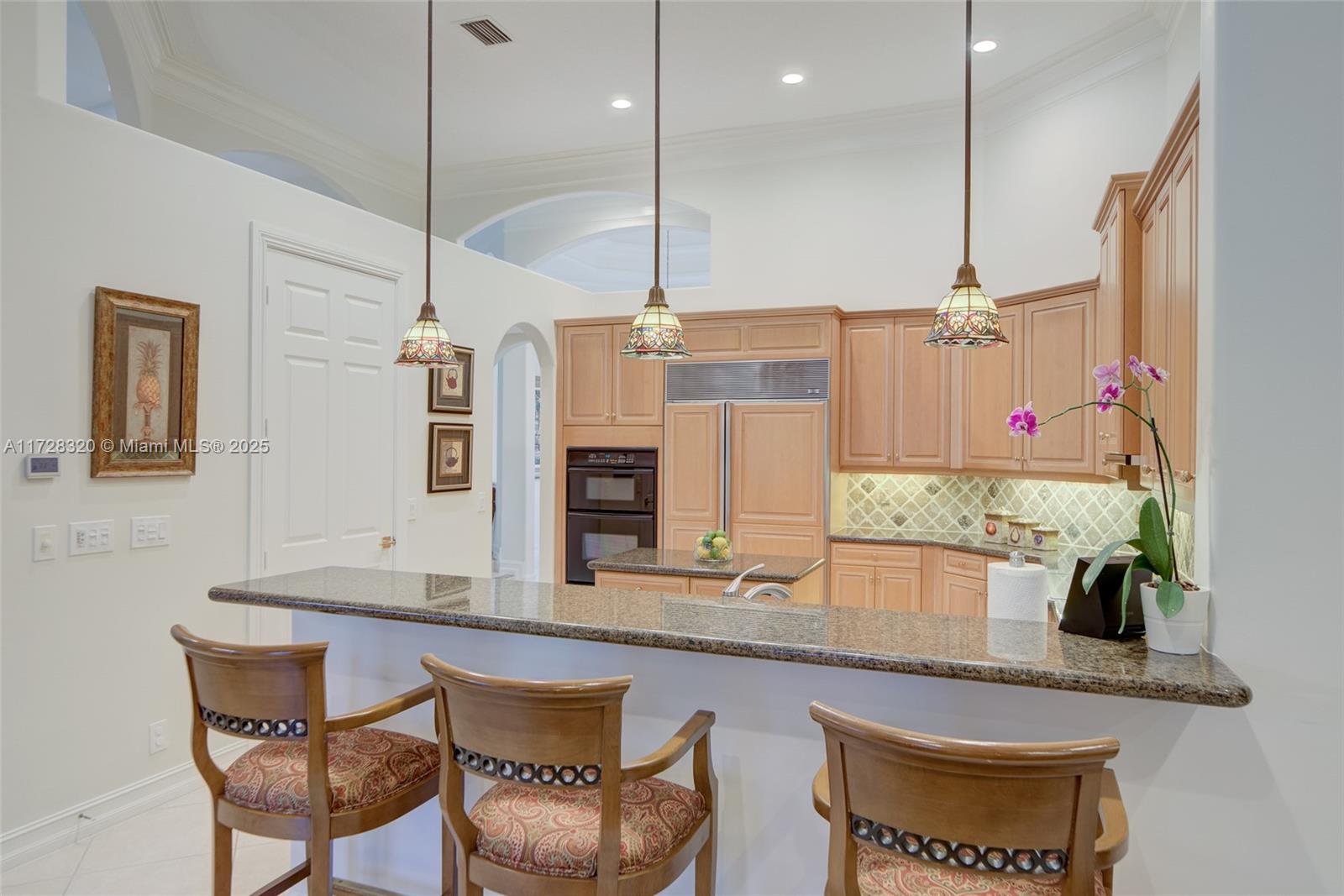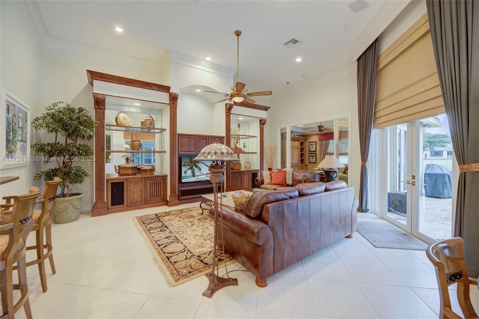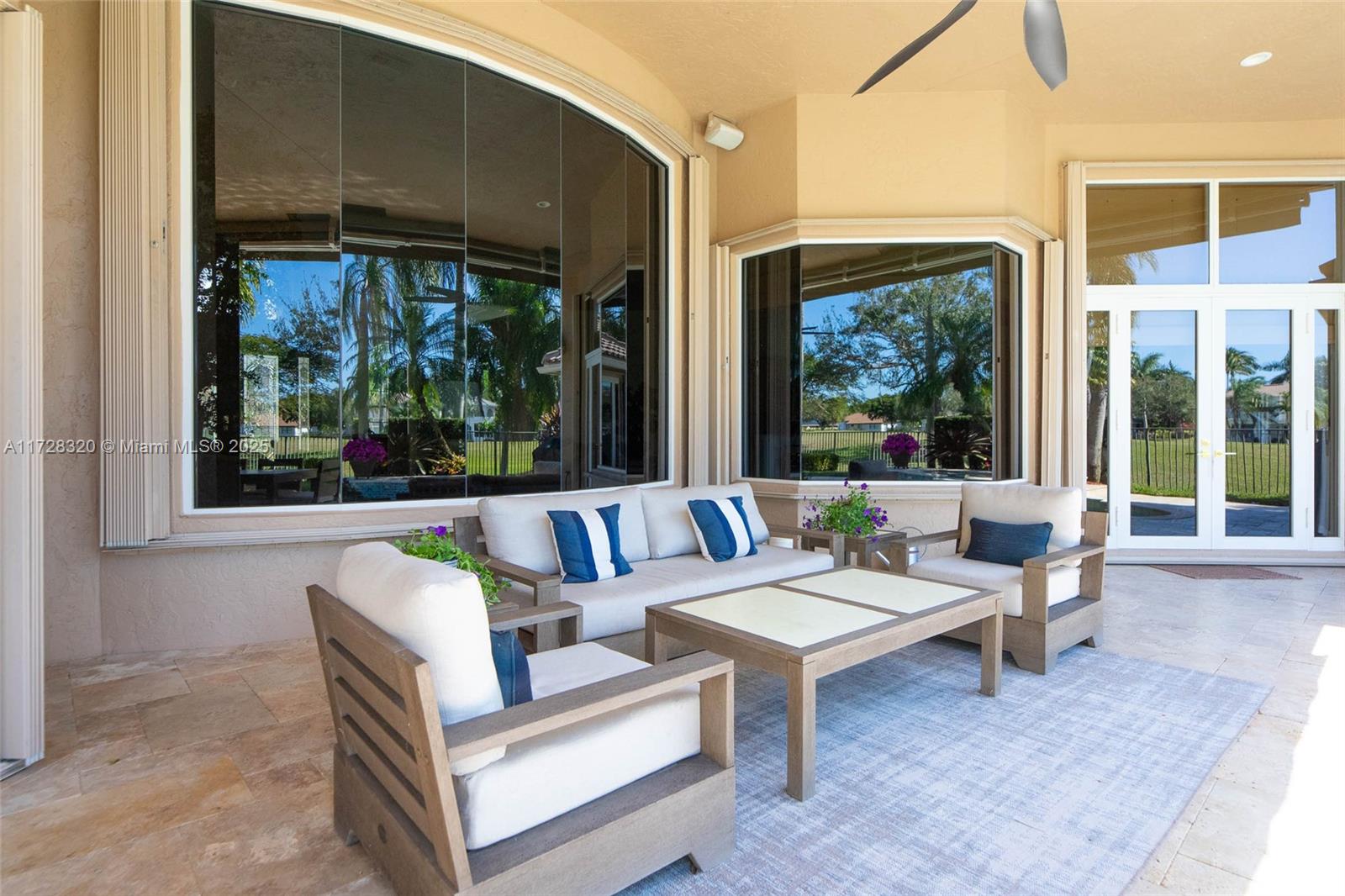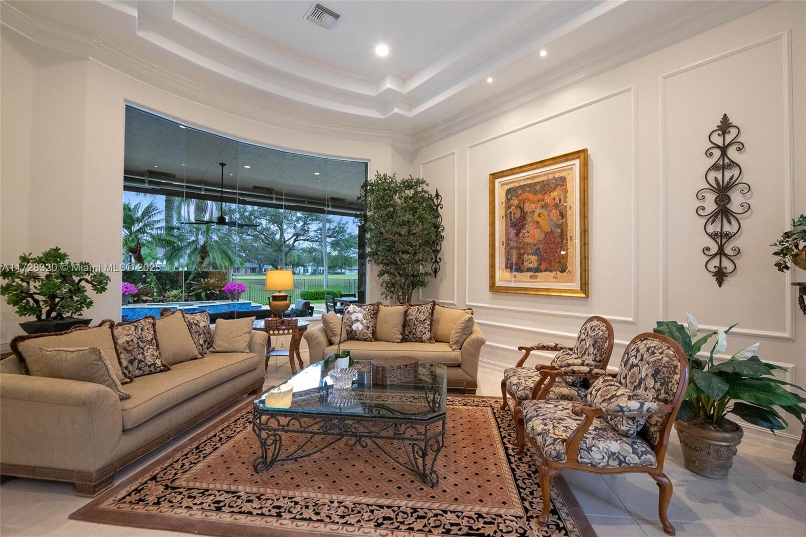 Discover this exquisite 4-bed 3.5-bath w/office & den pool home nestled in the prestigious gated community of Weston Hills. Thoughtfully designed split floor plan has soaring ceilings & an abundance of natural light. Gourmet kitchen features granite countertops, ample cabinetry, a walk in pantry with seamless flow into the expansive family room. Step outside to a tranquil backyard oasis, recently re-surfaced pool, spa & stunning travertine deck w/panoramic golf course views galore. Retreat to the luxurious owners suite, complete with a spa-like bath, dual walk-in closets, & private sitting room or gym. With a newer tile roof, 3-zone HVAC, full hurricane protection & meticulous attention to detail, this elegant residence exudes pride of ownership. A-rated schools & coveted Weston lifestyle.