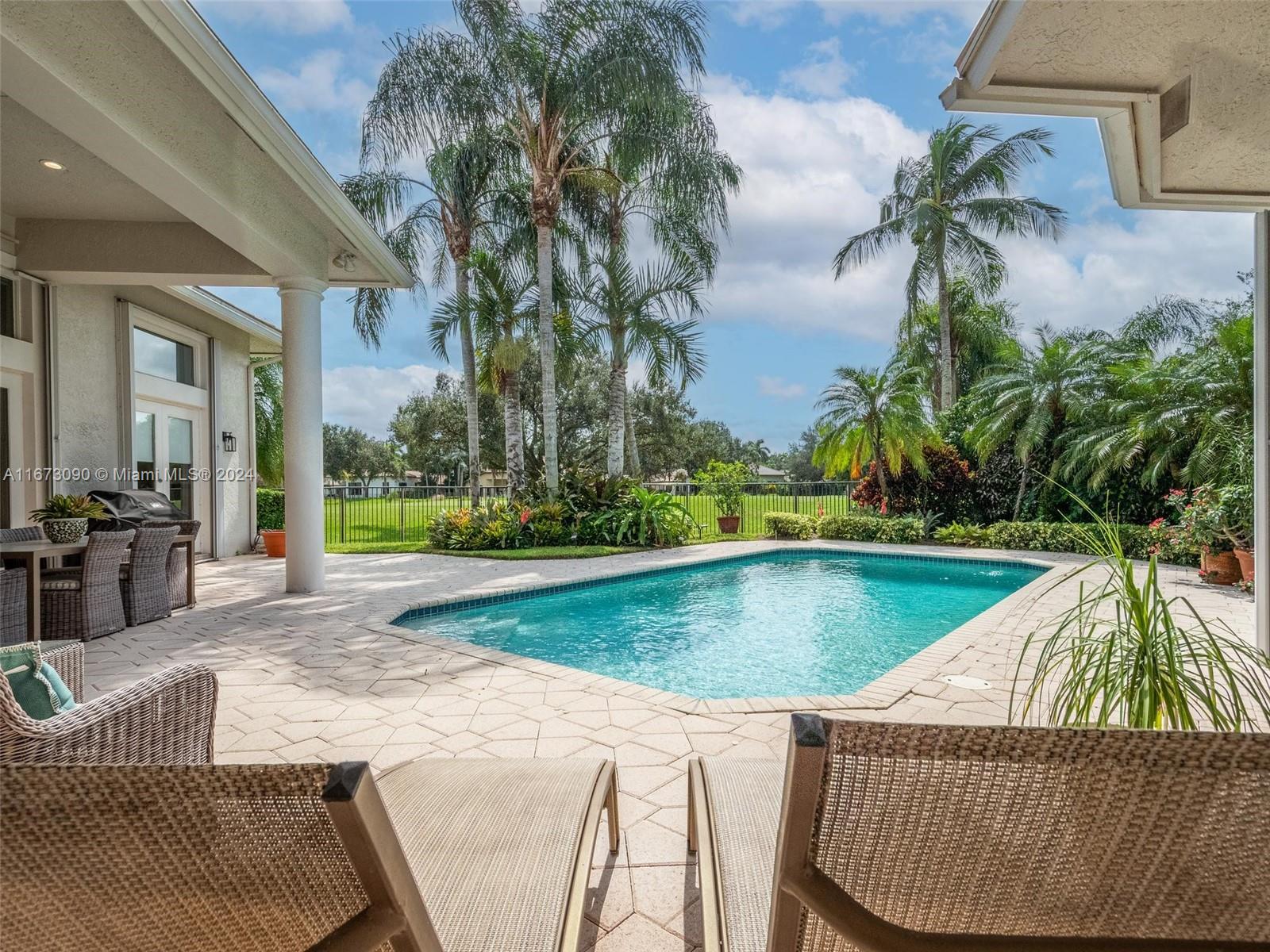 Welcome to your dream home at 2520 Princeton Court in beautiful Weston Hills Country Club! This spacious 5-bedroom, 4.5-bathroom gem offers over 4,033 square feet of luxurious living space on a generous 15,604 square foot lot. Enjoy the perks of living in a prestigious golf course community with stunning golf course views right from your backyard. The home features a heated pool perfect for year-round relaxation. Inside, you'll find an open triple-split floor plan with 14' ceilings, LED lighting, formal dining room, wet bar for entertaining, and a mix of hardwood and marble floors. The kitchen is equipped with a all the top appliances. Spacious master suite with sitting area and 2 walk-in closets. 2019 Roof. Accordian shutters. Circular driveway with 3-car garage.