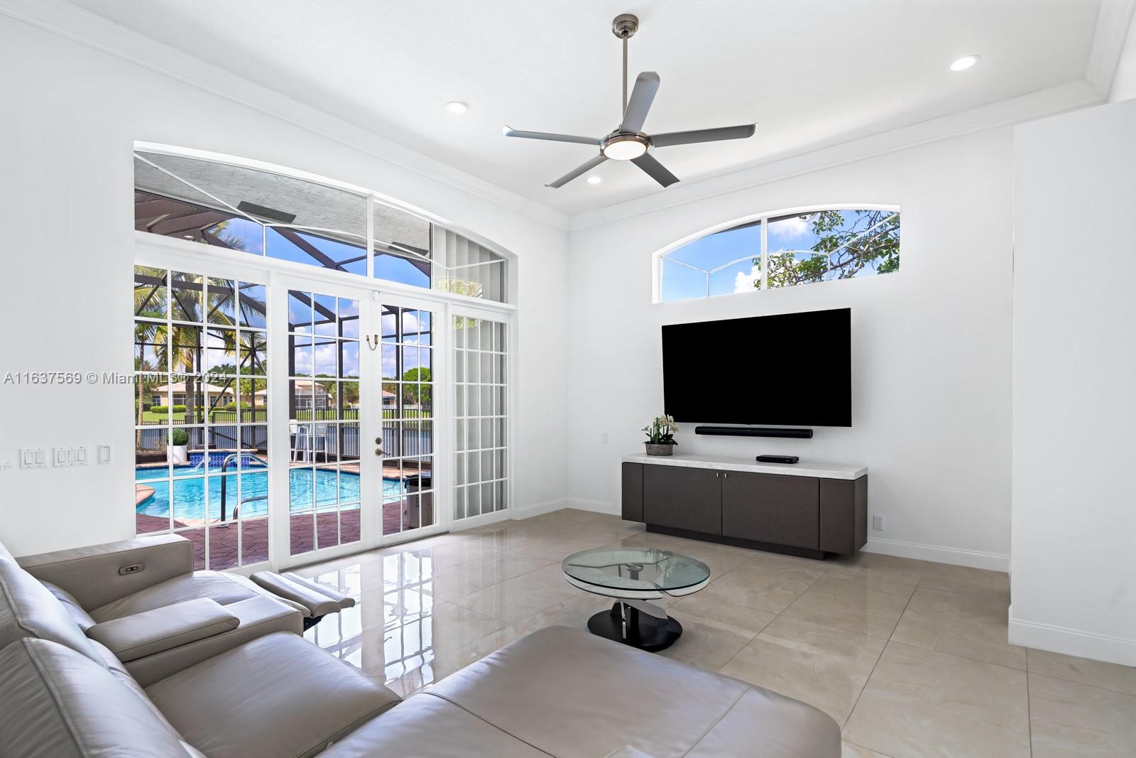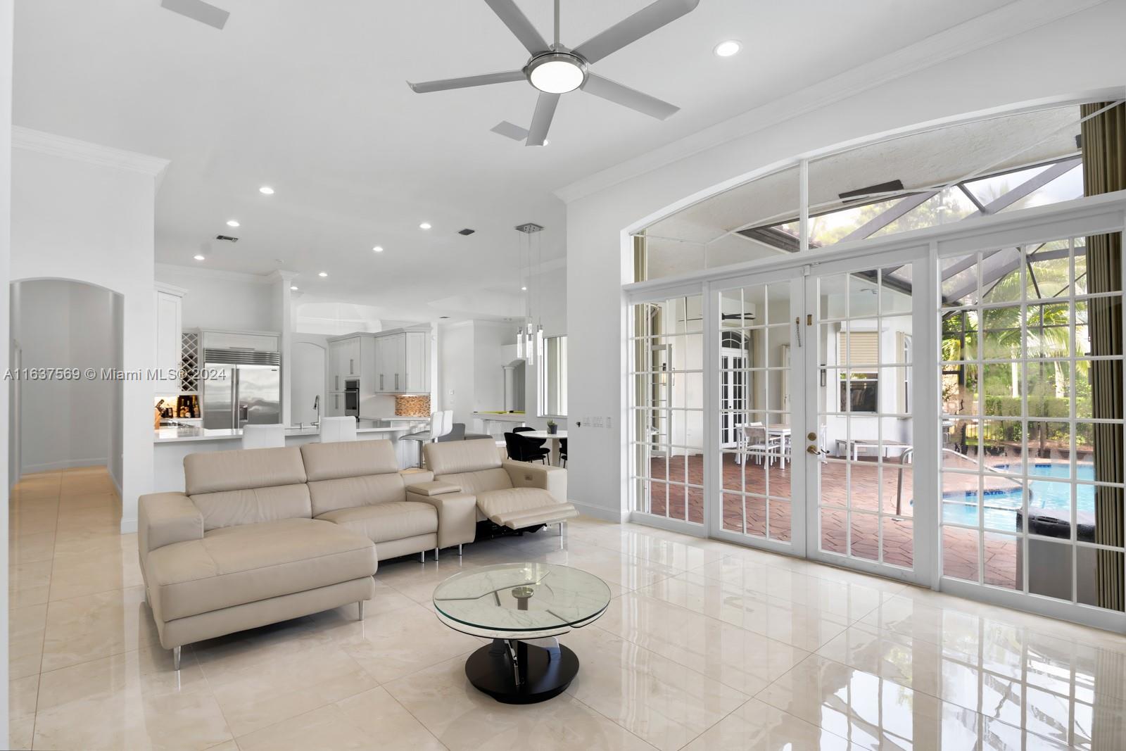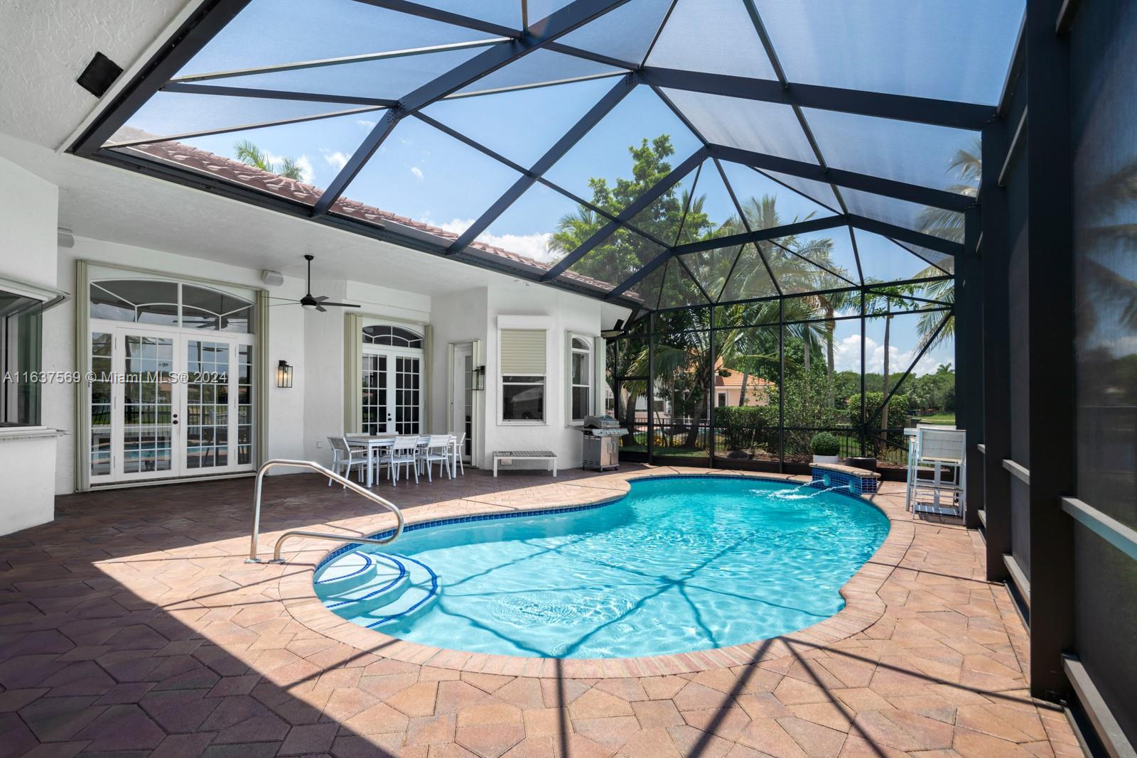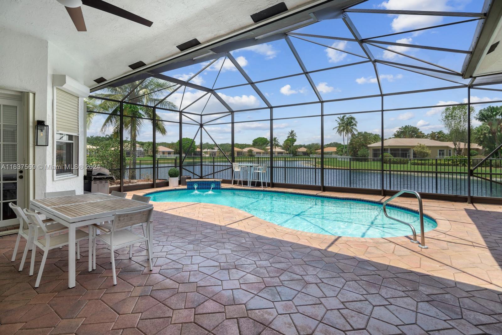 This beautifully renovated lakefront home in Weston Hills offers stunning golf views. With 5 bedrooms, 4.5 bathrooms, an office, and a 3-car garage. Situated on a meticulously landscaped 16,240 sq ft lot, this home showcases vaulted ceilings, new porcelain tiles, and elegant wood flooring. The updated kitchen features quartz countertops, double ovens, a Sub-Zero fridge, a Bosh dishwasher, and a Ruvati stainless sink. The primary suite is a luxurious retreat with a sitting area and walk-in closets. The en suite bathroom boasts a new vessel tub, quartz counters, a rain shower, and chic lighting. All bathrooms have been refreshed with a modern design. Outside, enjoy the screened-in lanai and al fresco patio. This sought-after home offers an exceptional living experience in a prime location.
