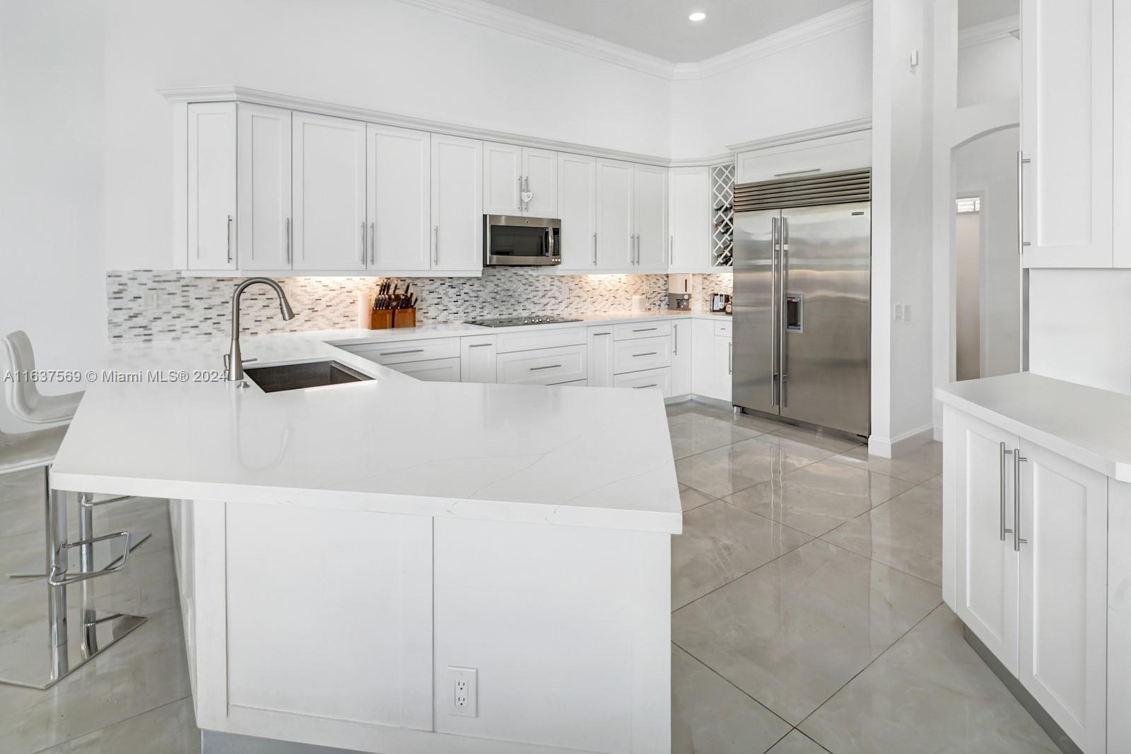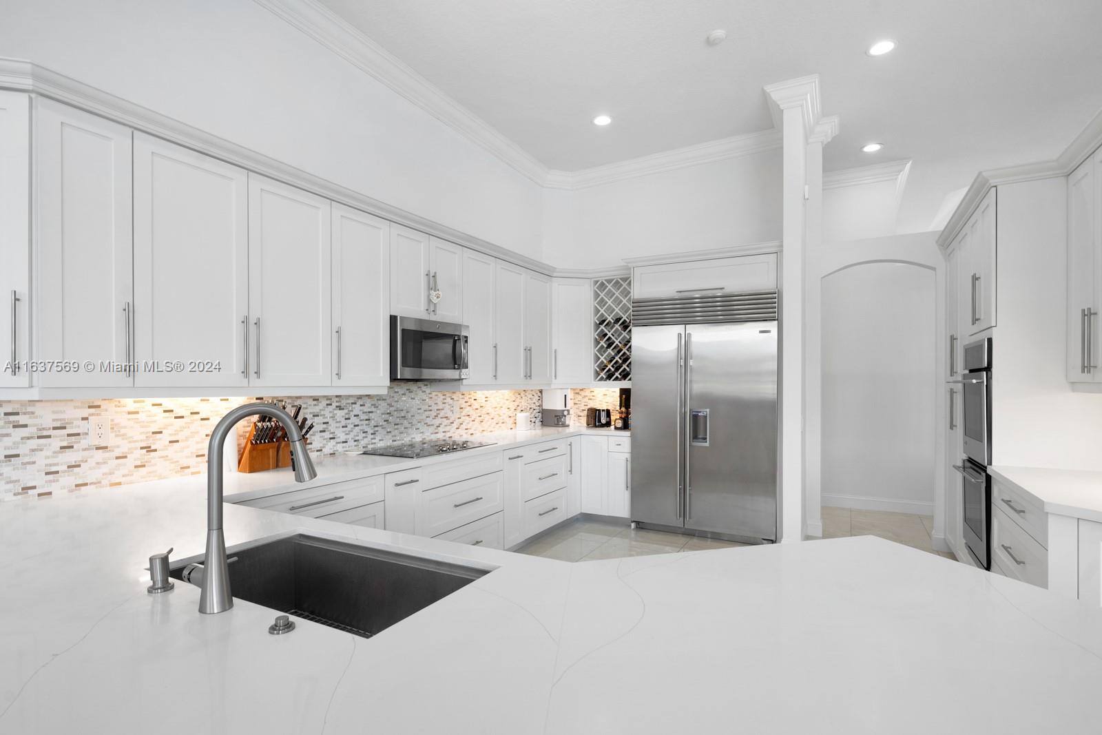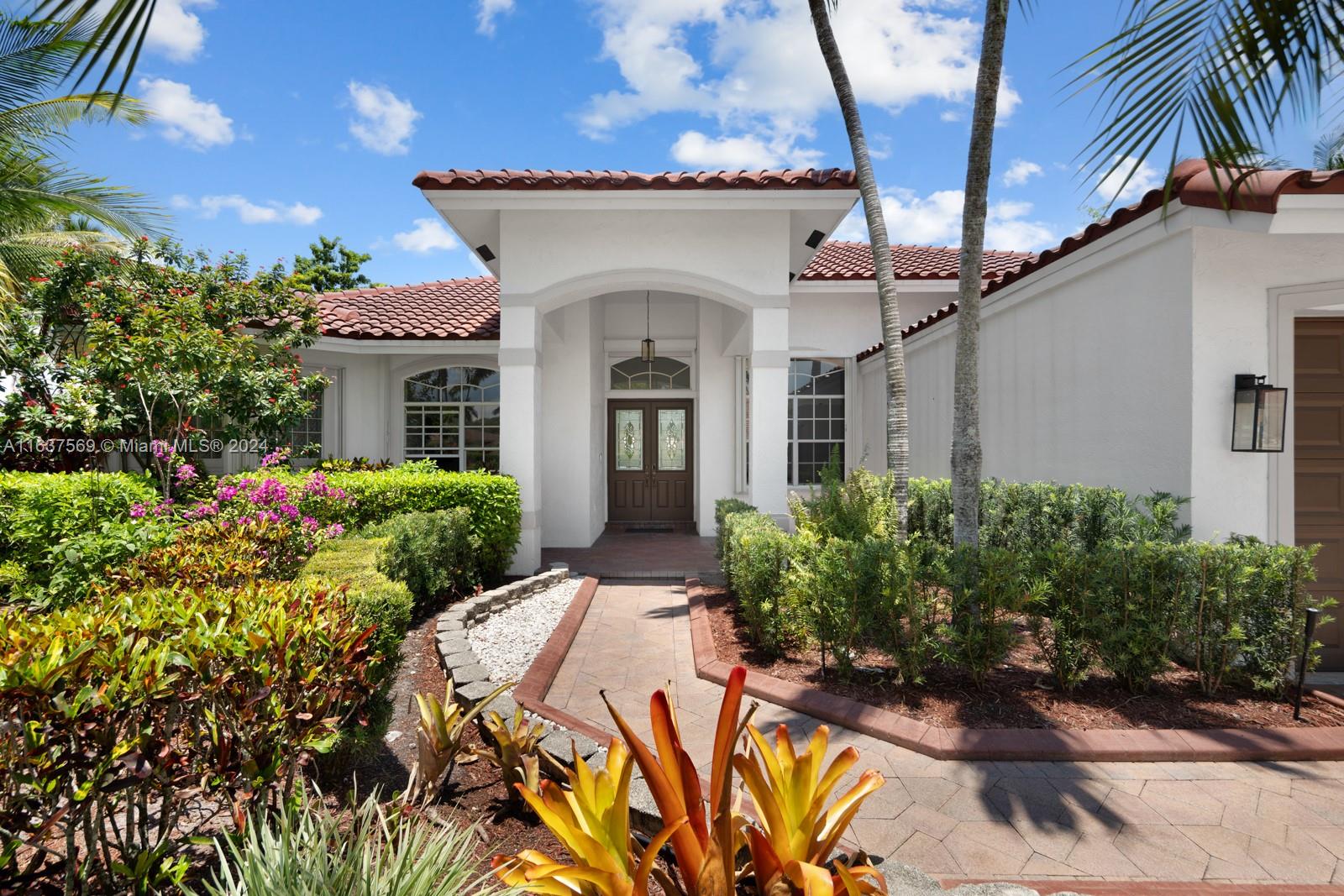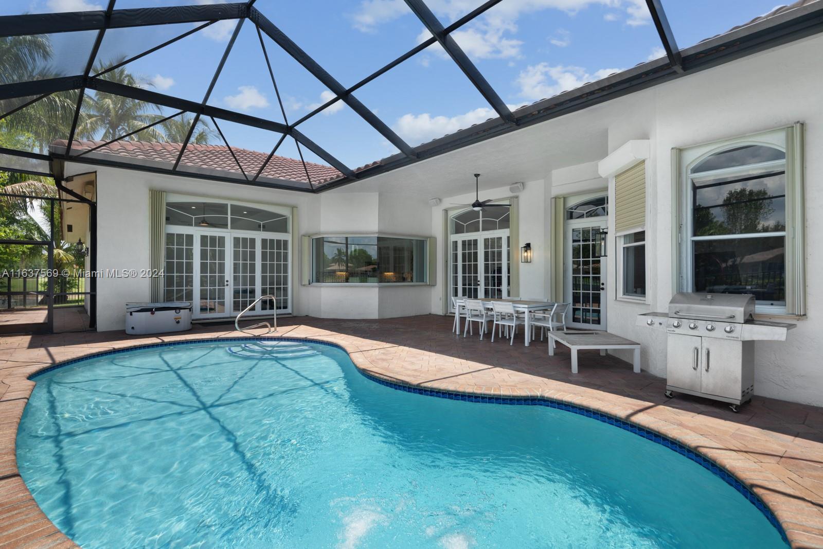 This beautifully renovated lakefront home in Weston Hills offers stunning golf views. With 5 bedrooms, 4.5 bathrooms, an office, and a 3-car garage. Situated on a meticulously landscaped 16,240 sq ft lot, this home showcases vaulted ceilings, new porcelain tiles, and elegant wood flooring. The updated kitchen features quartz countertops, double ovens, a Sub-Zero fridge, a Bosh dishwasher, and a Ruvati stainless sink. The primary suite is a luxurious retreat with a sitting area and walk-in closets. The en suite bathroom boasts a new vessel tub, quartz counters, a rain shower, and chic lighting. All bathrooms have been refreshed with a modern design. Outside, enjoy the screened-in lanai and al fresco patio. This sought-after home offers an exceptional living experience in a prime location.