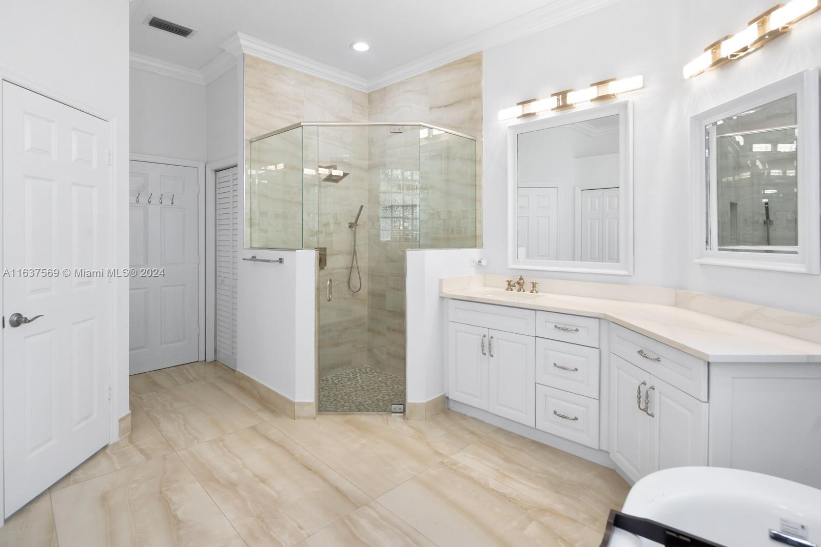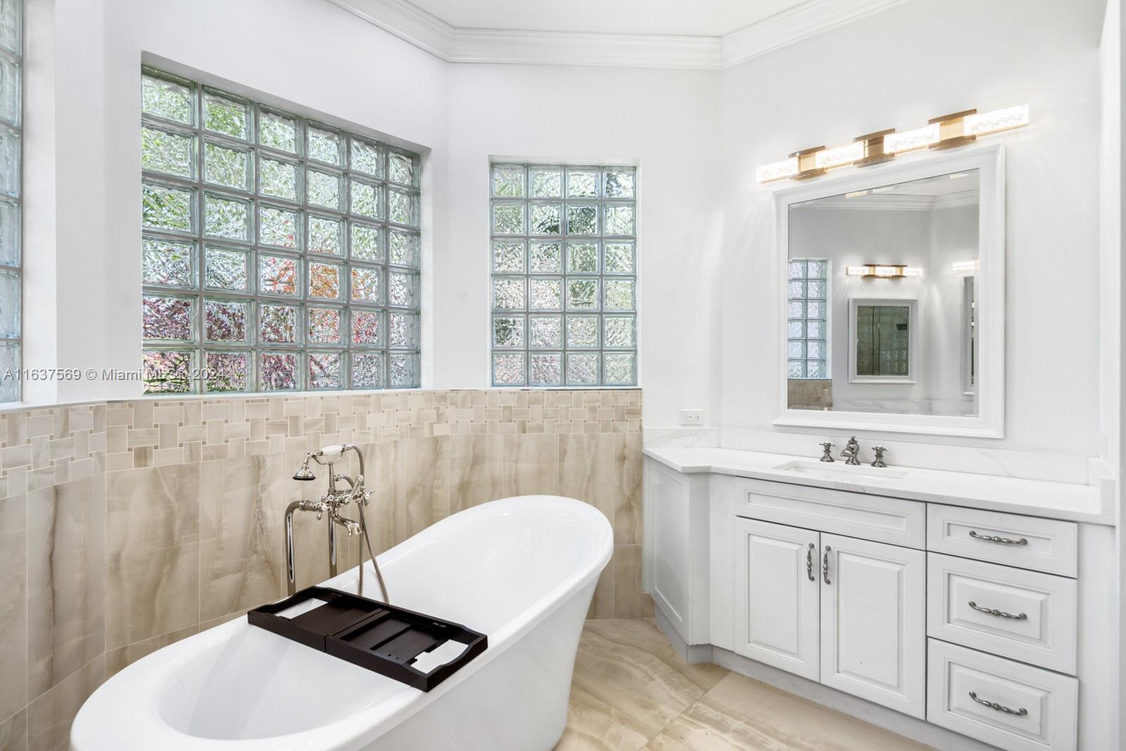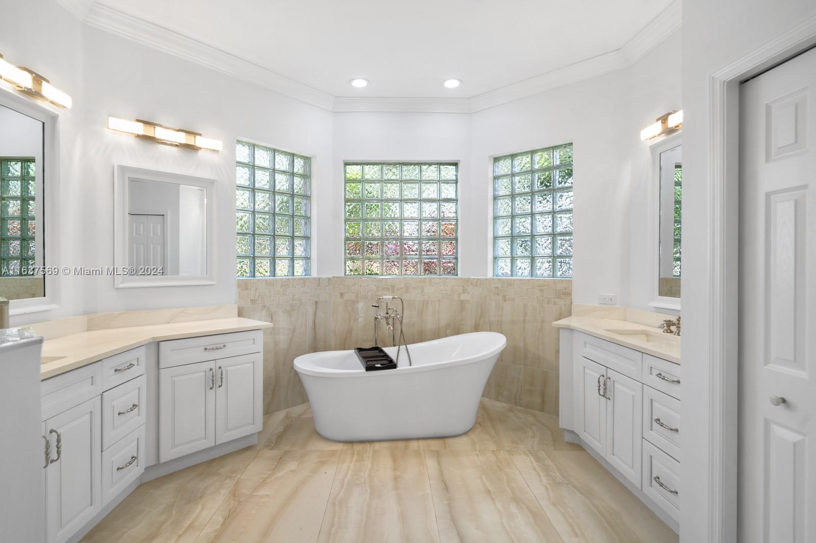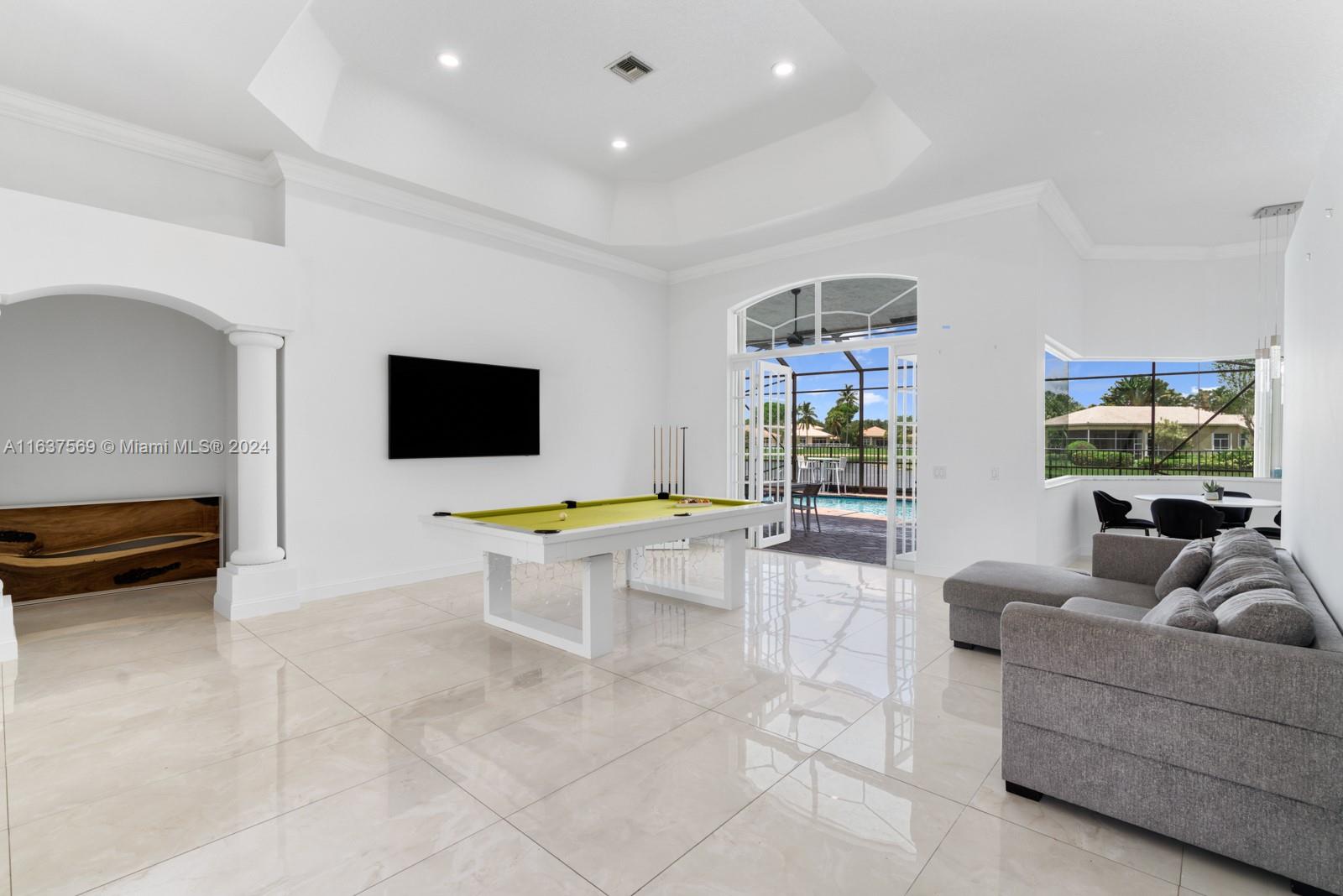 This beautifully renovated lakefront home in Weston Hills offers stunning golf views. With 5 bedrooms, 4.5 bathrooms, an office, and a 3-car garage. Situated on a meticulously landscaped 16,240 sq ft lot, this home showcases vaulted ceilings, new porcelain tiles, and elegant wood flooring. The updated kitchen features quartz countertops, double ovens, a Sub-Zero fridge, a Bosh dishwasher, and a Ruvati stainless sink. The primary suite is a luxurious retreat with a sitting area and walk-in closets. The en suite bathroom boasts a new vessel tub, quartz counters, a rain shower, and chic lighting. All bathrooms have been refreshed with a modern design. Outside, enjoy the screened-in lanai and al fresco patio. This sought-after home offers an exceptional living experience in a prime location.