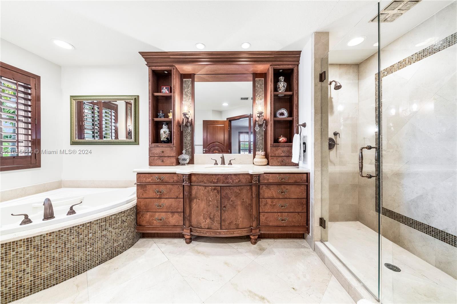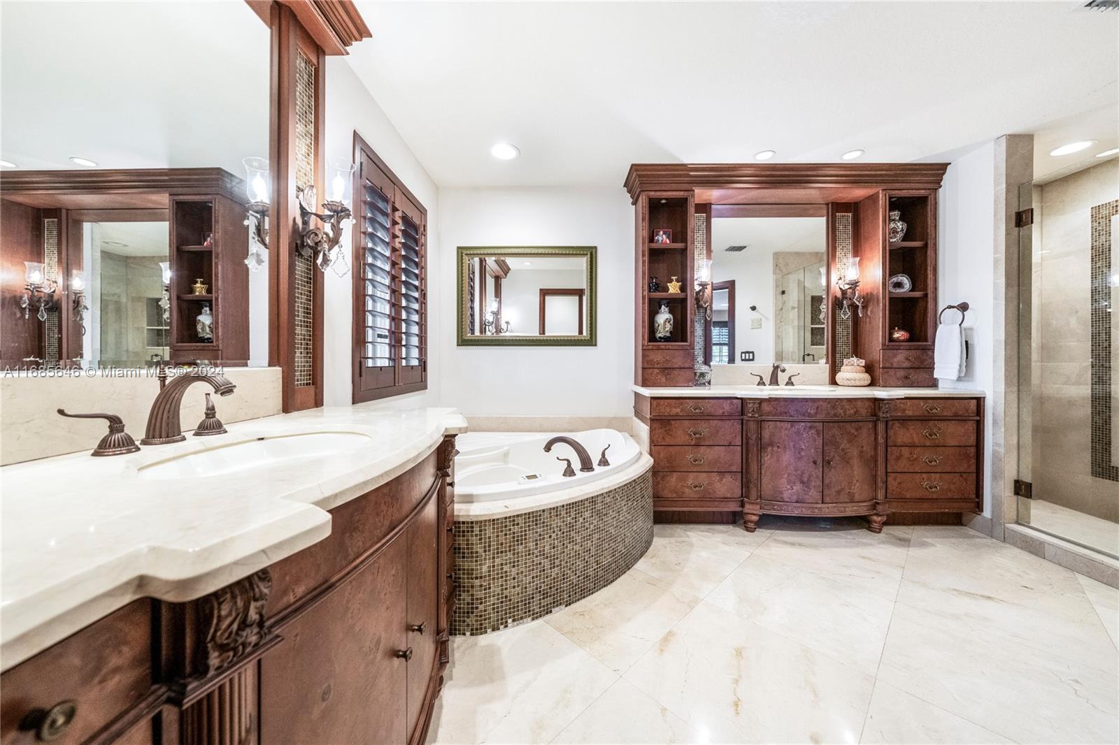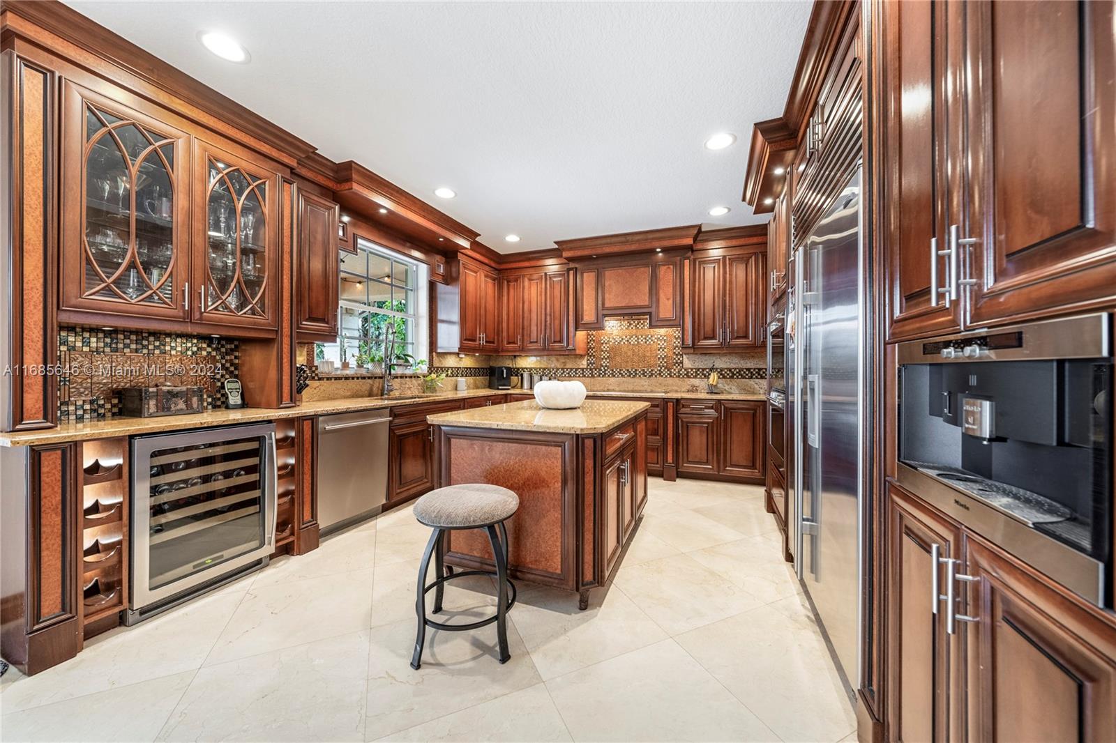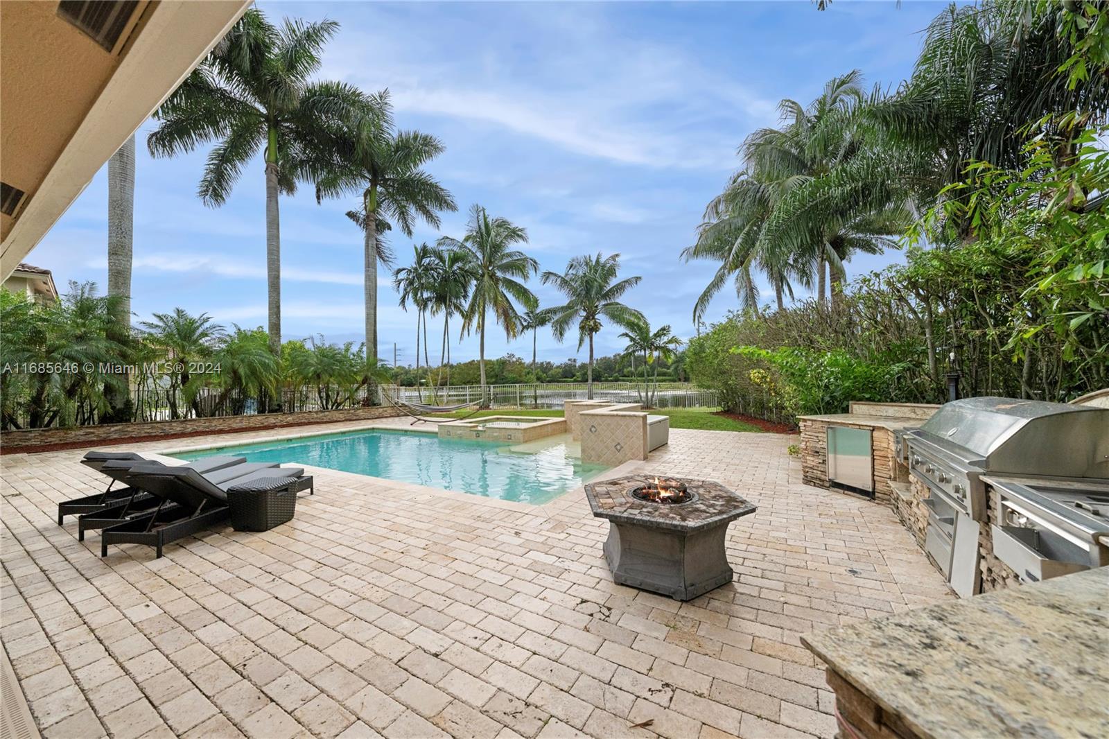 PRESENTING A CUSTOM HOME BUILT BY FORMER NFL FOOTBALL PLAYER. This One of A Kind private lakefront home on an OVERSIZED LOT in Weston Hills Country Club is truly exceptional. A fully customized home w/ 24" marble flooring & solid Italian wood doors w/ intricate designs, wrought iron staircase, & an amazing chef's kitchen w/ HIGH END BUILT IN appliances: Subzero Refrigerator, Double Wolf Oven, Miele Coffee Maker, Nespresso machine & built in Wine Cooler. This house was made to entertain w/ built-in cabinetry & wet bar! 2nd floor features 4 LARGE sized bedrooms plus office w/ huge master suite (can make an additional room if desired). Stunning finishes w/ huge Marble Circular driveway & patio. The backyard is has a summer kitchen, sun deck, & pool w/ wading area & jacuzzi. A/c in garage!