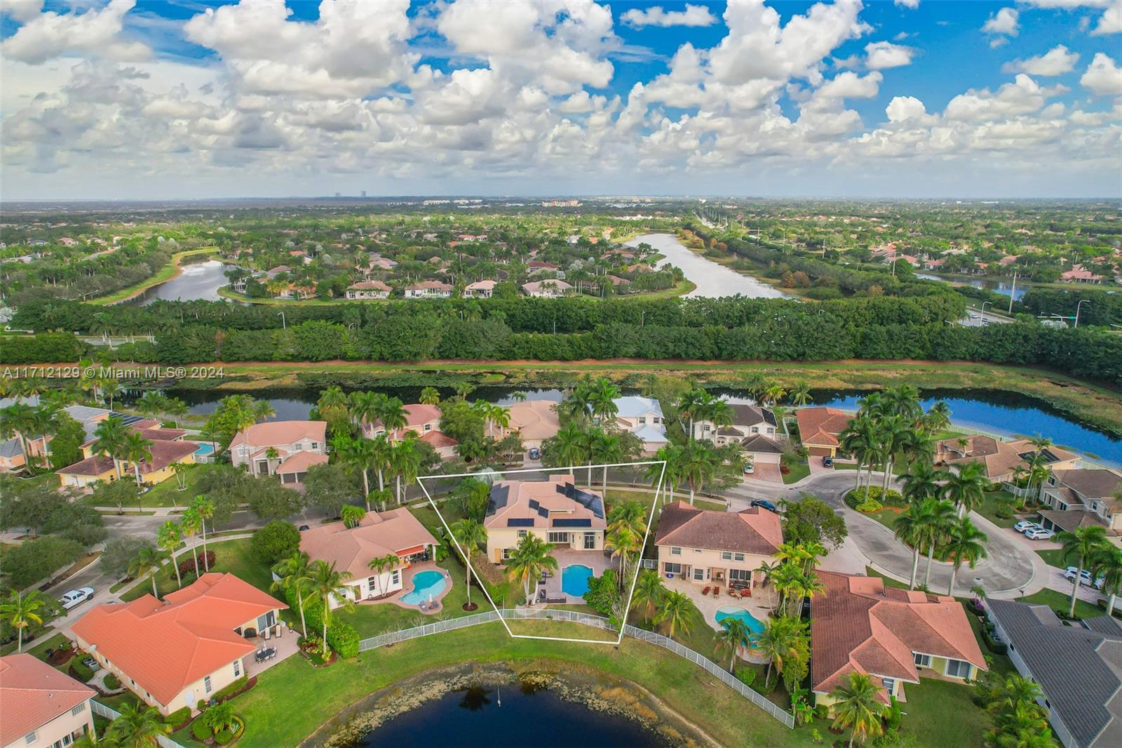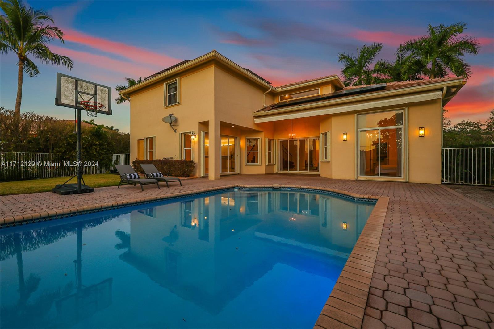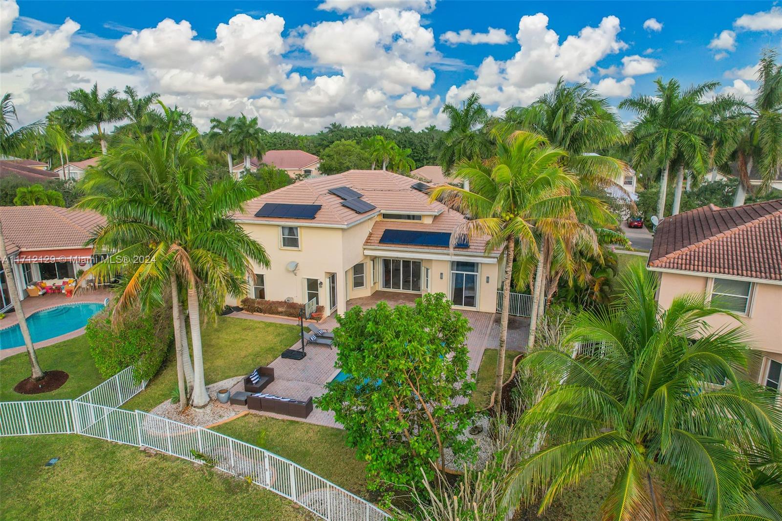 Welcome to your dream home in the resort-style community of Savanna! This exquisite 5-bedroom +den offers elegance, comfort, and breathtaking sunsets. It is equipped with a state-of-the art solar system to ensure remarkably low FPL bills promoting sustainable living. New 2024 roof with stylish flat tiles, and there is a water house filtration system! As you enter, you are greeted by a grand dual staircase. The first floor features main bedroom, marble flooring, spacious living areas and natural light. The second floor includes two Jack-and-Jill bathrooms, providing convenience and privacy for family plus a loft. Main bathroom has been remodeled creating a spa-like atmosphere. Accordion shutters offer peace of mind. Pool, Lake view, A+Schools. Amazing Club House.